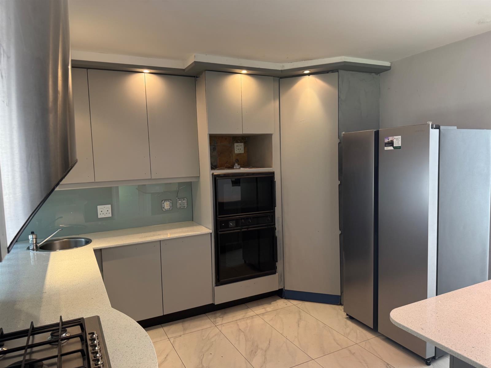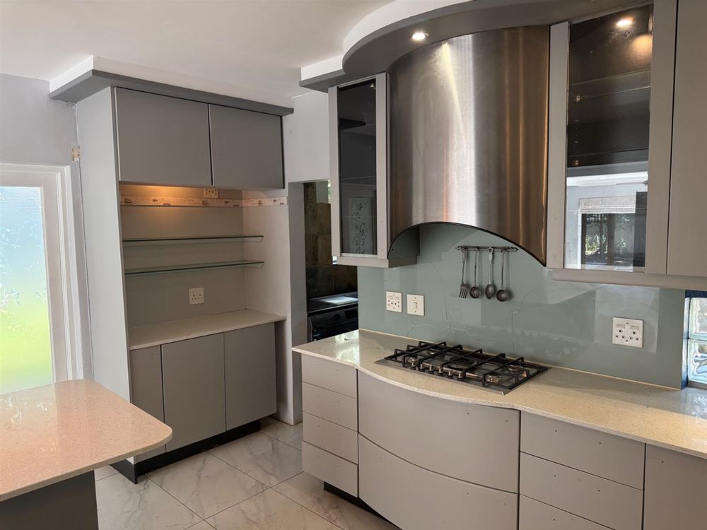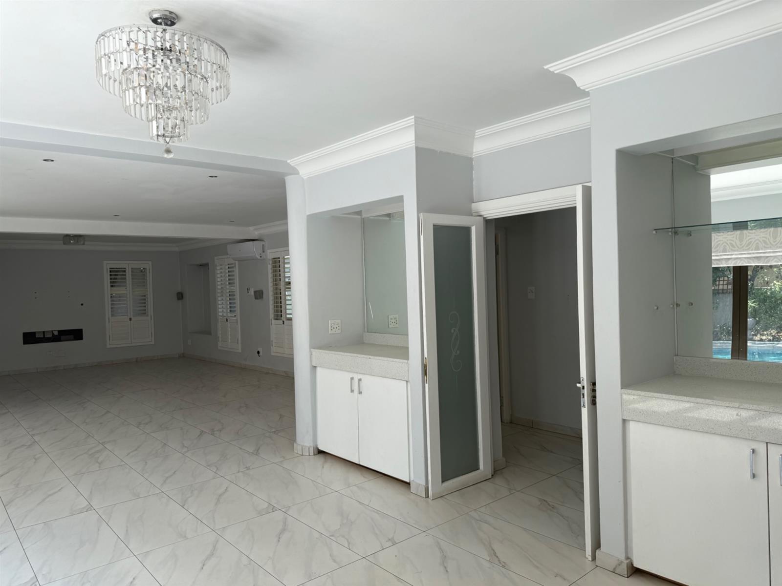 To one side, a cosy fireplace anchors the lounge, the perfect spot for quiet evenings with loved ones, while large glass doors open seamlessly onto the entertainment patio. Here, a built-in bar and braai overlook the sparkling pool, setting the scene for memorable gatherings and long summer afternoons spent in good company.