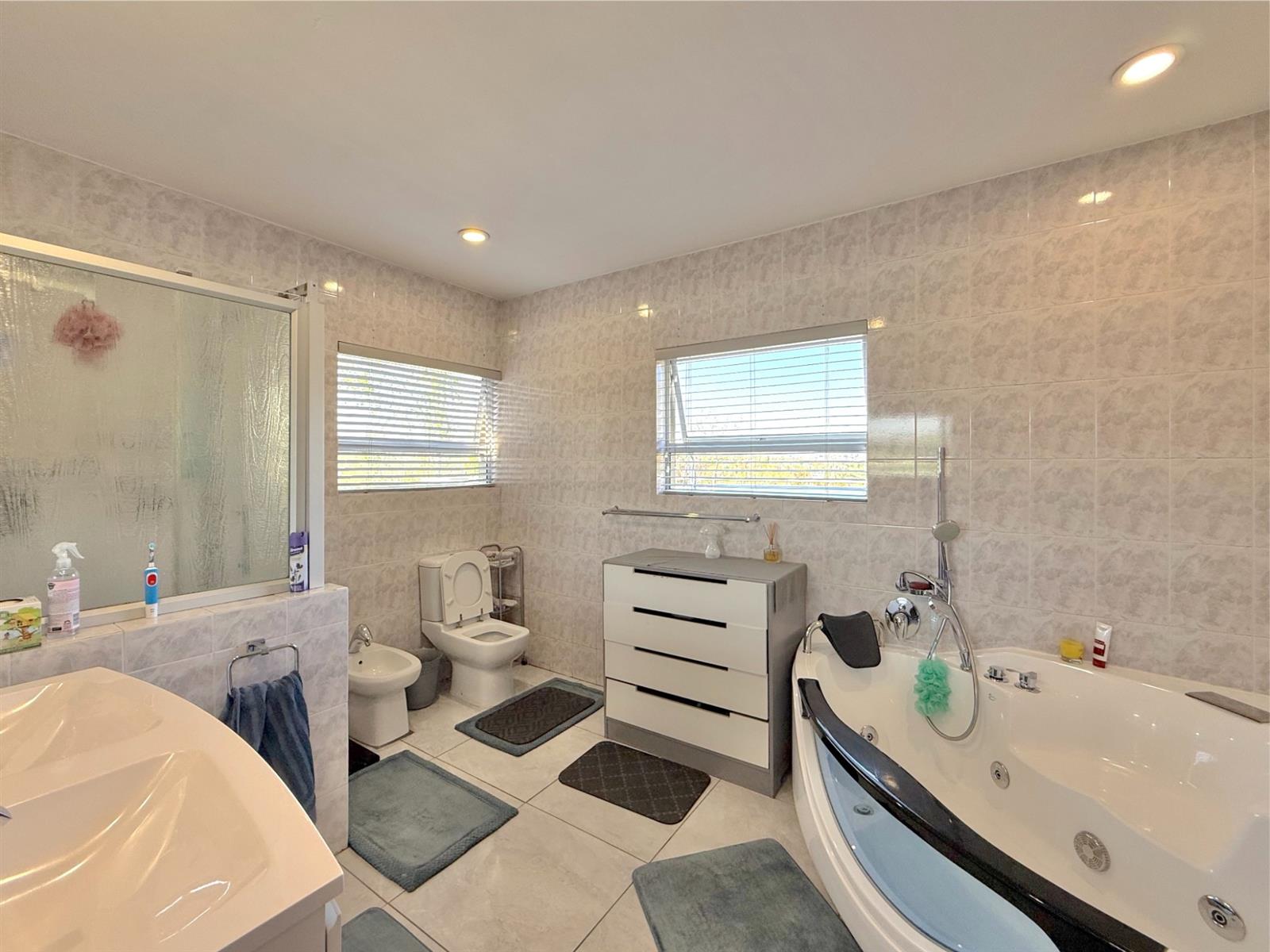 Completing the ground floor is a private study with built-in cupboards—doubling as a fifth bedroom if needed—and a convenient guest bathroom.