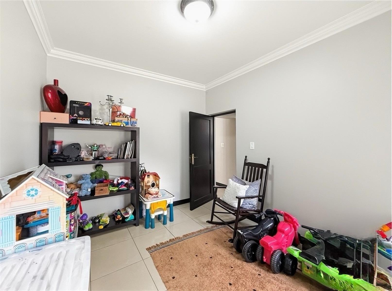 The ground floor welcomes you into a series of well-appointed living areas designed for both relaxation and entertaining. A spacious TV lounge and an additional private lounge provide flexibility for family living, while a dedicated playroom offers the perfect retreat for children. The dining room flows seamlessly into a well-equipped kitchen featuring ample cabinetry and a separate scullery with space for three under-counter appliances. A guest cloakroom conveniently completes the lower level.