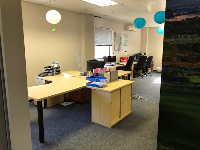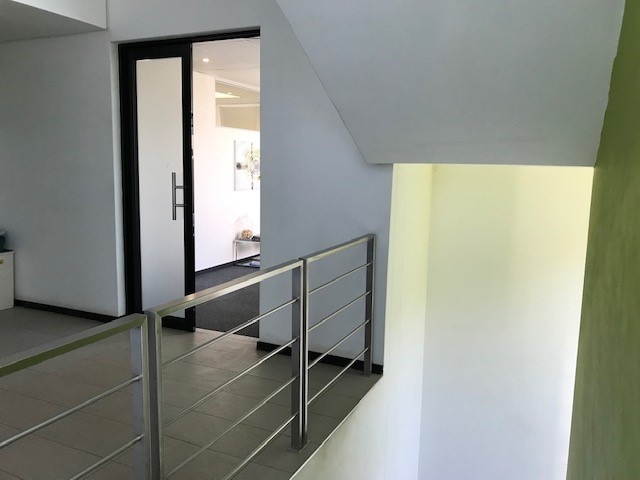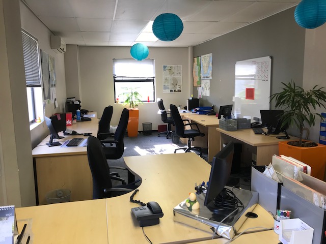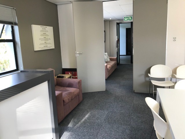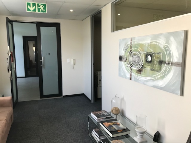 The office has remote access at its main gate, opening onto covered parking. This air-conditioned, first floor office suite consists of a reception area, kitchenette, boardroom, an open office and a large open plan area. Communal Ladies and gents’ bathrooms are adjacent to the unit. There is fibre to the building. There are four covered parking bays available at R500 excluding vat each. The property has a back-up generator. Occupation 1 December 2024
