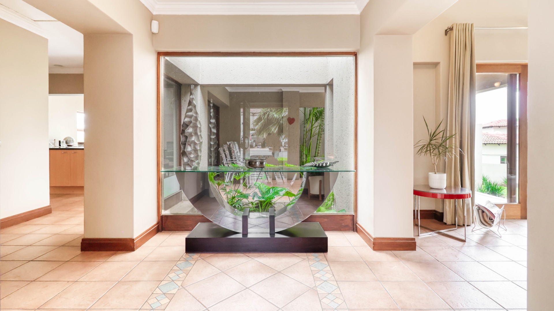 Enhance your lifestyle in the secure and tranquil Dainfern Ridge neighbourhood. Enjoy a lovely single-story residence bathed in abundant sunlight on a large elevated corner stand. There are three bedrooms, two bathrooms, and a guest cloakroom. The master suite, complete with an ensuite bathroom, opens to an expansive garden and provides beautiful sunset views.
