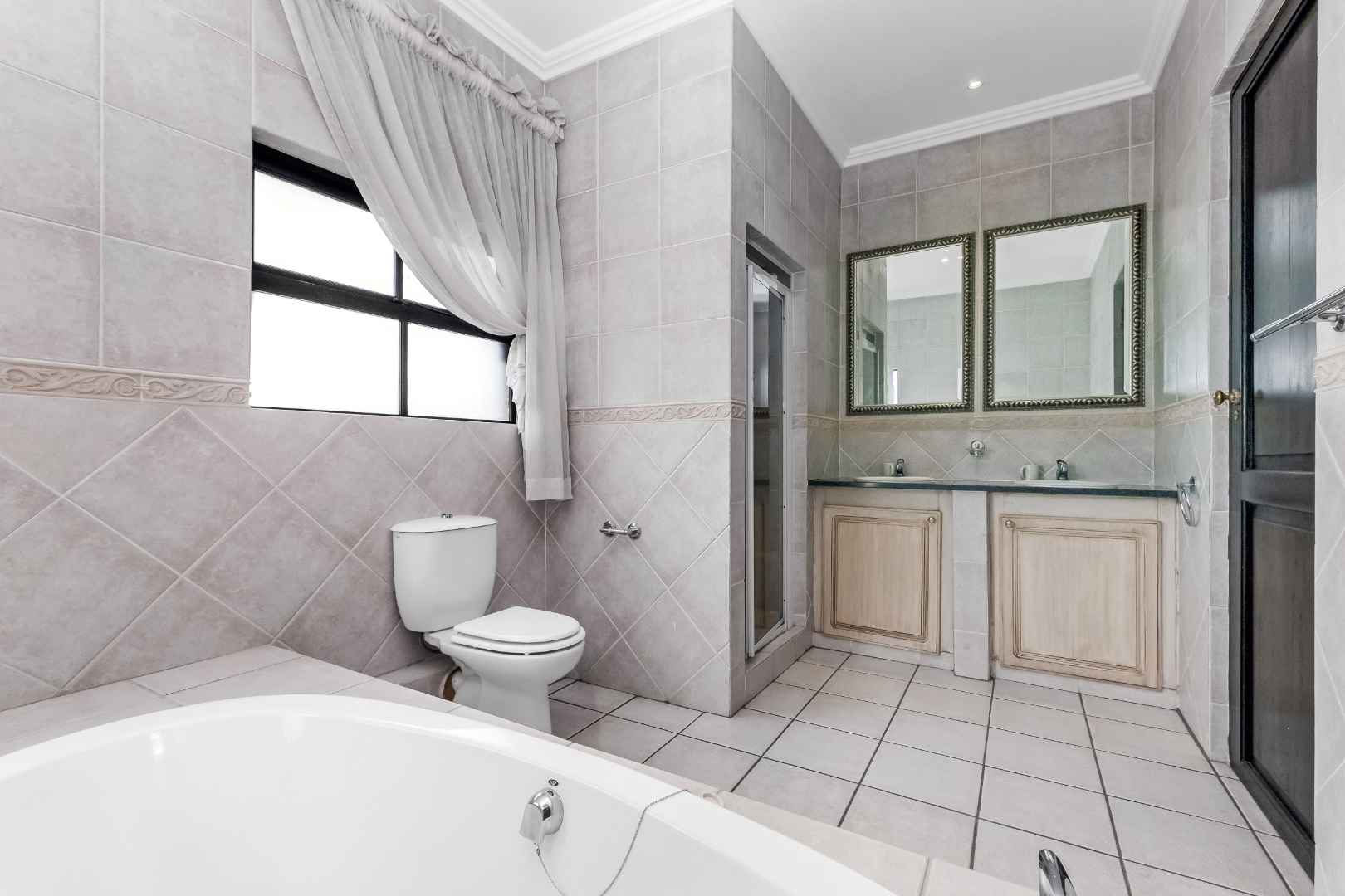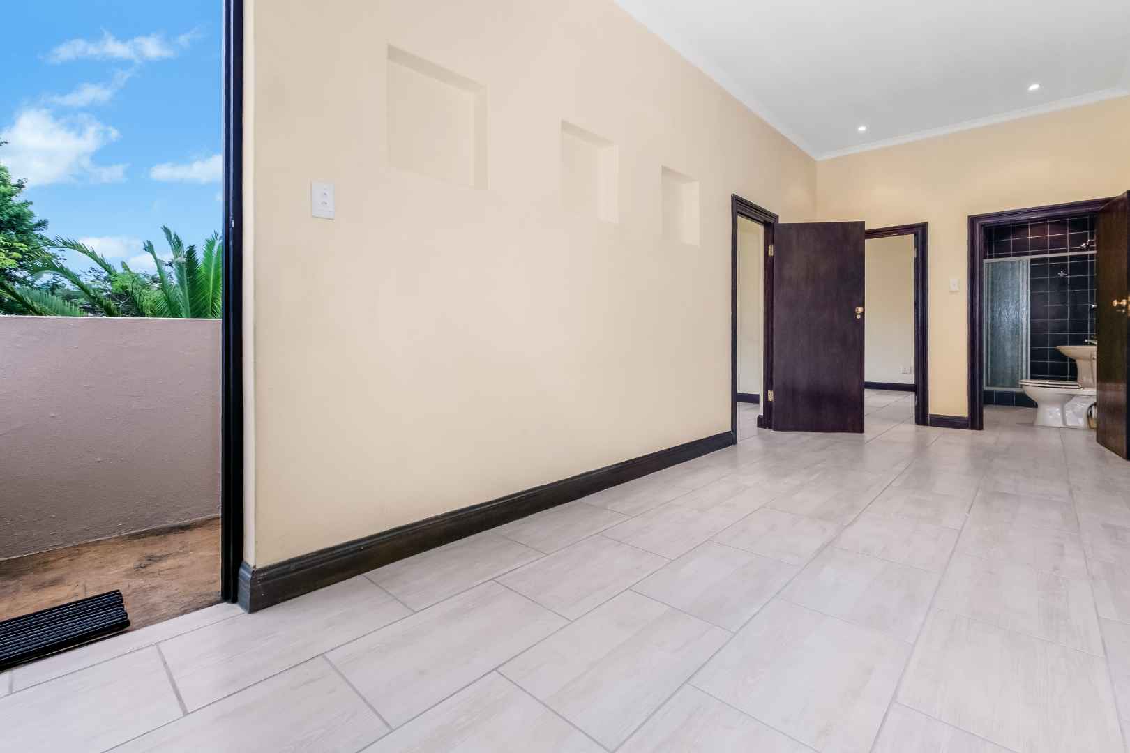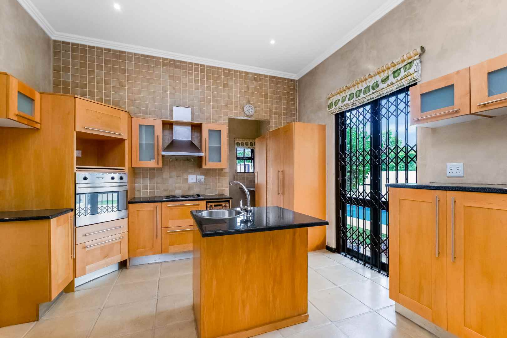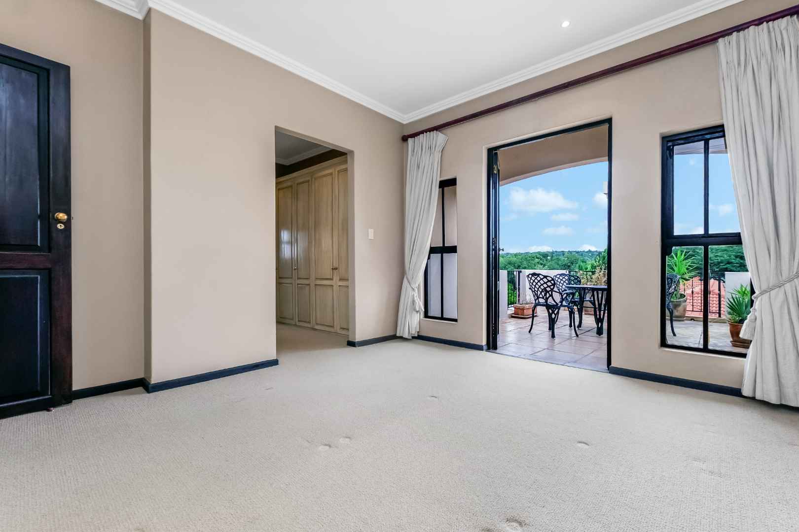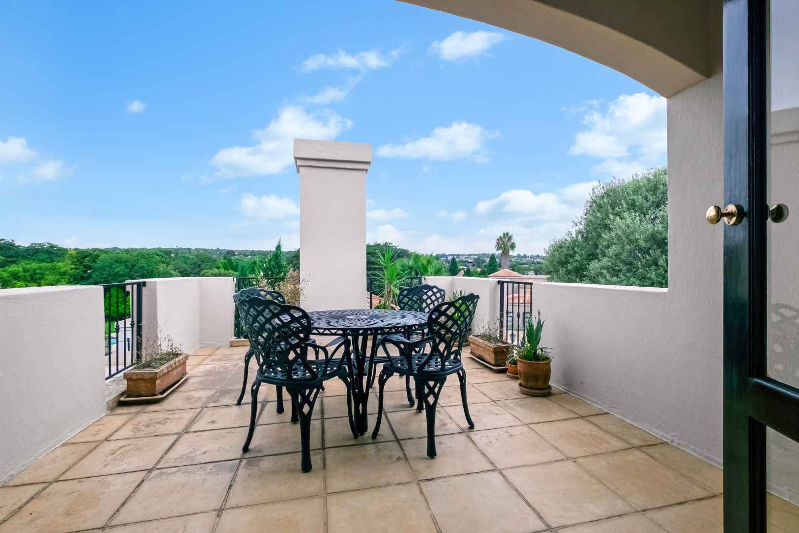 This 3-bedroom home has spacious garden, ample parking and sweeping driveway. The entrance hall welcomes you into this family home; to the left are 2 receptions rooms: dining room and lounge and to the right an additional lounge which opens onto an enclosed patio with views of the swimming pool. The country style kitchen has granite counter tops, maple wood cupboards, electric hob and oven with a separate scullery area. Upstairs are 3 sunny bedrooms, 2 bathrooms, 1 en-suite. The main bedroom opens onto a sunny expansive balcony with lovely views of the estate. In addition, there is a separate wing with its own entrance comprising 2 rooms, with a shared common area and bathroom, an ideal space for an office, flatlet or excellent double staff accommodation. Available Mid-February, rent excludes estate levy, weekly pool & garden service, and all utilities.