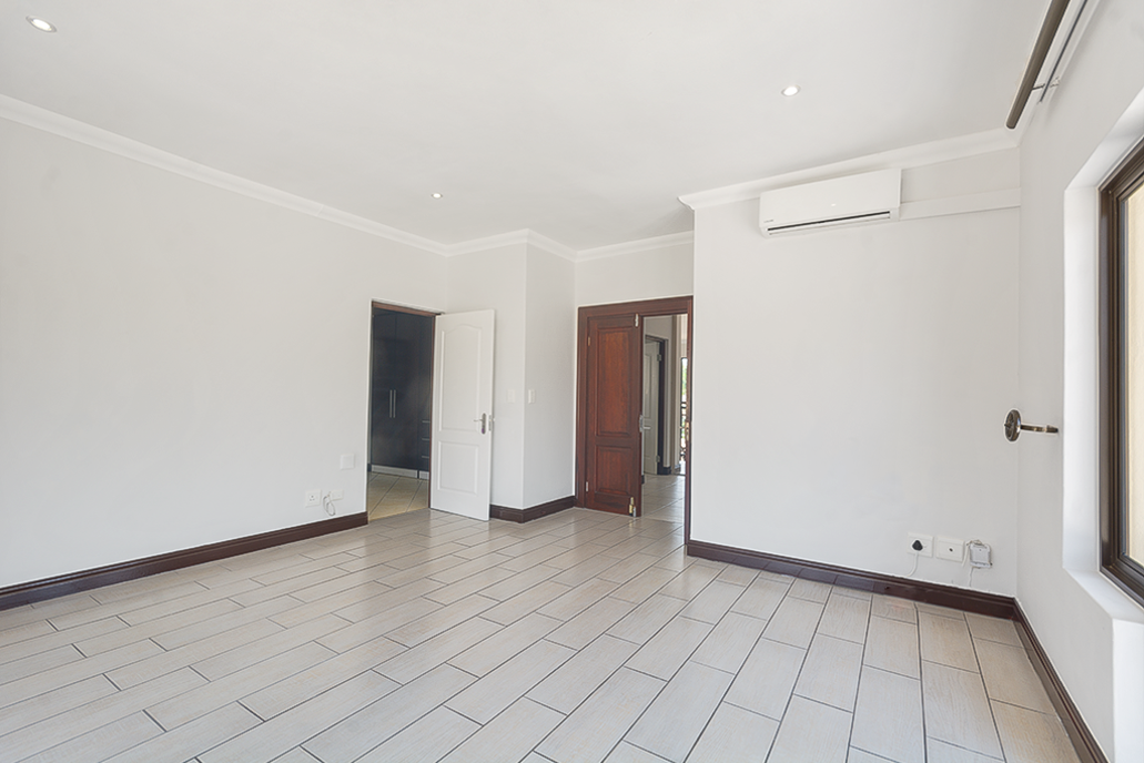 Luxurious 5-Bed, 5-Bath Family Home to Rent – Dainfern Valley Estate Welcome to your dream home in Dainfern Valley Estate, a serene, secure lifestyle estate where luxury meets nature. This stunning double-storey house offers 5 en-suite bedrooms, giving you and your family or guests ultimate comfort and privacy. The spatial design is ideal for both entertaining and relaxed family living. Key Features • Five spacious bedrooms, all with their own bathrooms — the layout ensures maximum convenience and comfort throughout the house. • Grand entrance with double-volume ceilings and a sweeping staircase, making a striking first impression. • Multiple reception areas: three lounges, a formal dining room, a games room, and a cosy pyjama lounge. • Two studies/offices, perfect for remote work, reading, or personal space. • Gourmet kitchen: large, well-appointed, with a centre island, plenty of counter space, a walk-in pantry, and a separate scullery/laundry area. • Outdoor entertaining: a generous covered patio, built-in braai (barbecue), and landscaped garden that flows into a sparkling swimming pool — ideal for hosting or relaxing in private. • Ample parking: garages for up to 4 cars, plus additional parking; secure and convenient. • Staff accommodation: separate quarters provide space for live-in help or guests. • Comfort amenities: central air-conditioning for a cool, comfortable indoor climate, plus a reliable power backup/generator for peace of mind. Estate & Lifestyle Advantages This home is located in the heart of Dainfern Valley Estate, a beautifully maintained, award-winning estate known for: • Top-tier security: biometric access, infra-red CCTV, electric boundary fencing, and 24/7 guarded patrols.  • Natural beauty and tranquillity: 7 km of riverside walking and cycling trails along the Jukskei River, manicured parklands, and dedicated green spaces.  • Recreational facilities: private parks, picnic spots, a communal pool, tennis courts, and even an off-leash dog park.  • School access: direct gated/golf-cart access to Dainfern College — a major plus for families.  • Convenient location: close to Fourways Mall, Dainfern Square, medical facilities, and more.  Why You’ll Love This Home • It’s very private and peaceful — perched on a large stand (garden is mature and lush), providing a calming retreat from city life. • The layout is incredibly flexible, allowing for formal entertaining, family hangouts, or quiet solo time. • With 5 bedrooms all en-suite, there’s no compromise on comfort, whether for a growing family or frequent guests. • The estate’s security is powerful but discreet — you feel safe without feeling like you’re living in a fortress. • Outdoor living is a dream here — the garden, pool, and patio areas are designed to be lived-in and loved.
