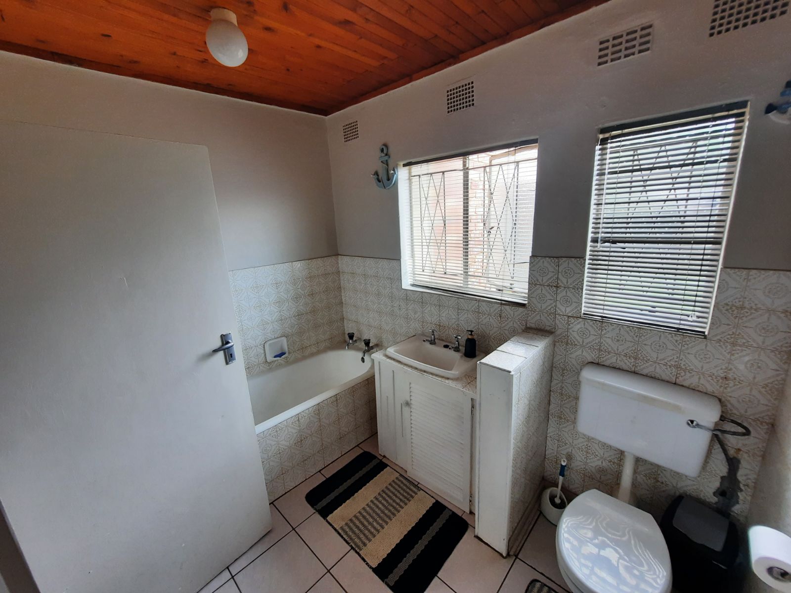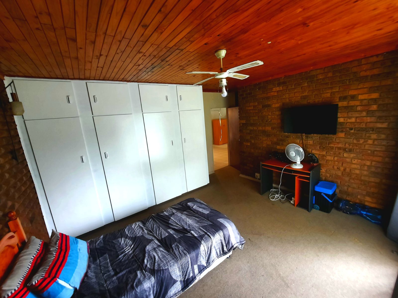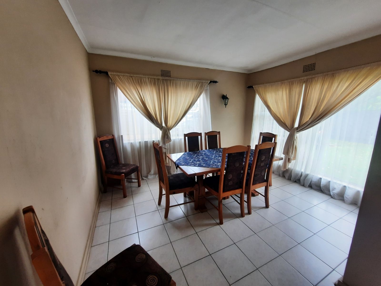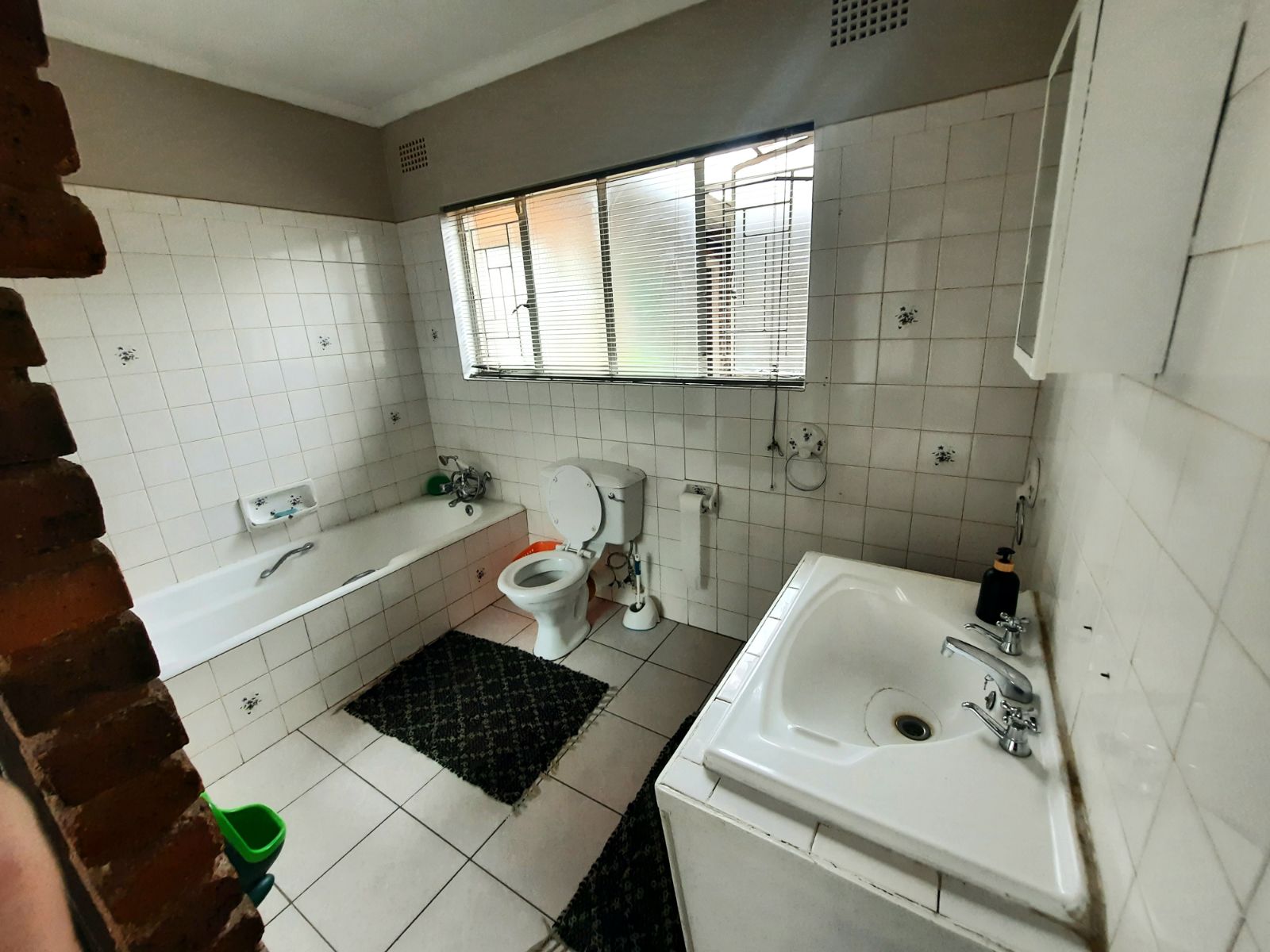 The 3 bedrooms are very spacious, carpeted and with built-in cupboards. There are 2 bathrooms of which 1 is on-suite to the main bedroom. Both bathrooms are complete with with bath, toilet and basin.