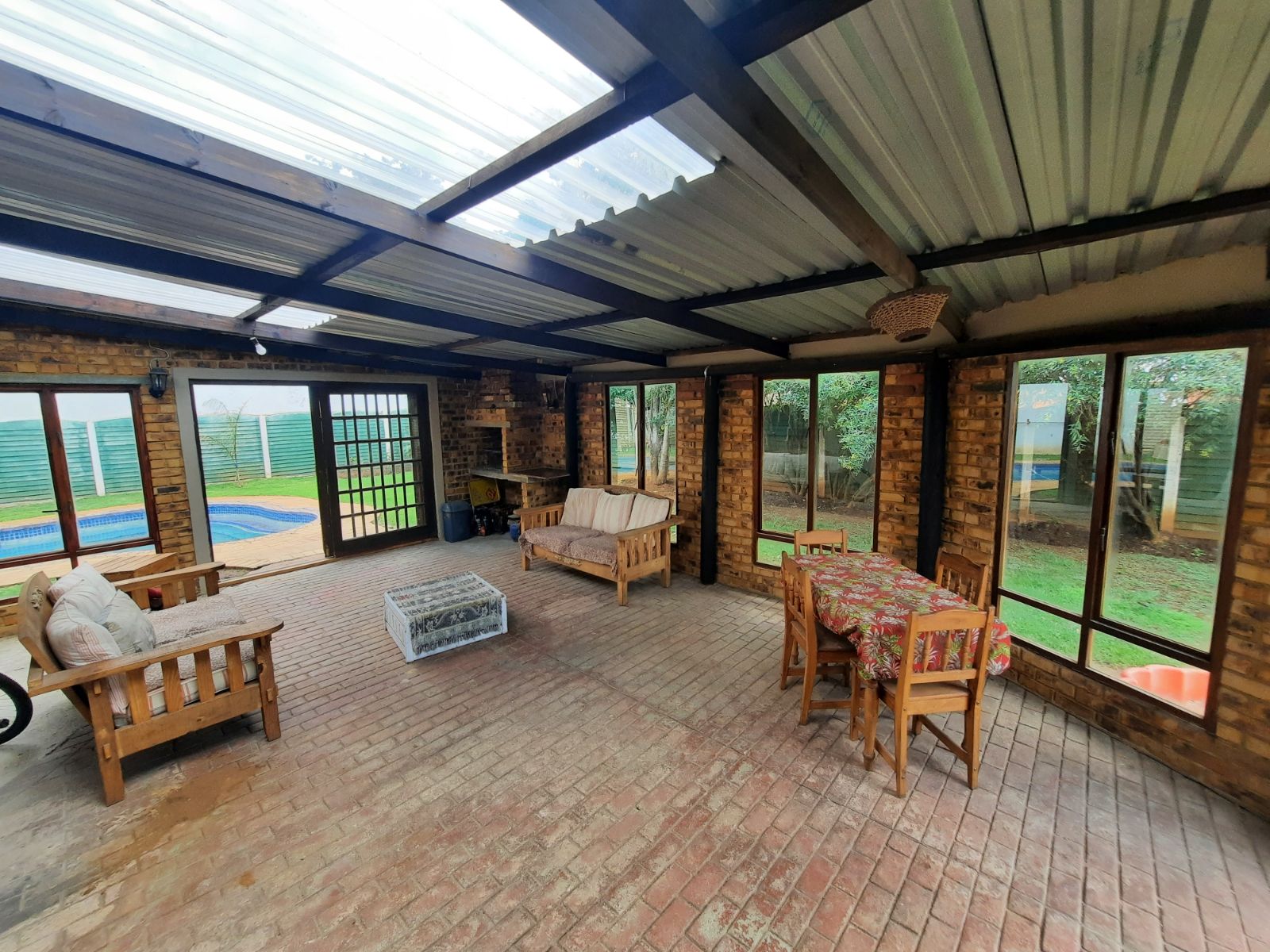 One of the main highlights is the indoor, covered entertainment area, complete with a built-in braai—ideal for year-round gatherings with family and friends.