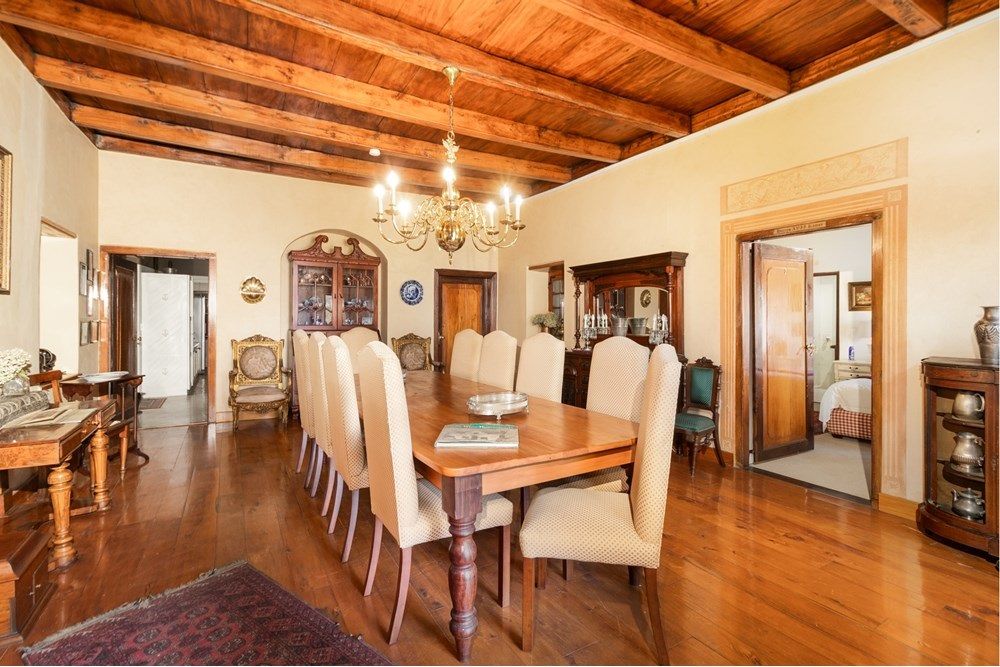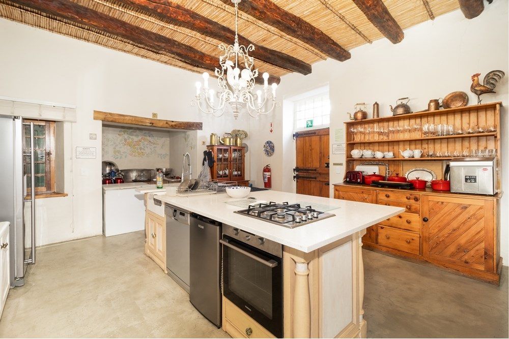 Guests and hosts alike will appreciate the estate’s carefully designed amenities, including a gourmet eat-in kitchen, auxiliary kitchen, cozy fireplace, and charming braai pit for gathering. Additionally, a secure garage, 20 parking spaces, water tanks, and a backup inverter provide convenience and peace of mind for event organizers and guests.