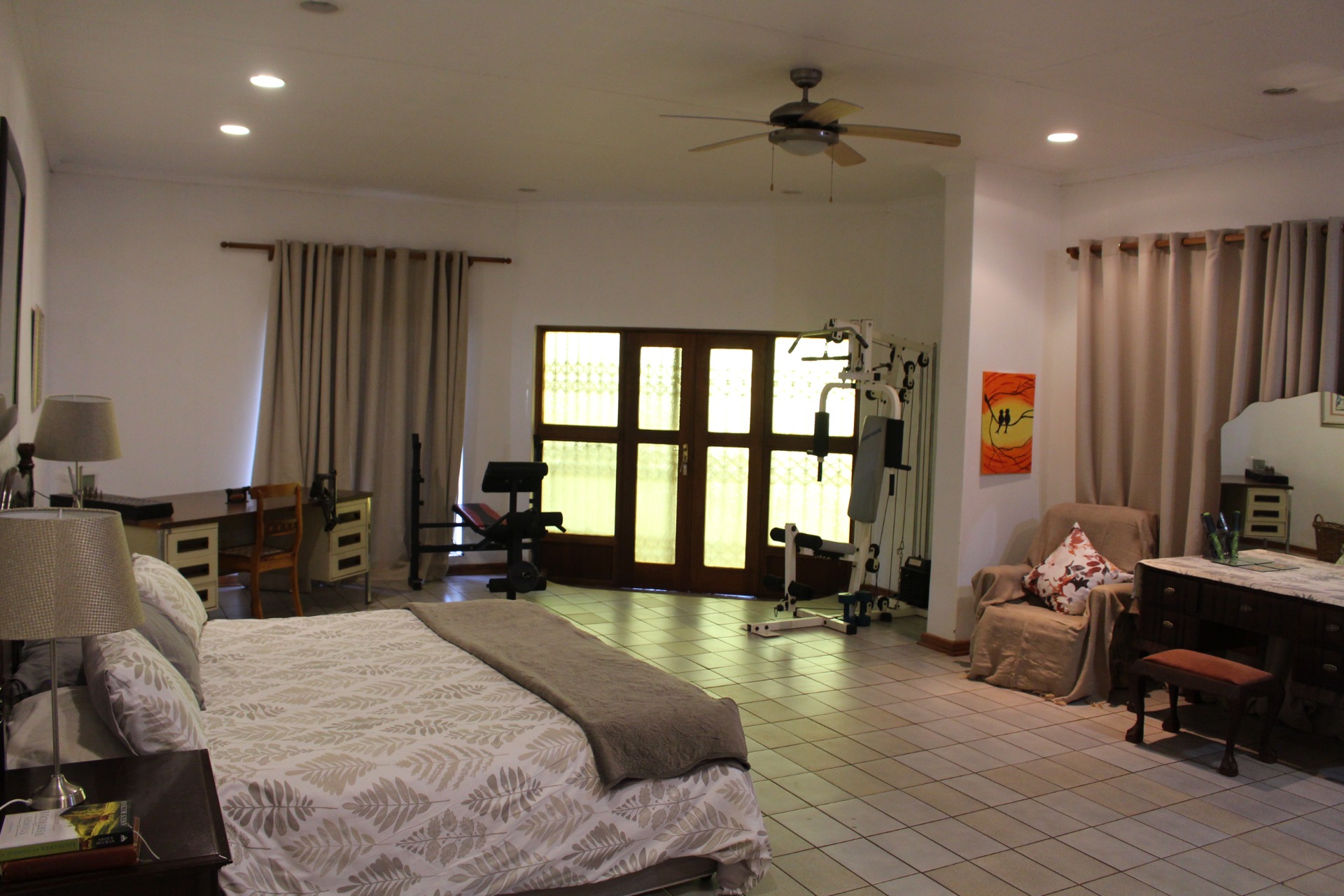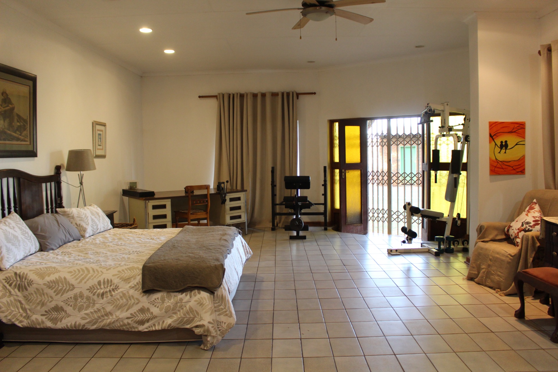 The second house is approximately 30m from the main house and offers 3 bedrooms, 2 en-suite bathrooms, kitchen, and open plan dining and family room. This house also has its braai area and garden which makes this house ideal for renting or parents moving in.