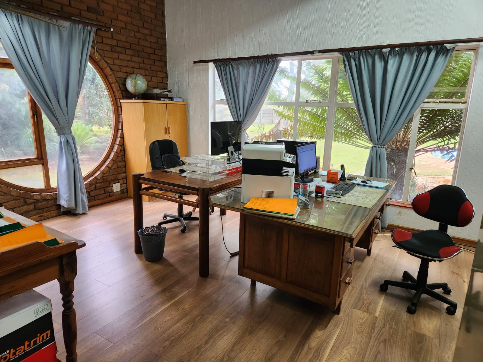The main house is a spacious, low maintenance face-brick family home, with 4 bedrooms and 2 bathrooms. Two extra - rooms as offices to be use as please. The braai room has a magnificent sunrise view over nature. The spacious kitchen walk in pantry, separate scullery and laundry room . The spacious open-plan dining and family room complement the home.