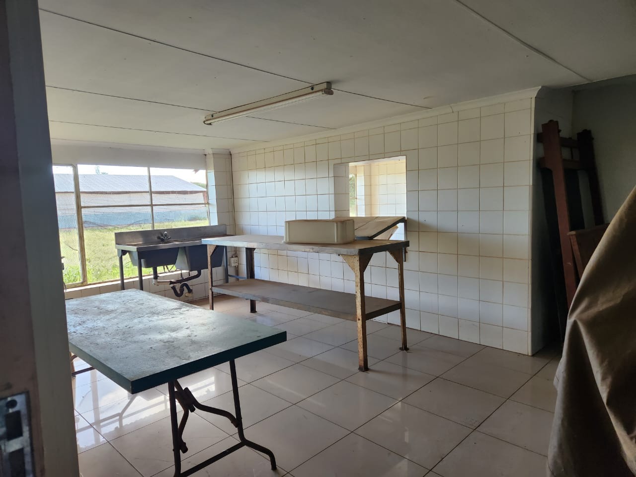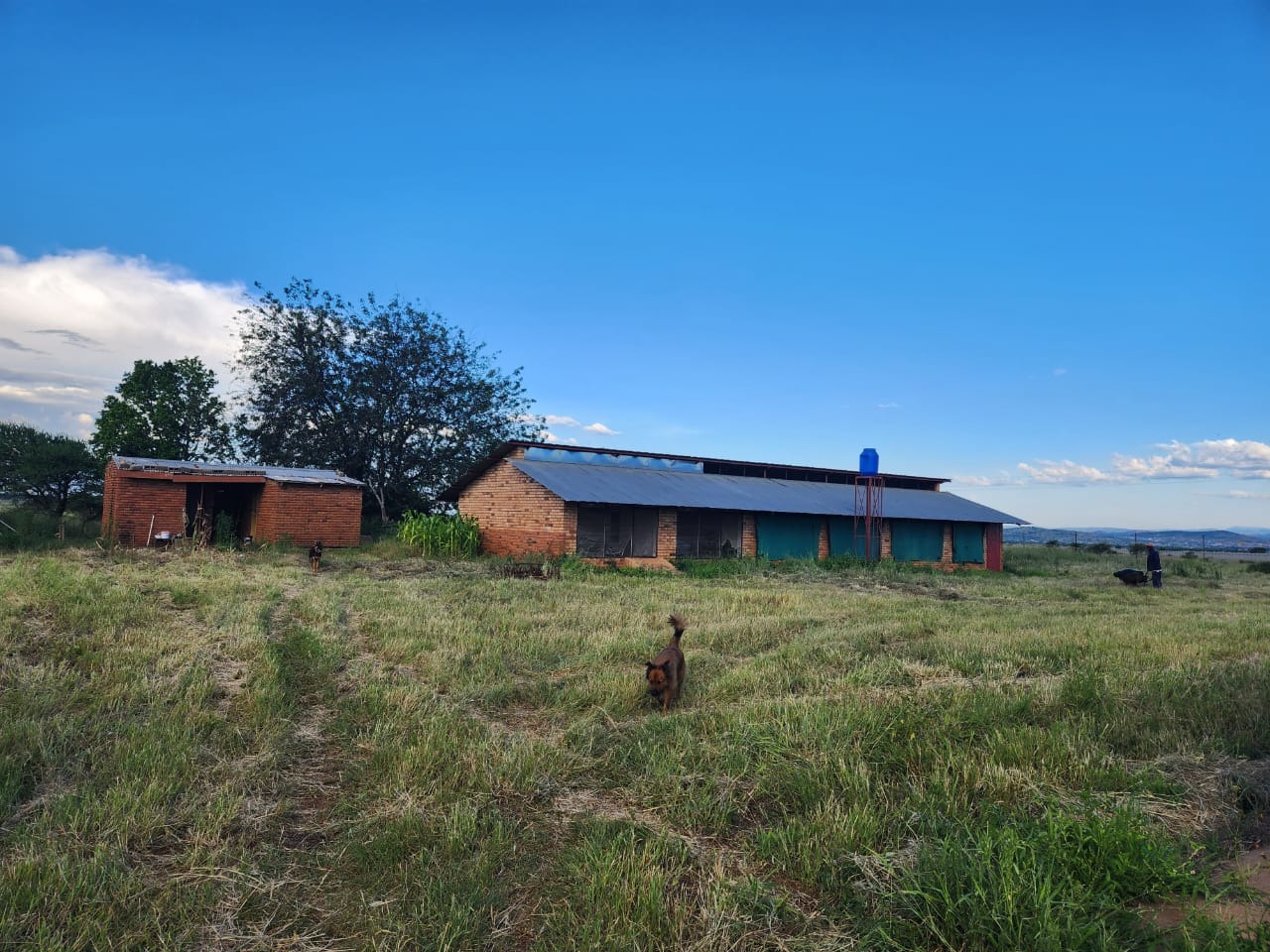 On this smallholding, 5 chicken pens can hold a maximum of 15 000 chickens. Apart from the chicken pens, there is a face-brick building with an abattoir and cold room