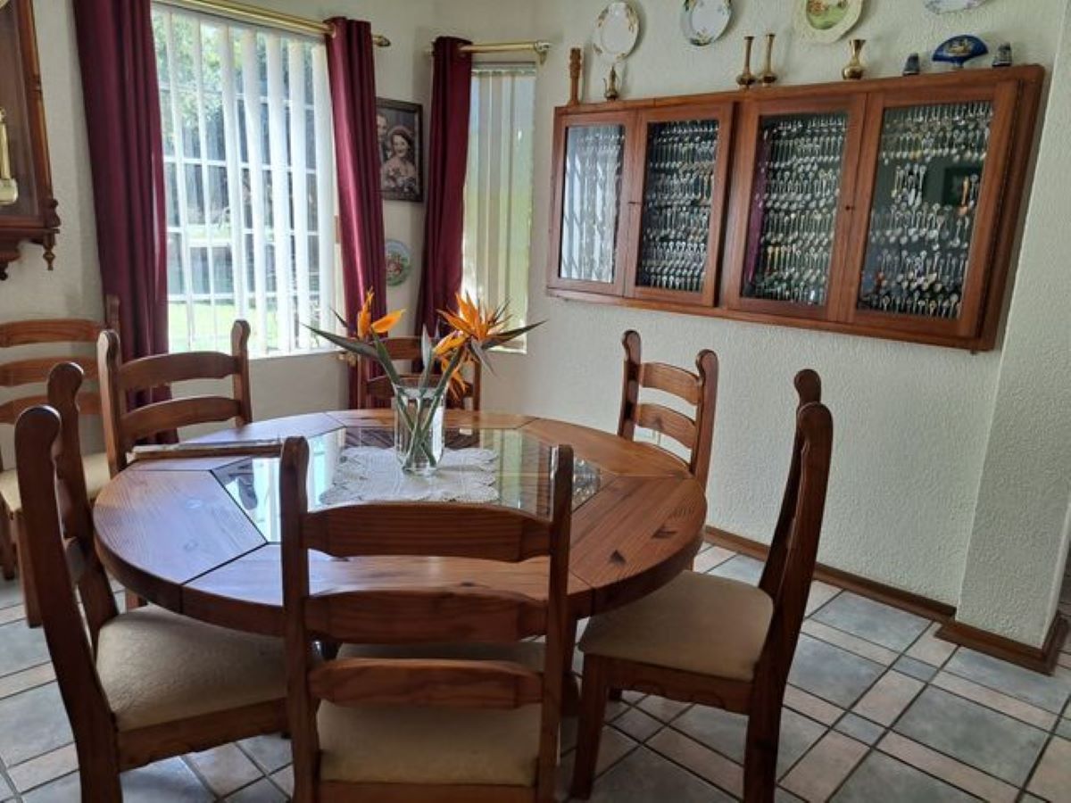 This exceptionally neat well maintained family home living area offers 2 lounges. The first a formal lounge that doubles up as a TV room and the second a nice family living area next to the bar that leads out through sliding doors onto a secluded private patio braai area overlooking the crystal clear blue swimming pool.