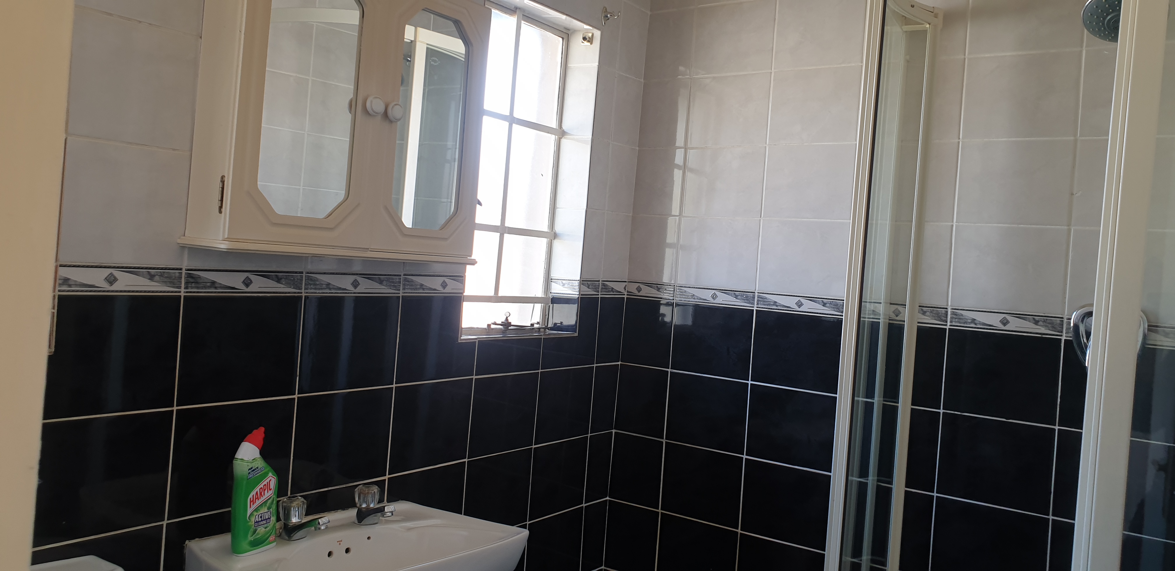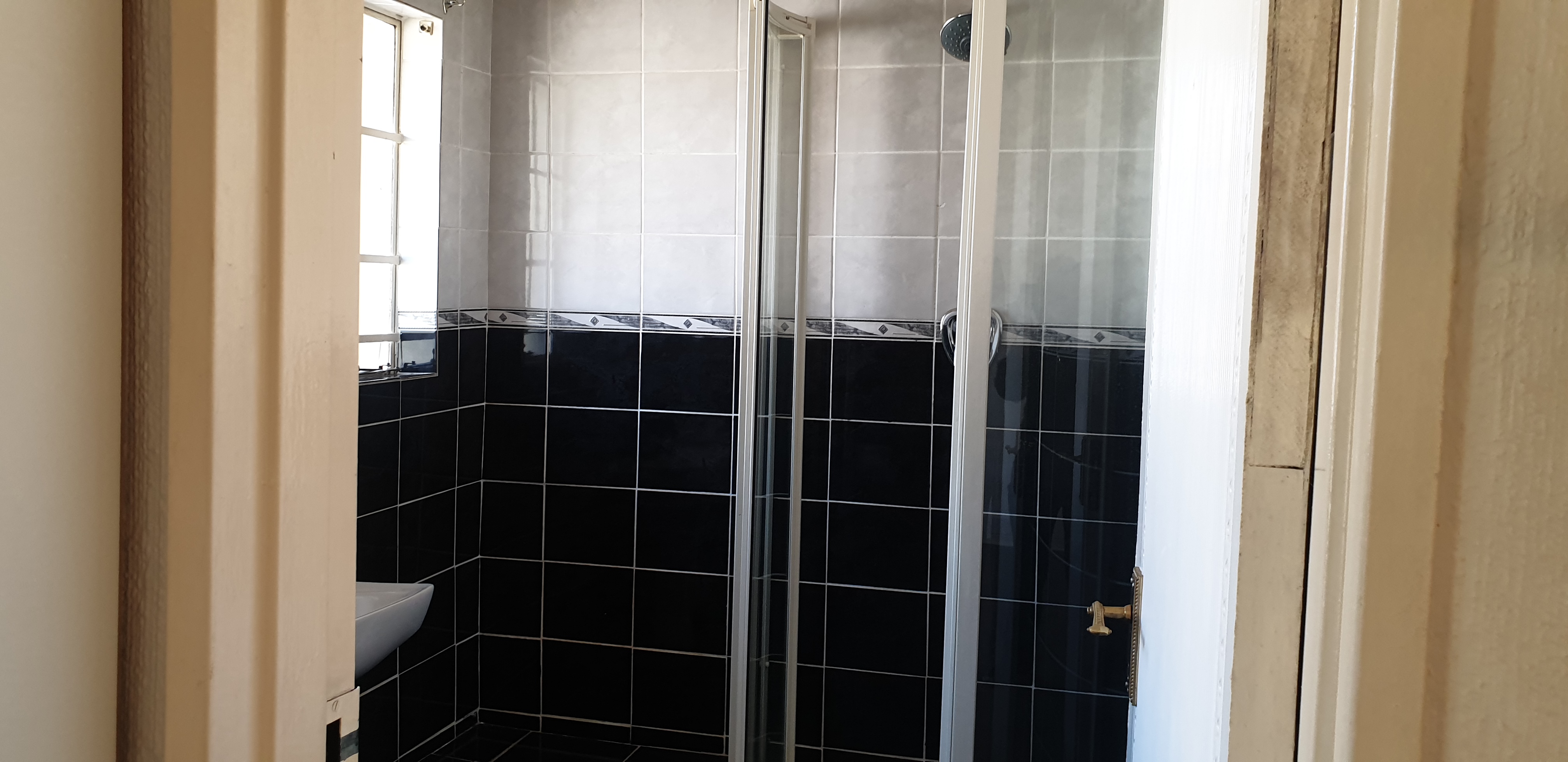 Upstairs is the Joint two Bedroom with a walk in Closet and a bathroom with a shower and standard fittings