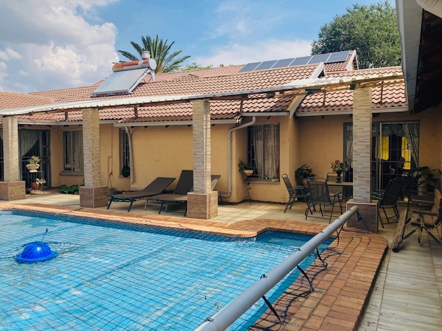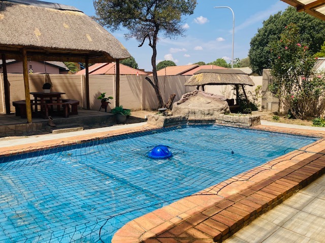 Spacious living area with 4 lounges and dining areas with a cosy double sided fir place. Open plan to large modern kitchen inter-leading entertainment area with an indoor which takes you to the pool area with a built in braai stand and a lapa. Massive main bedroom is equipped with a large built ins an an en-suite, an office and an indoor gym. The property has 3 modern spacious kitchens. It has 3 flatlets that can be used for rentals. The property is fully enclosed with access control via an automatic gate system and double automatic garage. Garden is completely enclosed, providing a safe play area for children and pets alike.