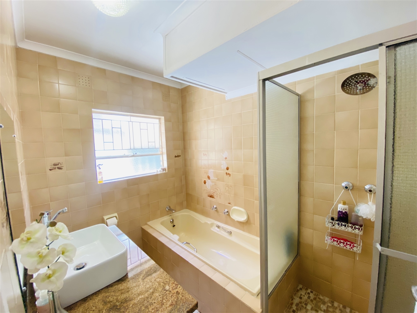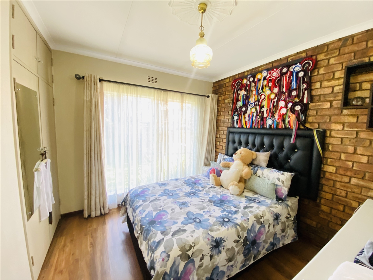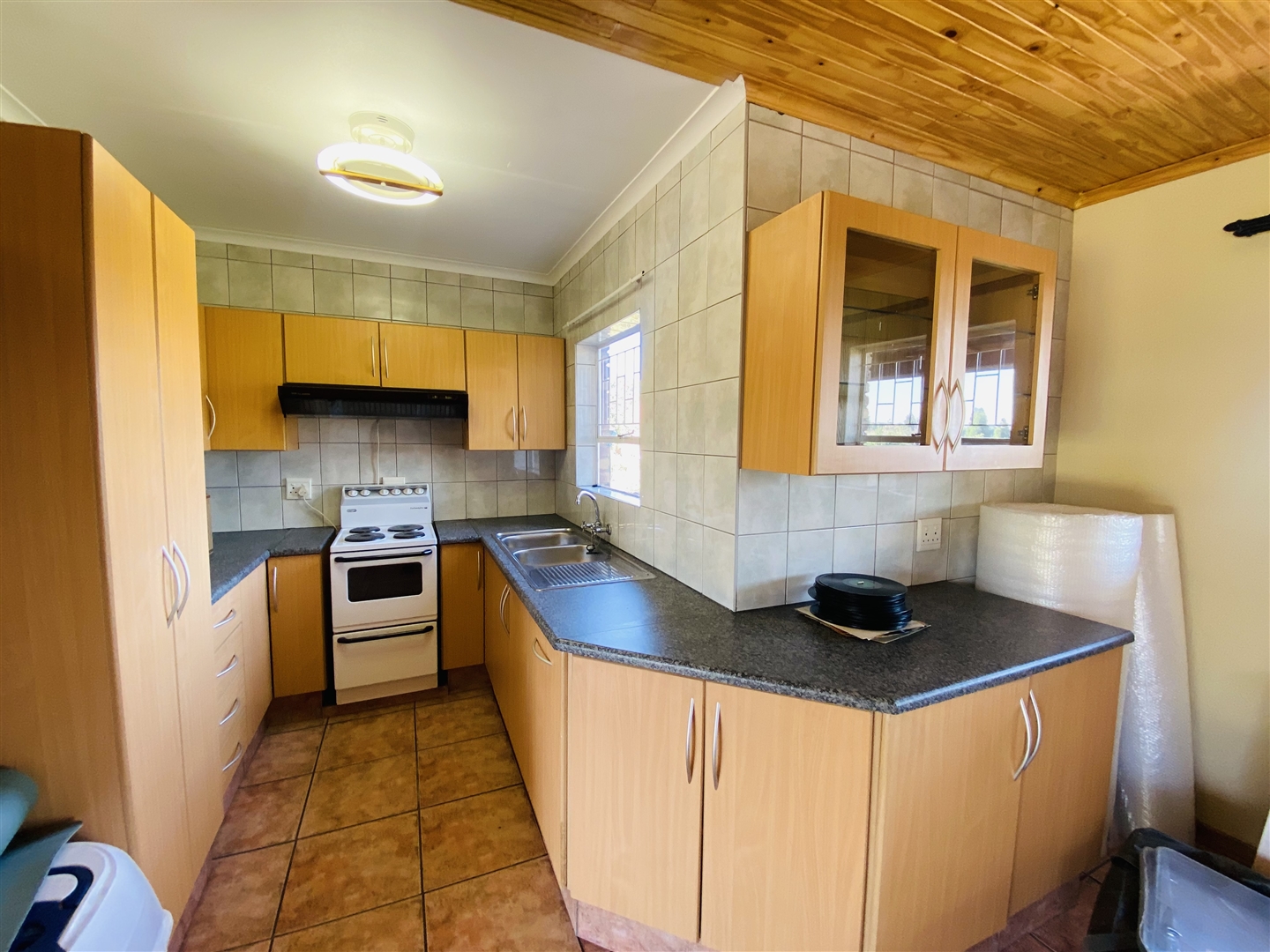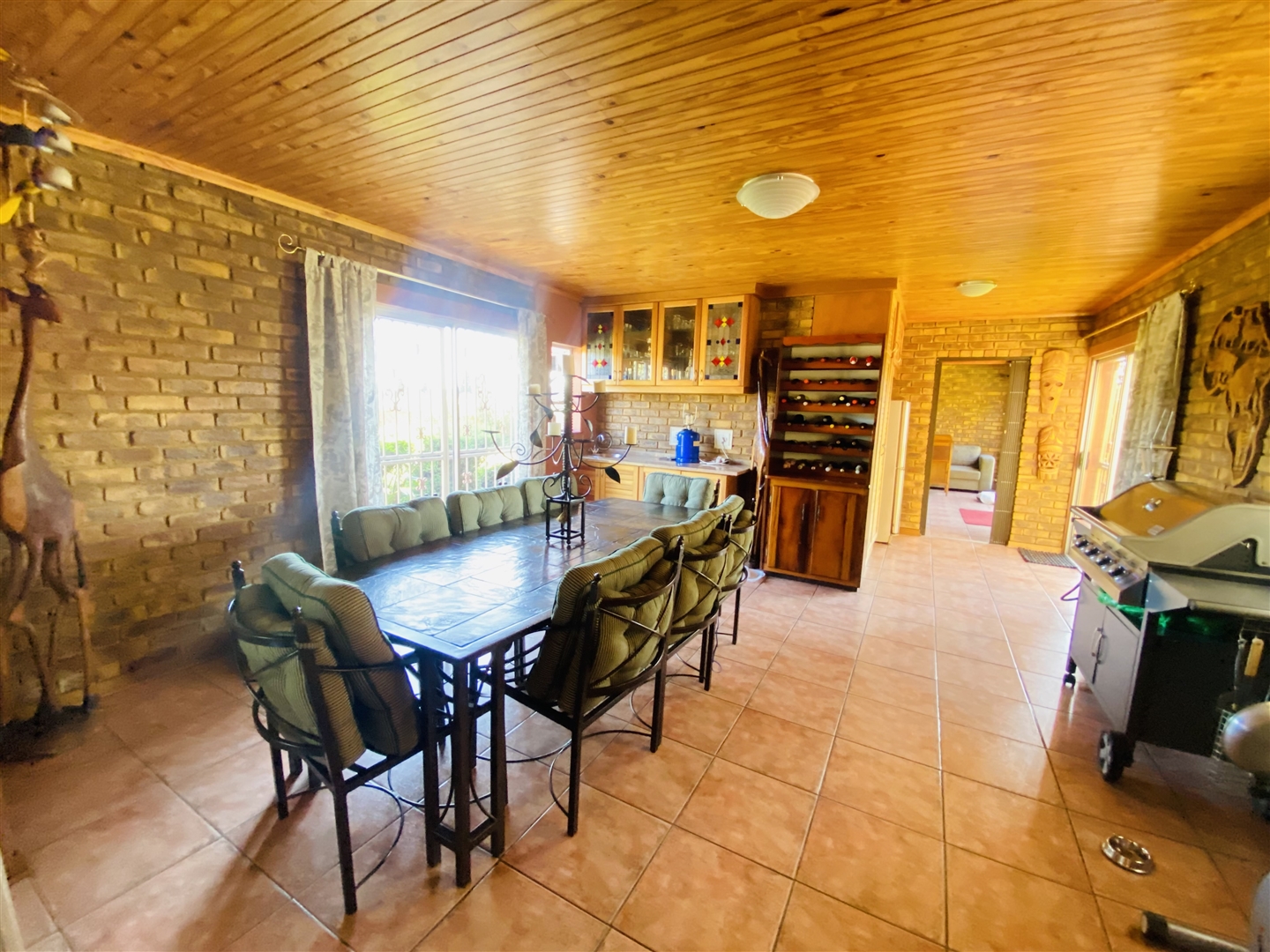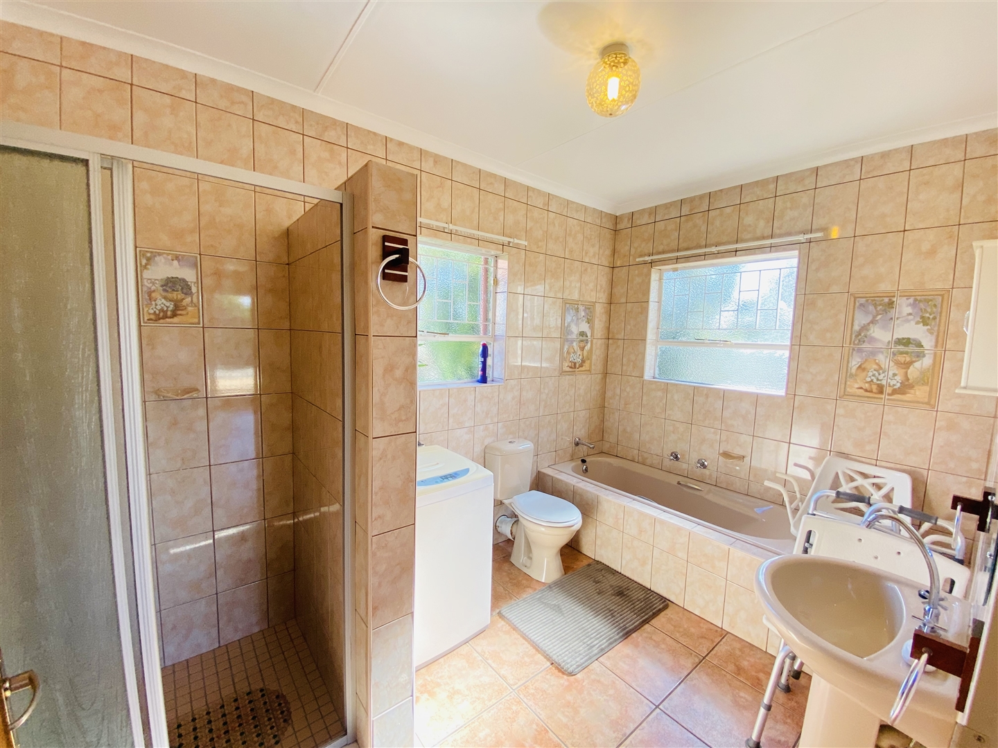 The outbuilding contains a flatlet with a full kitchen, open plan lounge and dining area that opens up to a pool. There is also a full bathroom and a bedroom with built-in cupboards. The property also includes a servants quarters with toilets. Outside, you'll find a sparkling pool, double garage, and a double carport for additional parking.
