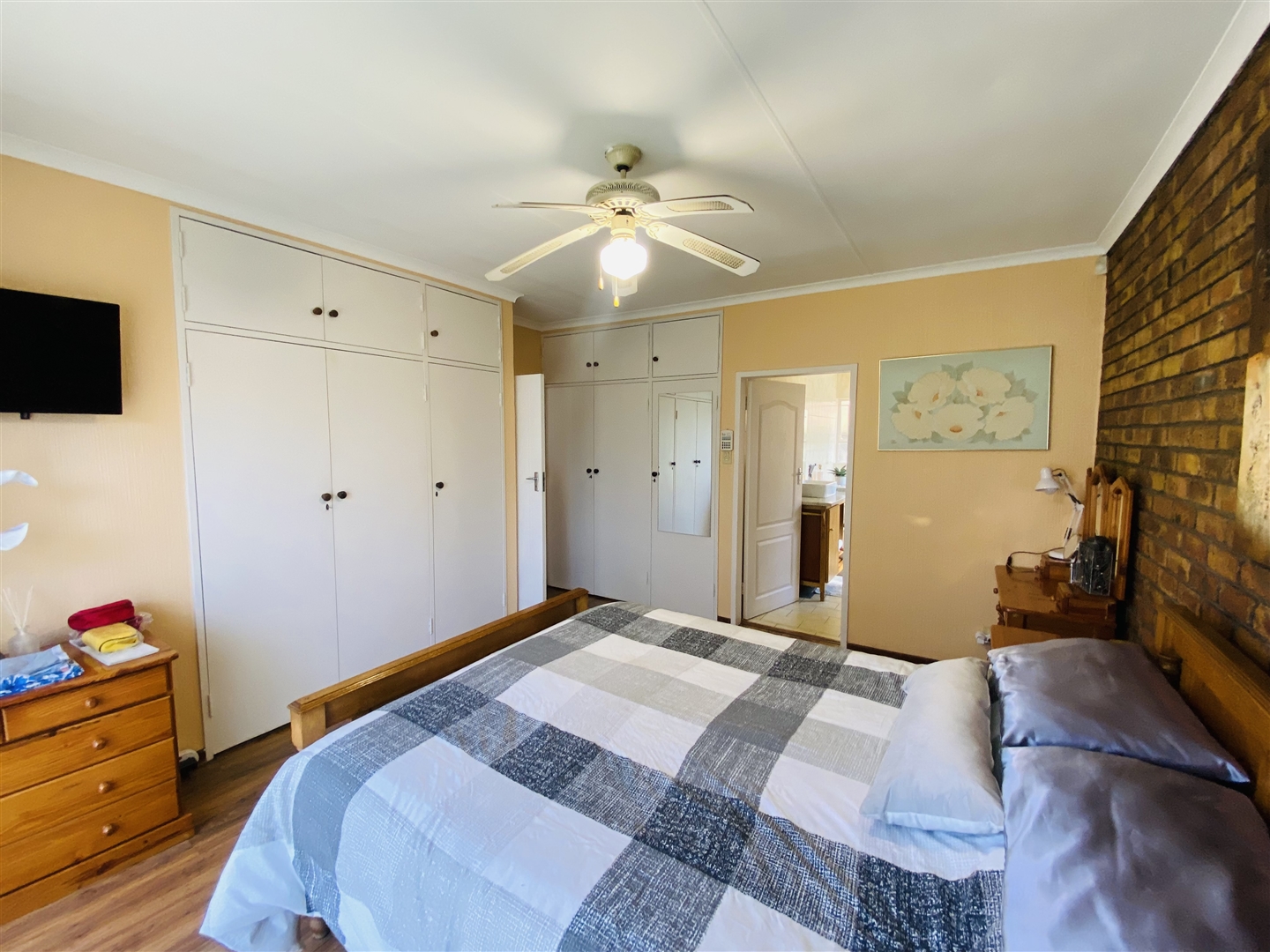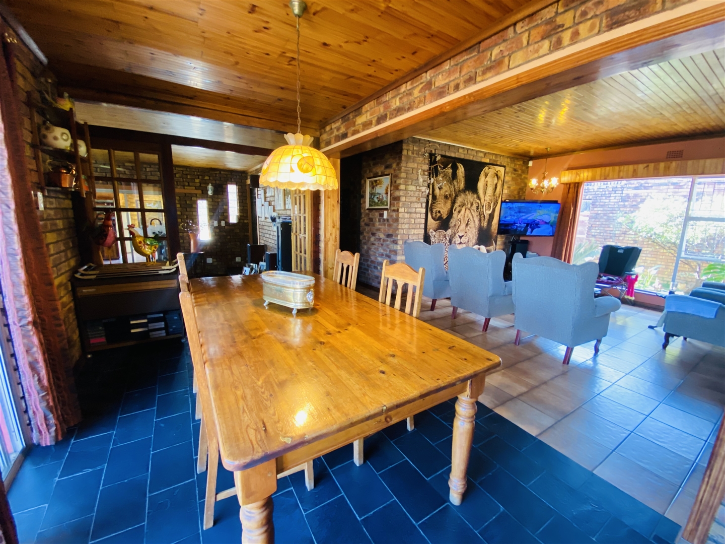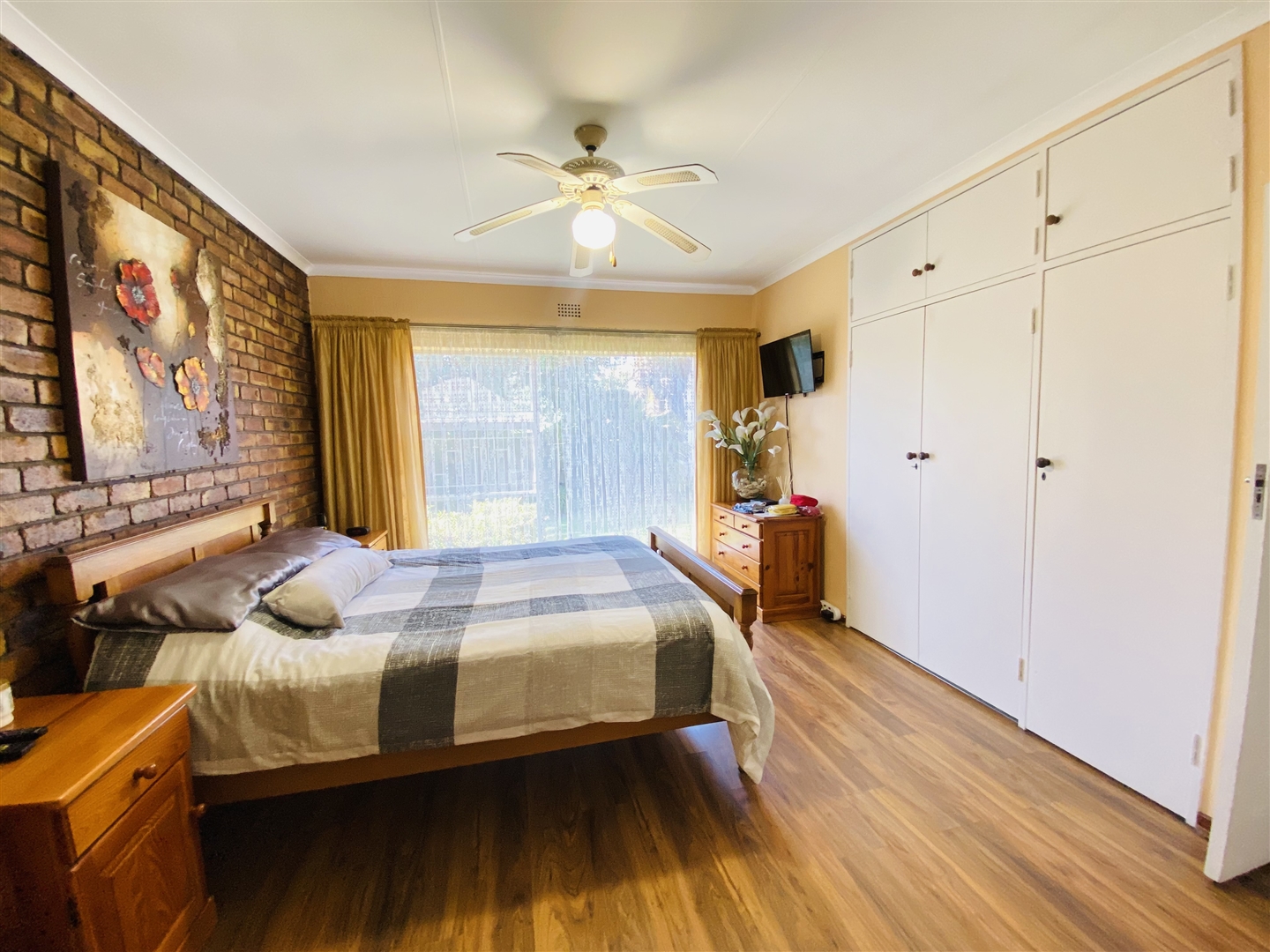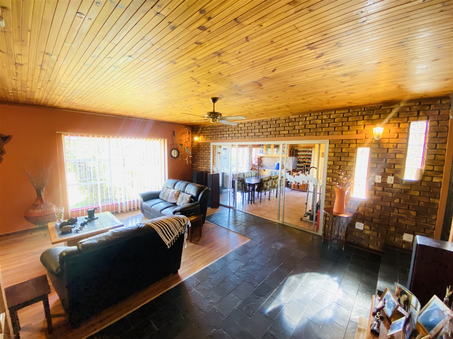 The outbuilding contains a flatlet with a full kitchen, open plan lounge and dining area that opens up to a pool. There is also a full bathroom and a bedroom with built-in cupboards. The property also includes a servants quarters with toilets. Outside, you'll find a sparkling pool, double garage, and a double carport for additional parking.
