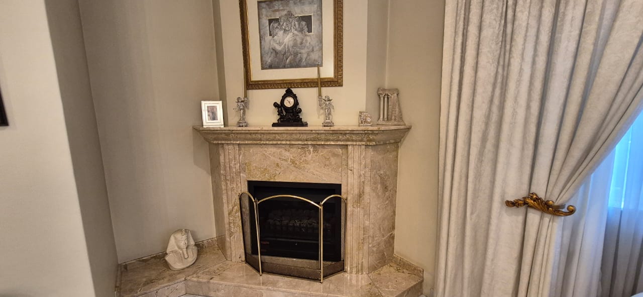 Ascend the beautiful marble staircase to find five thoughtfully carpeted bedrooms, each furnished with built-in cupboards, underfloor heating, and private balconies. The main suite features an en-suite bathroom, complemented by two additional contemporary bathrooms showcasing exquisite tile work.