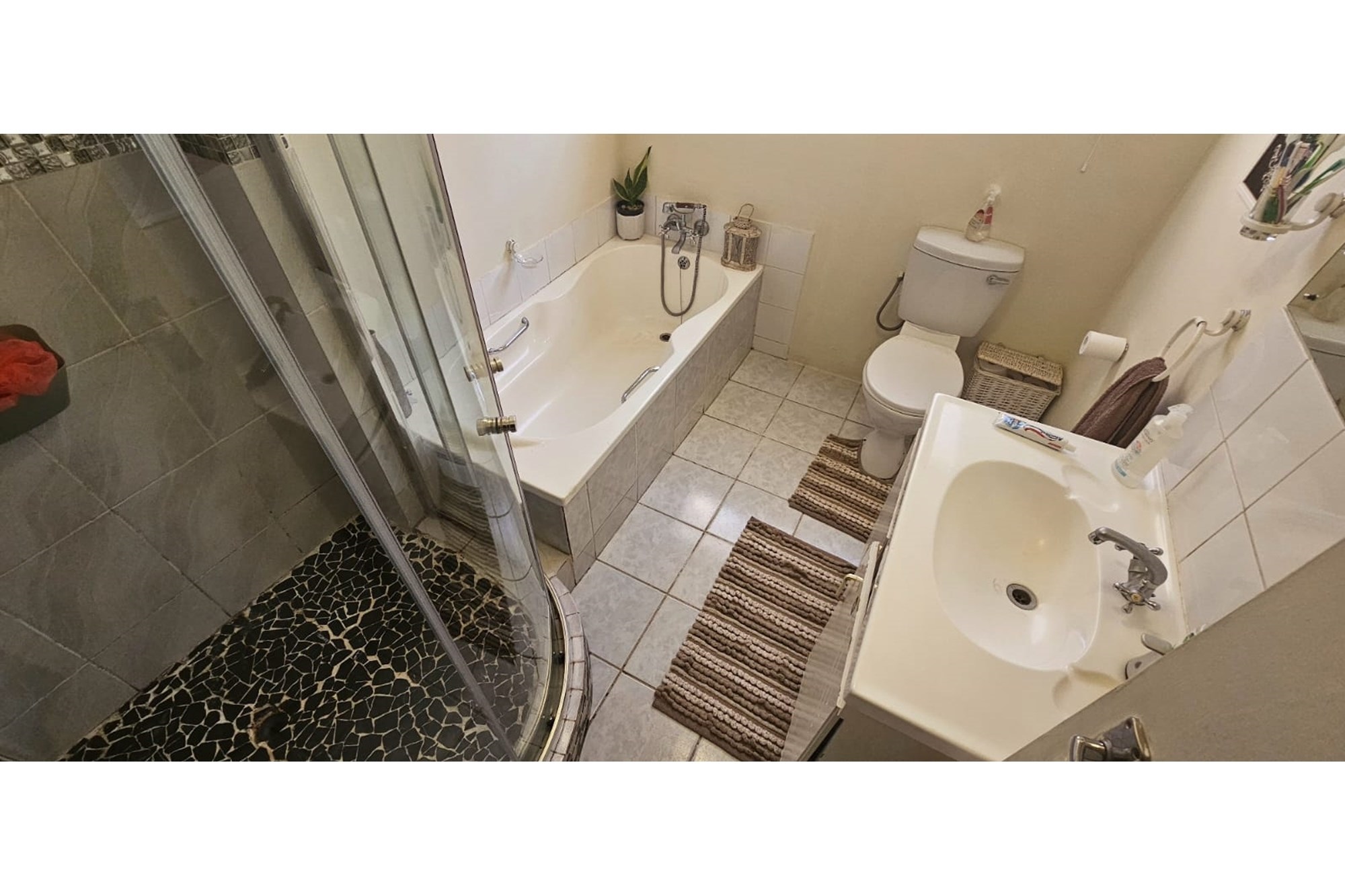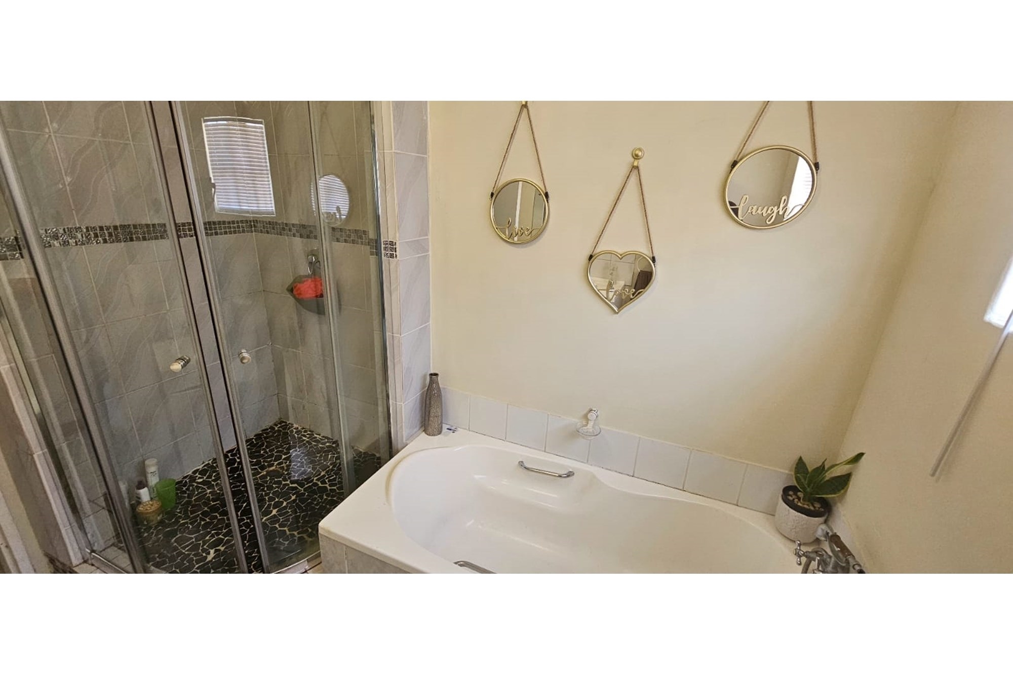 The home offers three generously sized bedrooms, each with built-in cupboards, and two full bathrooms that showcase contemporary fittings and luxurious finishes.