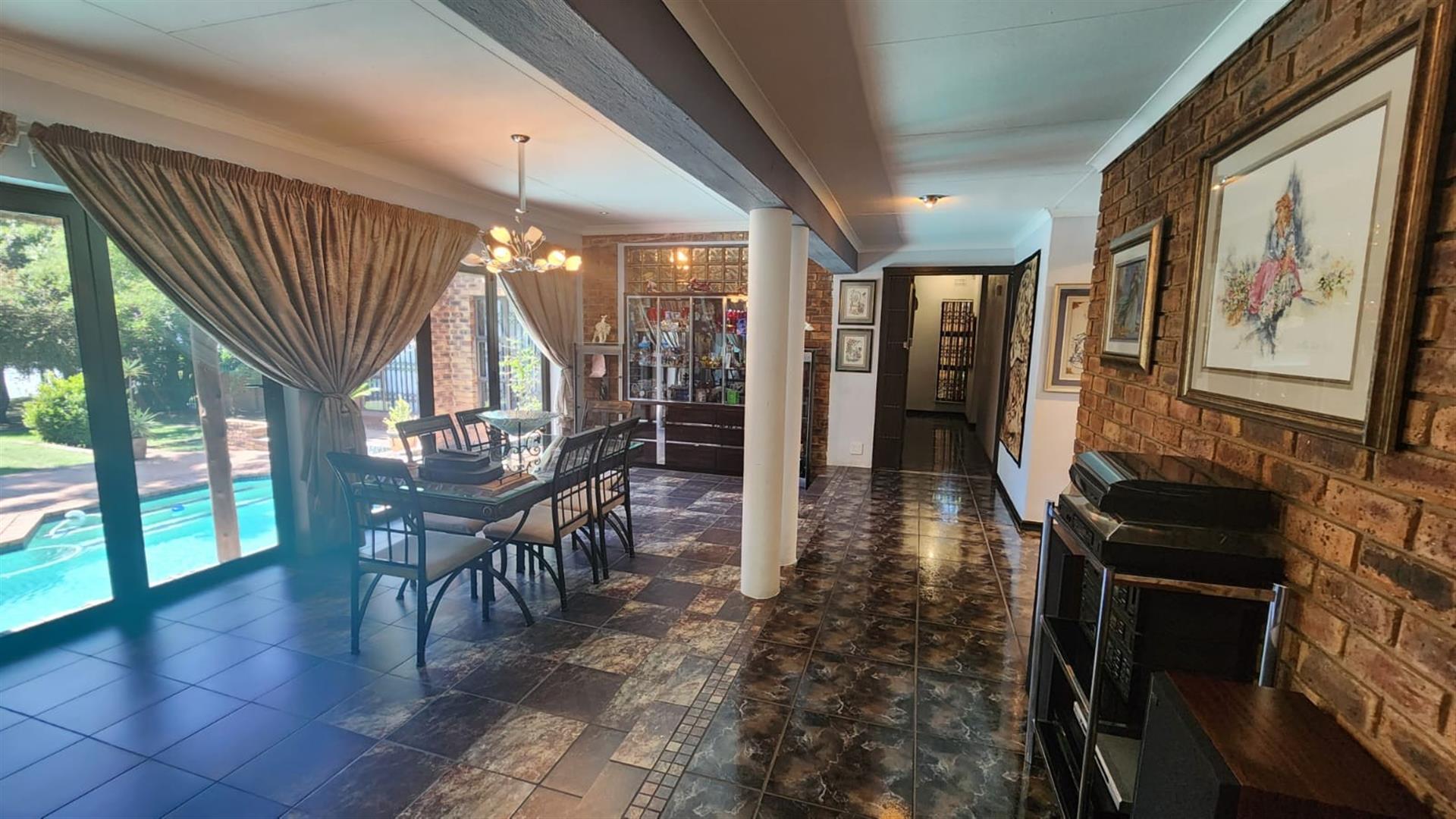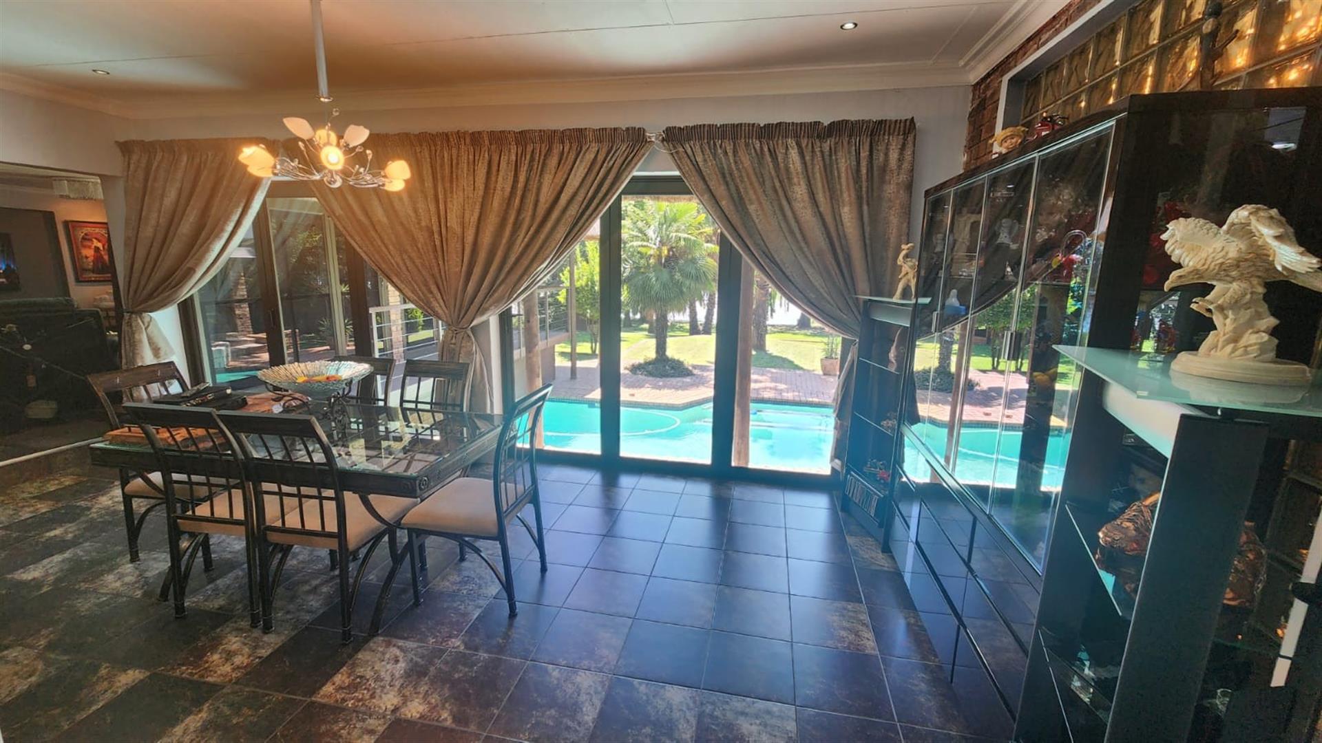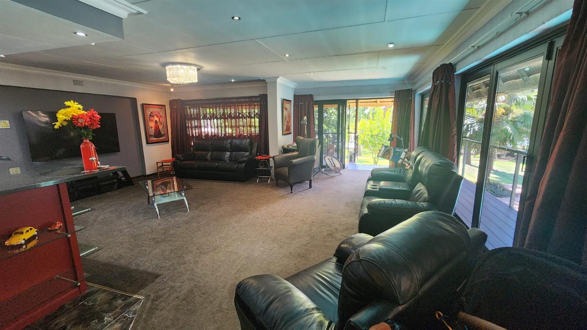The lounge is the focal point of the home, featuring reinforced stacker doors that open onto a covered veranda overlooking the dam and bird sanctuary — an ideal space for relaxed outdoor living, entertaining guests, or enjoying quiet sunset views.