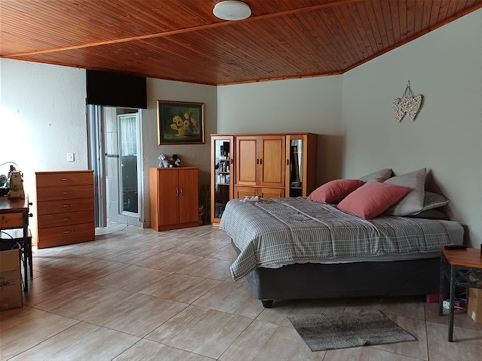 The main bedroom is massive with built-in cupboards and a full, on-suit bathroom with a corner spa bath.