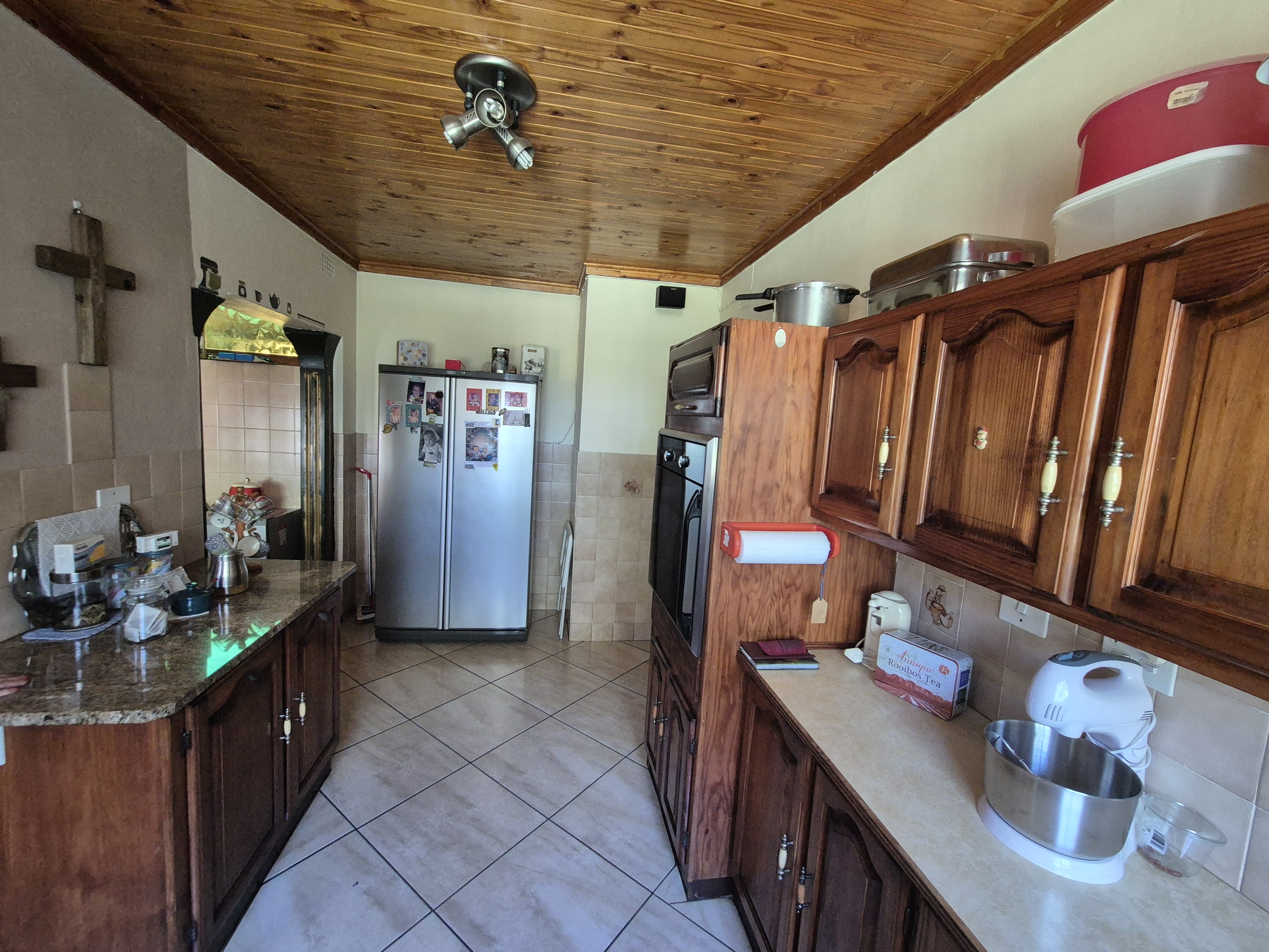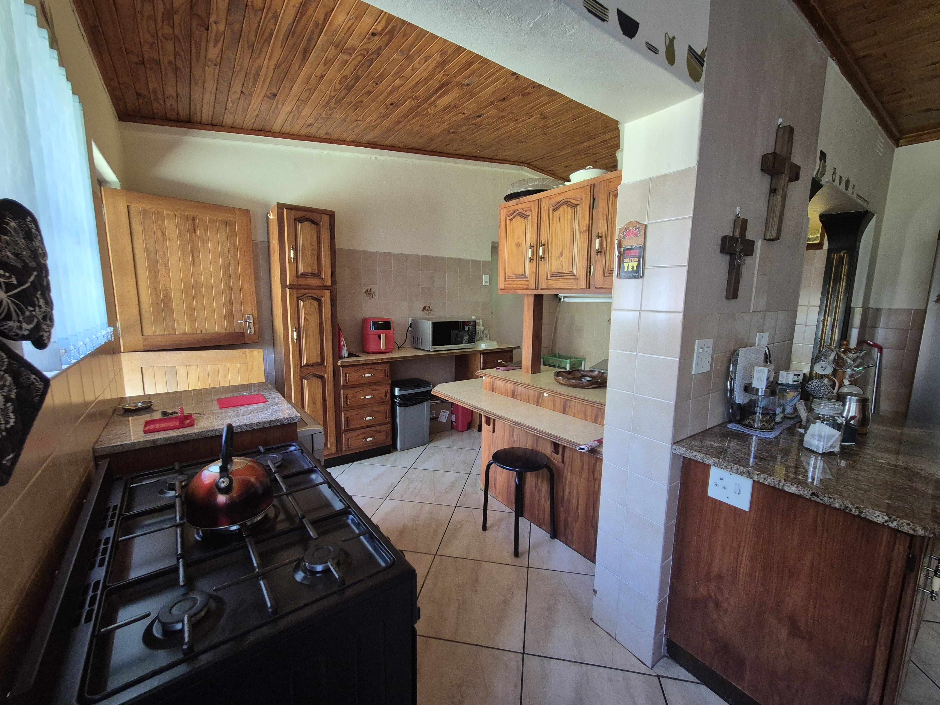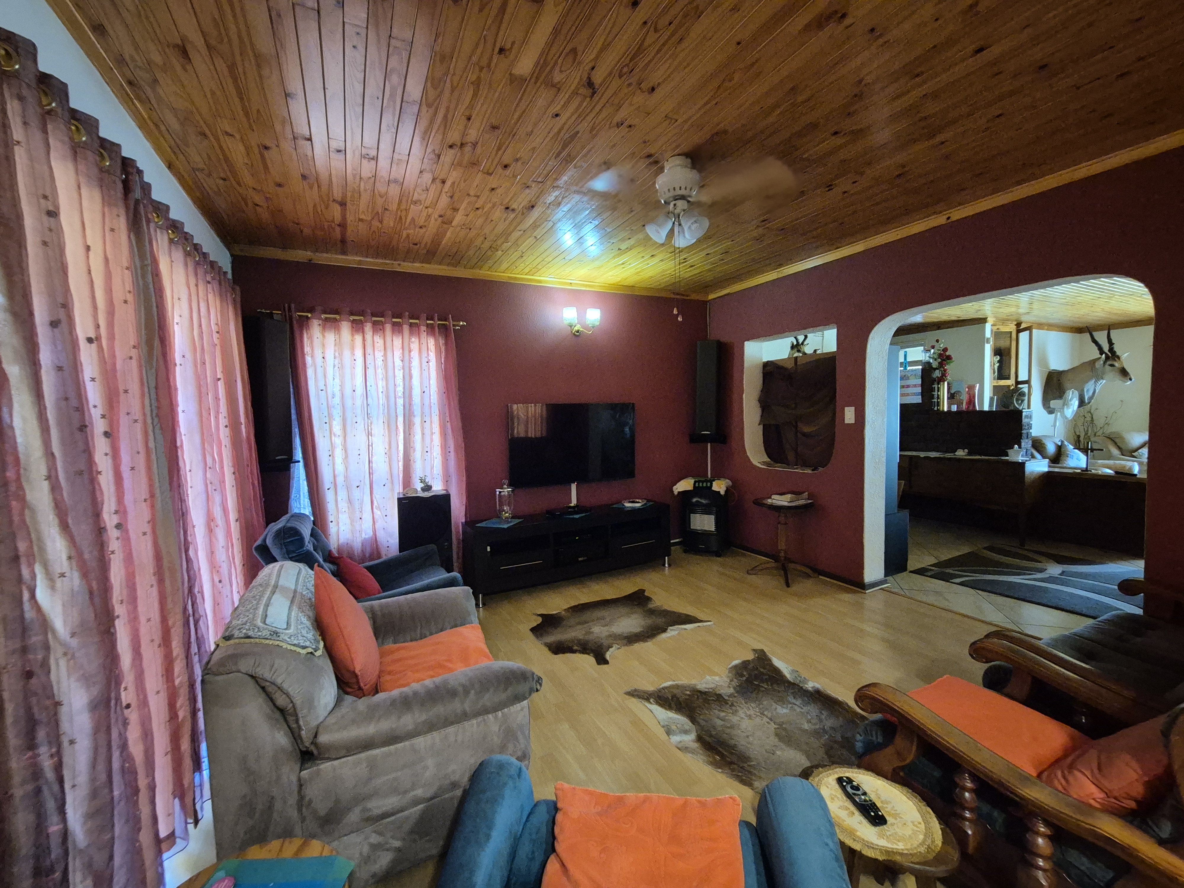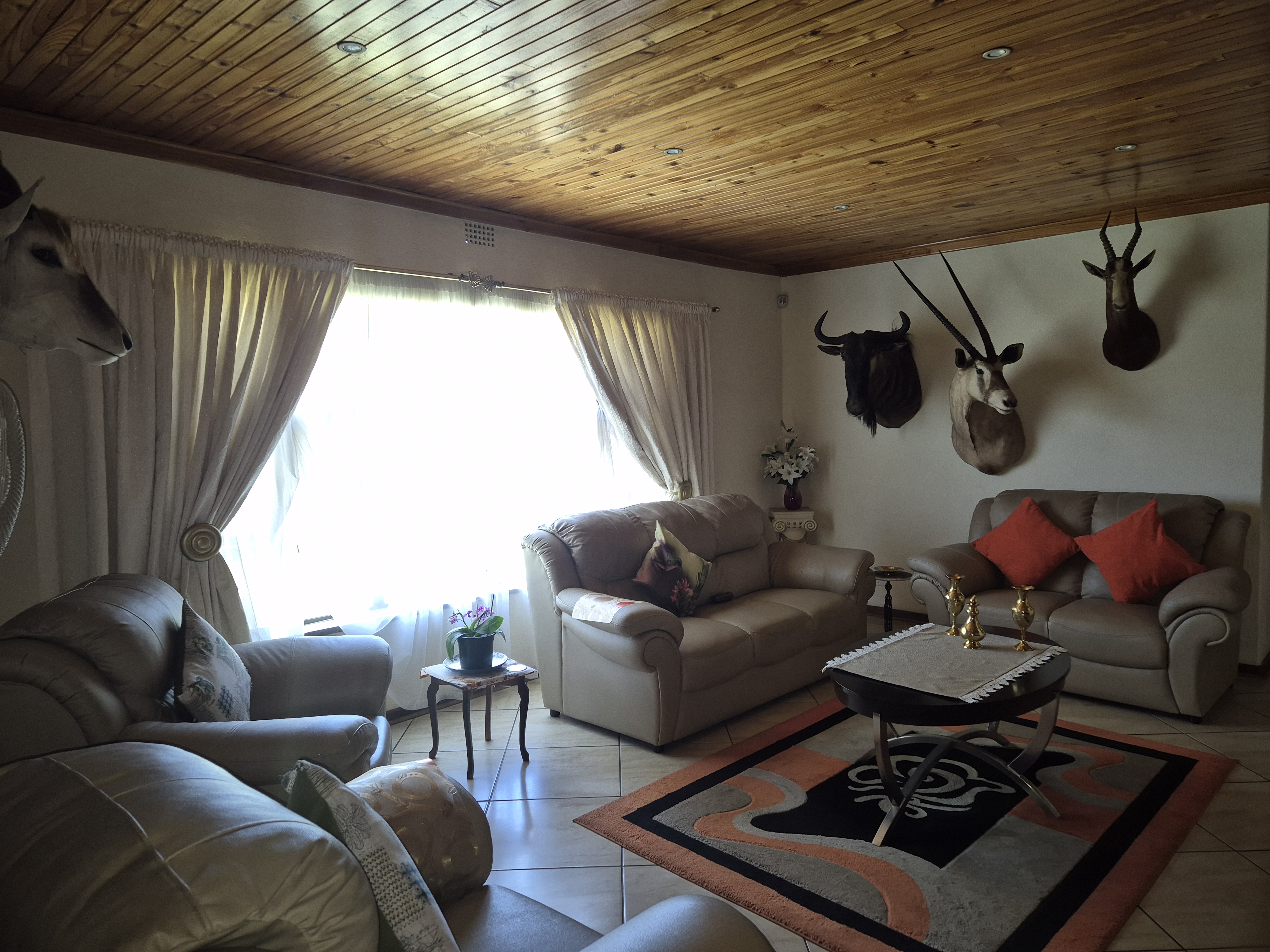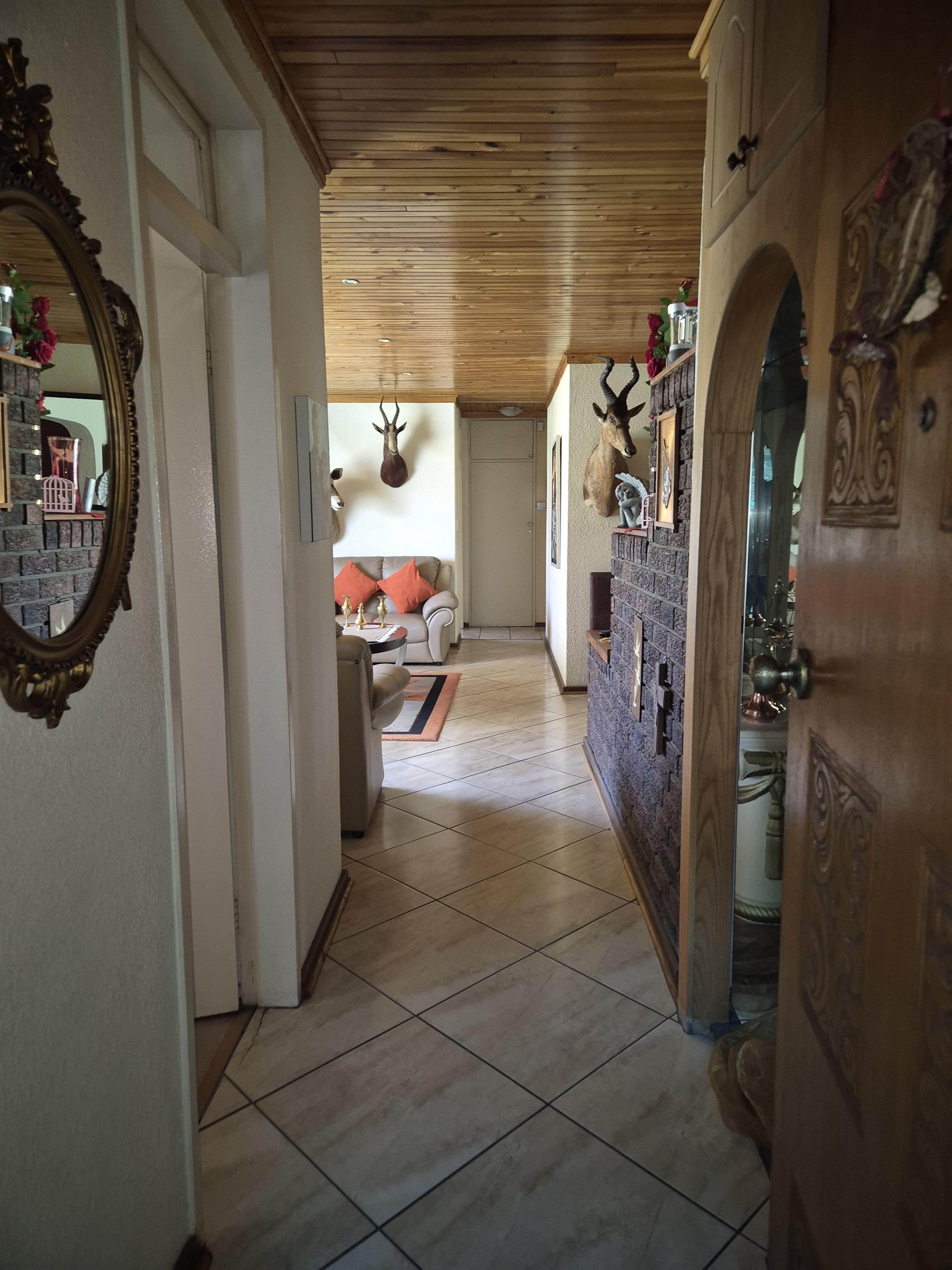 Inside, you’ll find a warm country-style kitchen with a center island and gas stove—perfect for home chefs—along with a separate laundry room and built-in hallway cupboards for extra storage. Multiple living areas, including a large lounge, cozy TV room, and elegant dining area, create inviting spaces for both relaxation and entertainment. A dedicated entertainment area with a built-in braai makes hosting friends and family a delight.