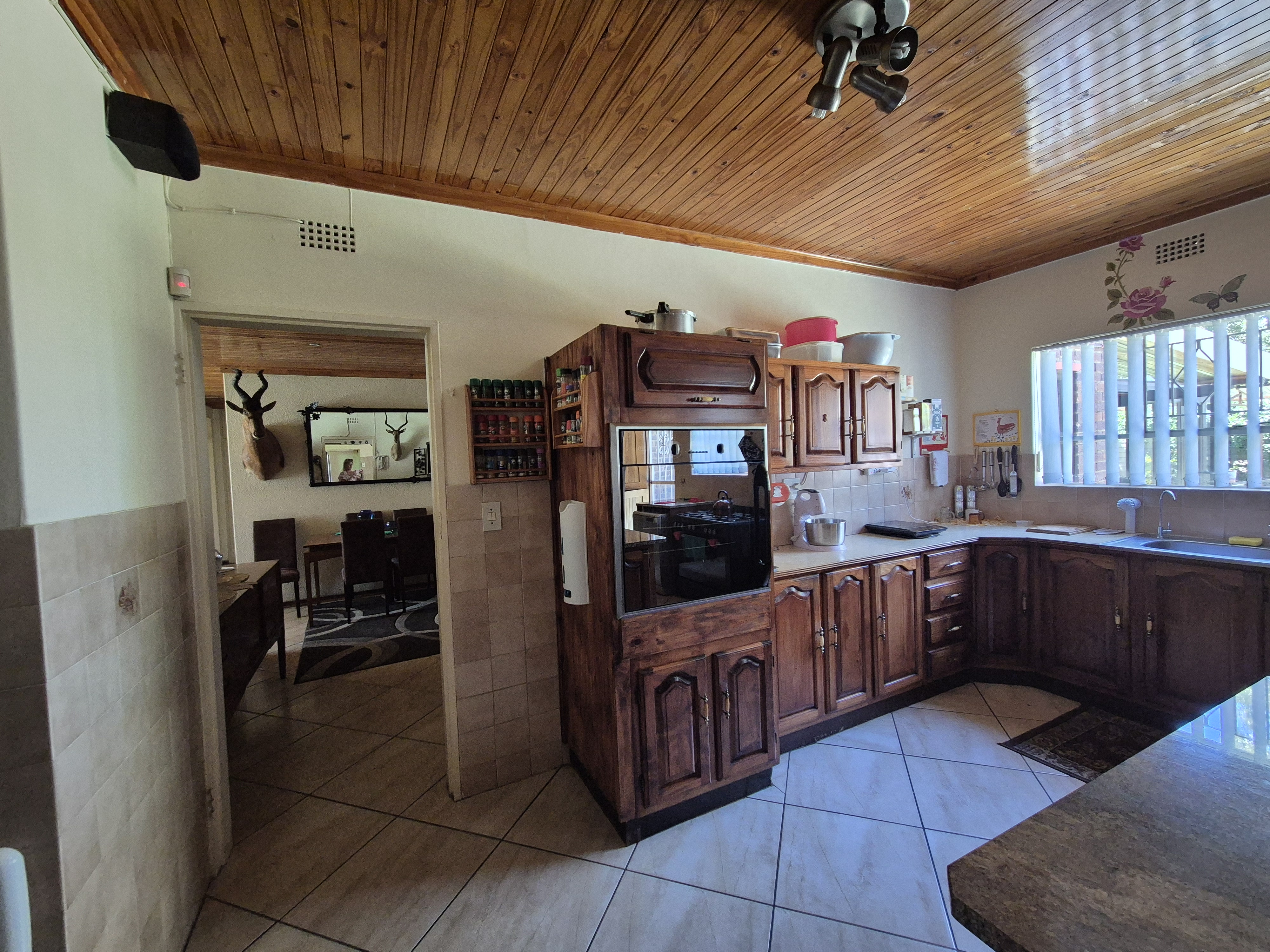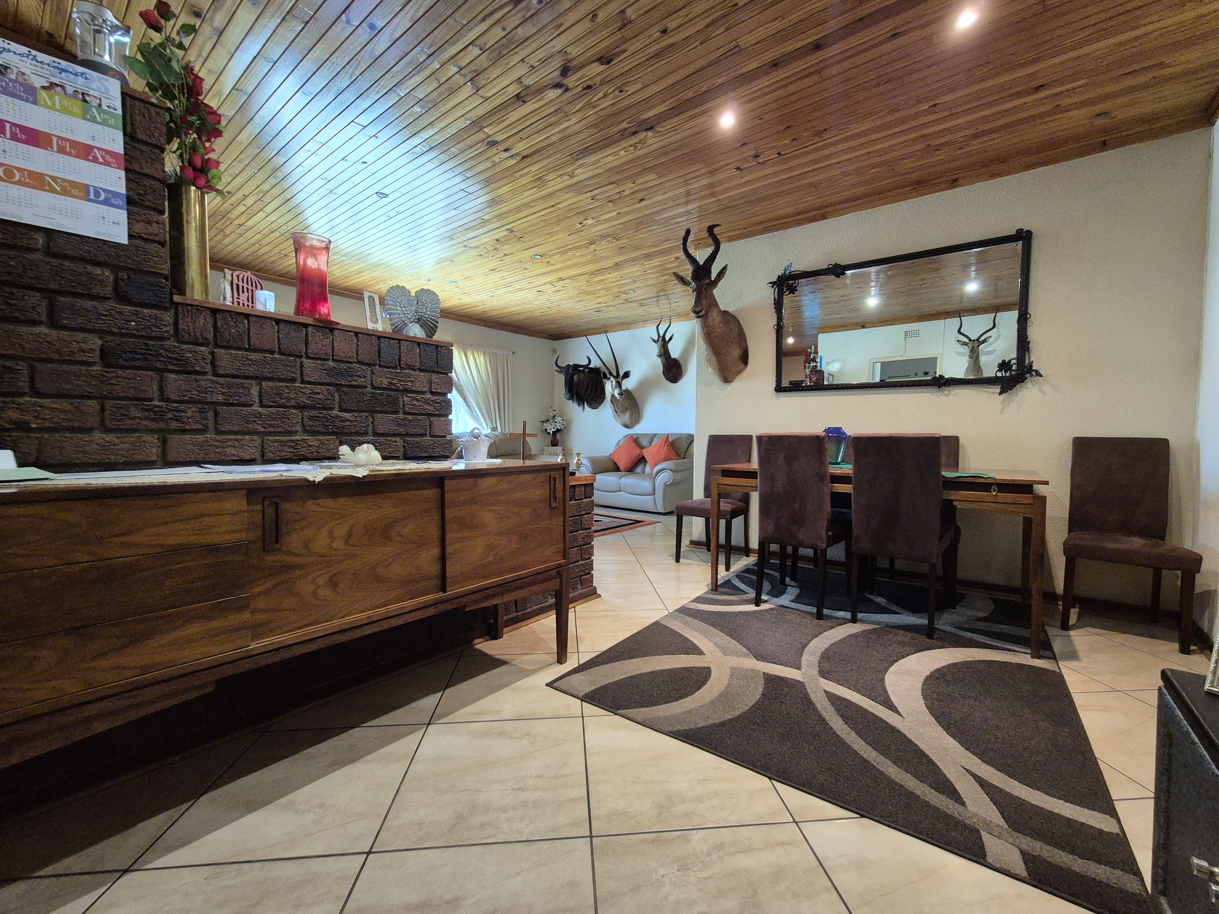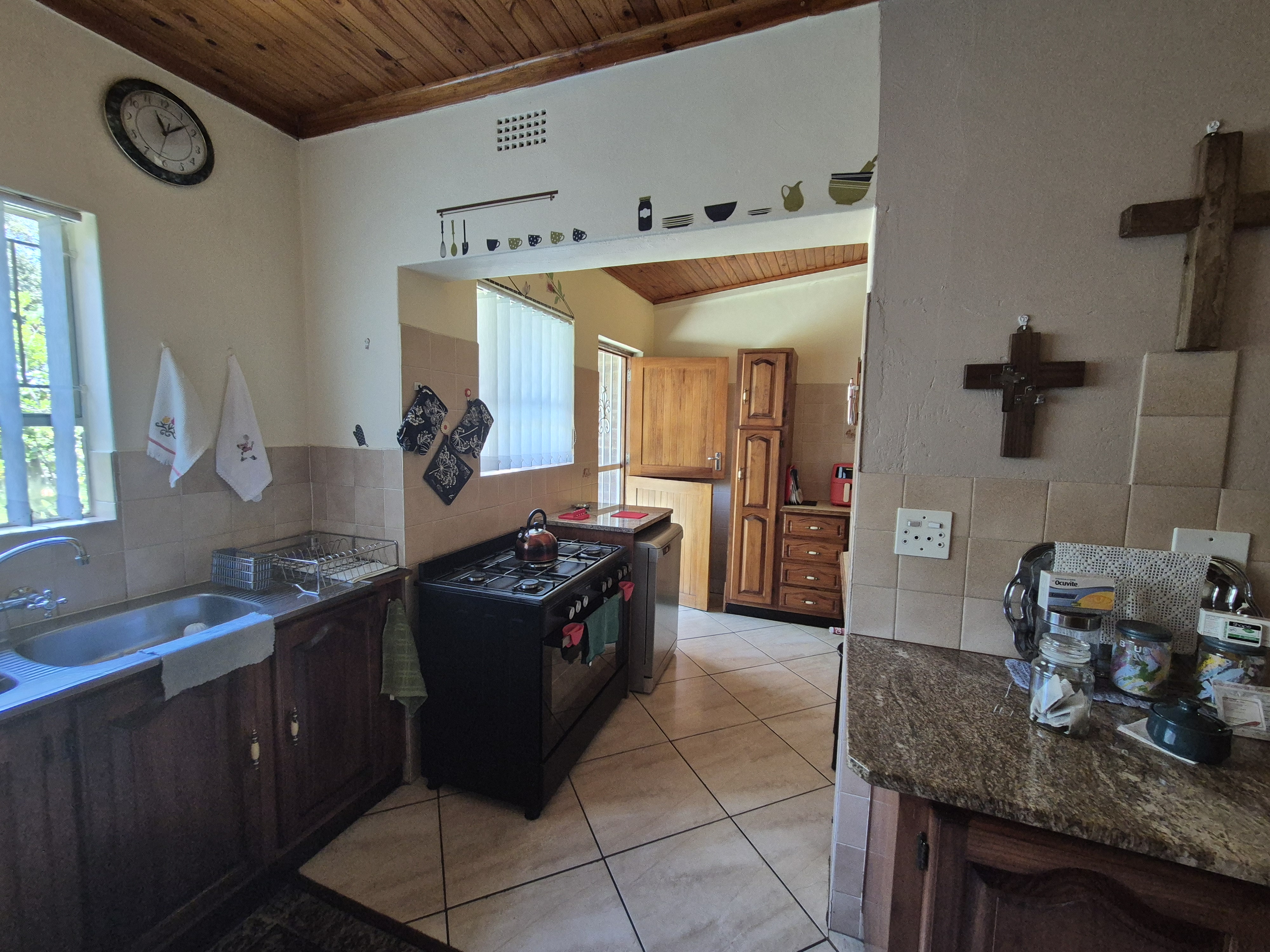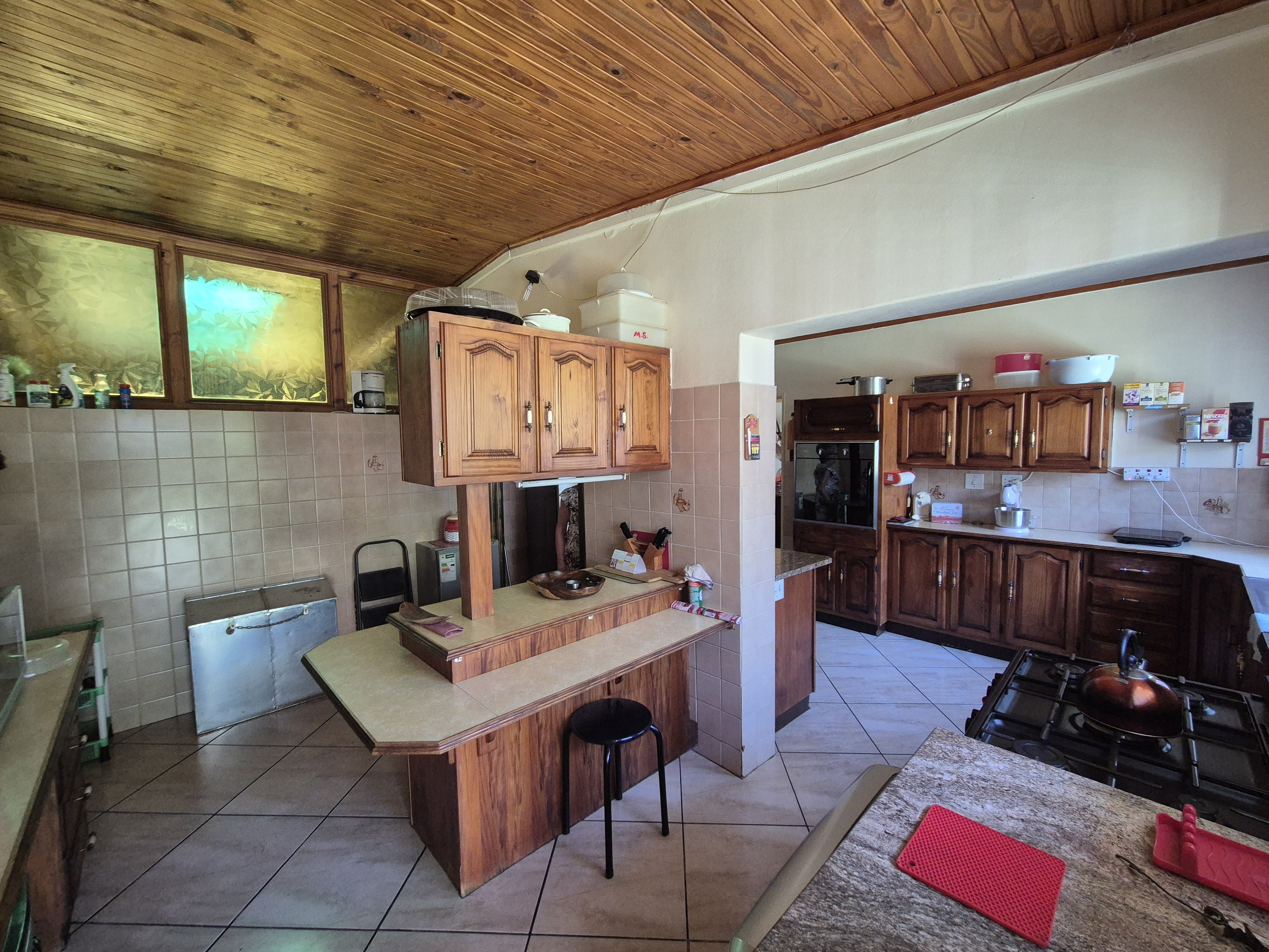 Inside, you’ll find a warm country-style kitchen with a center island and gas stove—perfect for home chefs—along with a separate laundry room and built-in hallway cupboards for extra storage. Multiple living areas, including a large lounge, cozy TV room, and elegant dining area, create inviting spaces for both relaxation and entertainment. A dedicated entertainment area with a built-in braai makes hosting friends and family a delight.