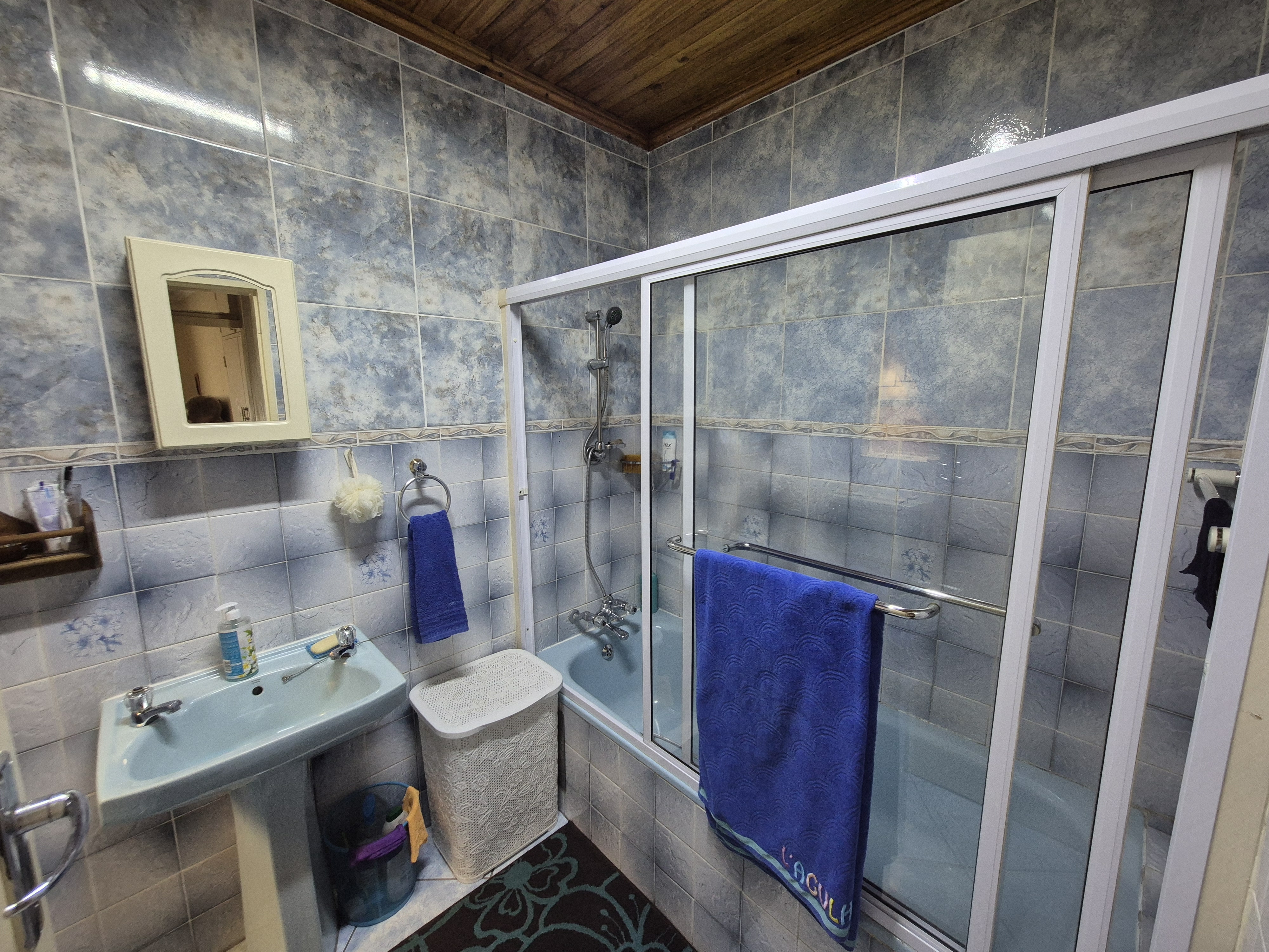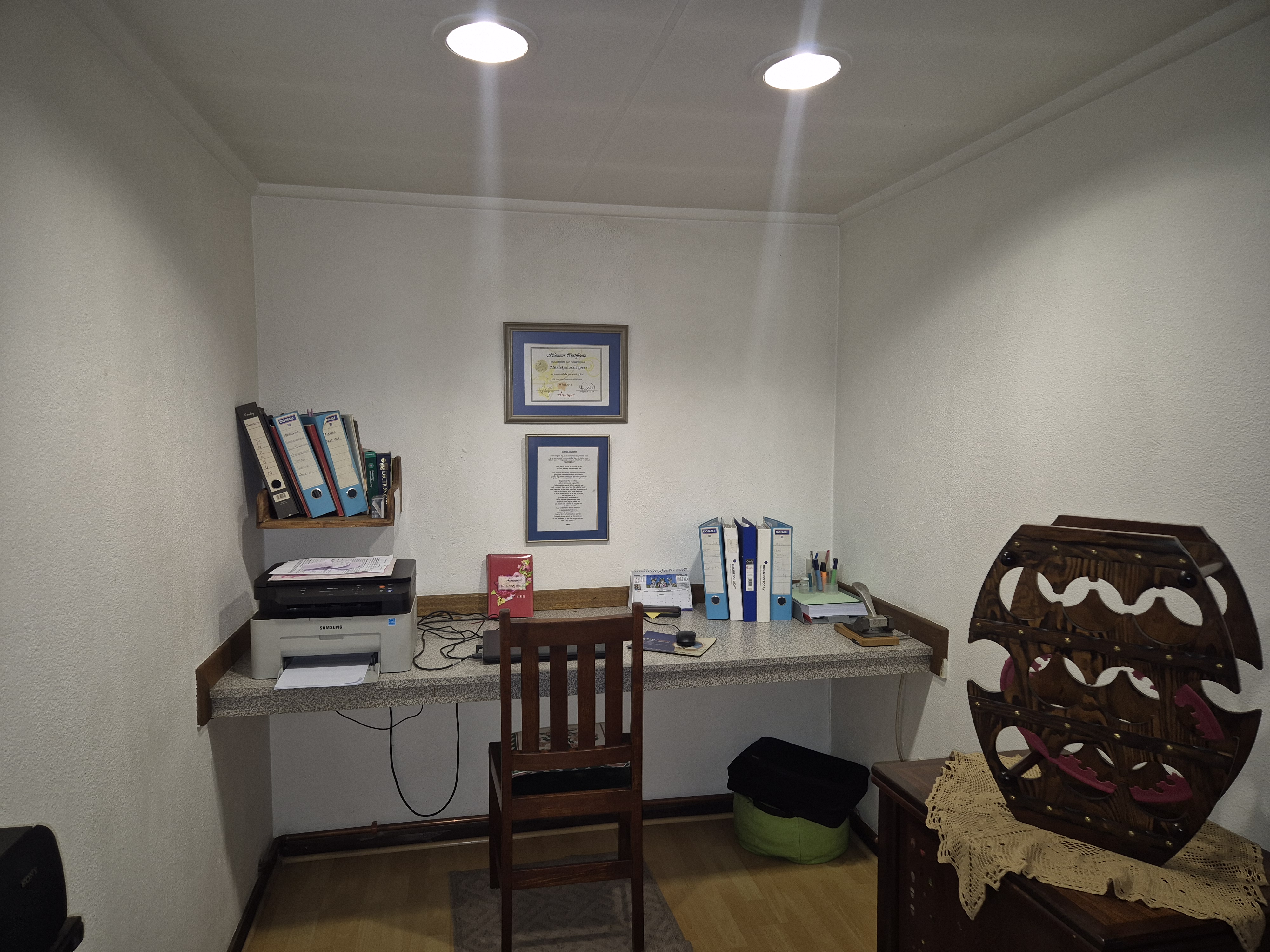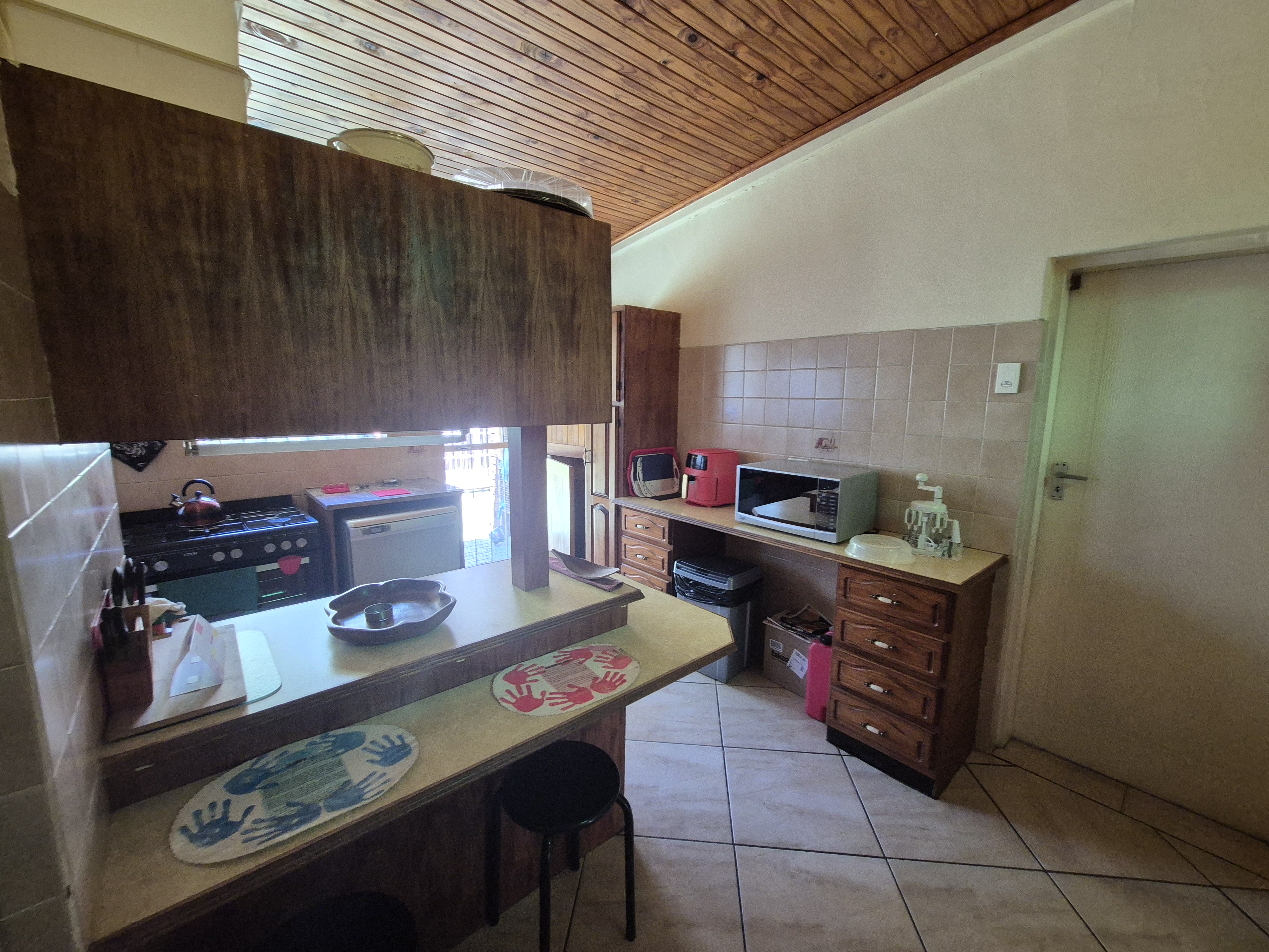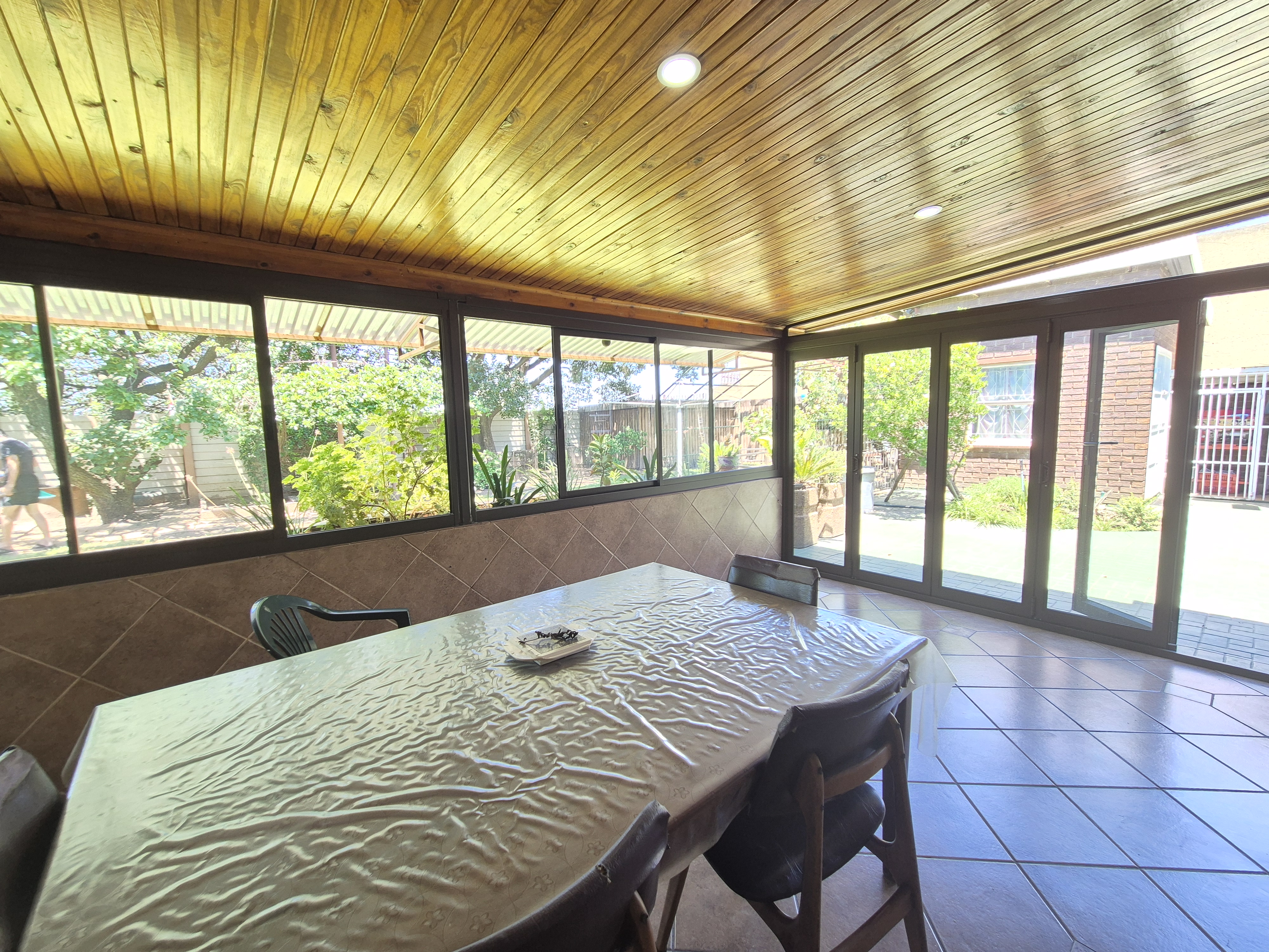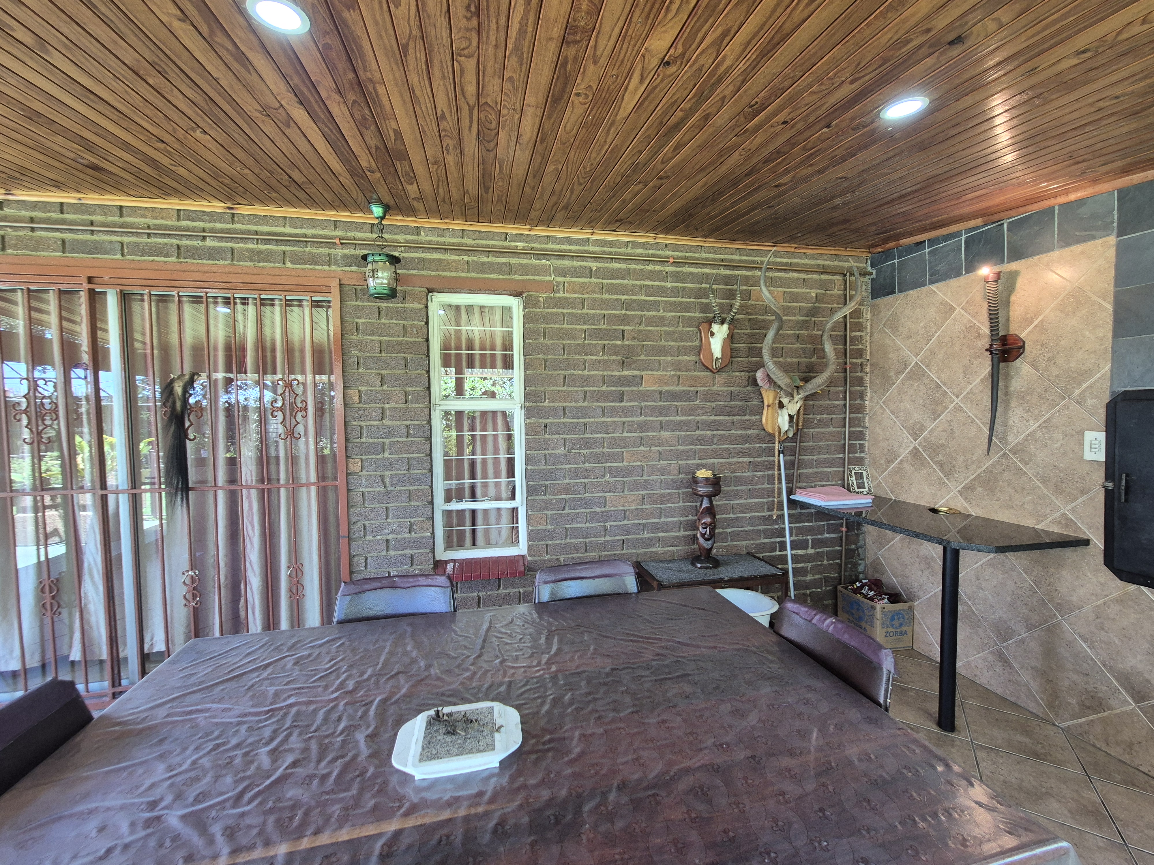 Inside, you’ll find a warm country-style kitchen with a center island and gas stove—perfect for home chefs—along with a separate laundry room and built-in hallway cupboards for extra storage. Multiple living areas, including a large lounge, cozy TV room, and elegant dining area, create inviting spaces for both relaxation and entertainment. A dedicated entertainment area with a built-in braai makes hosting friends and family a delight.
