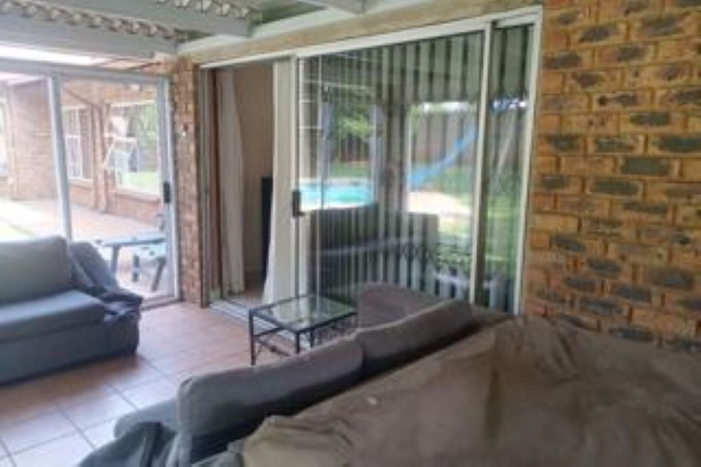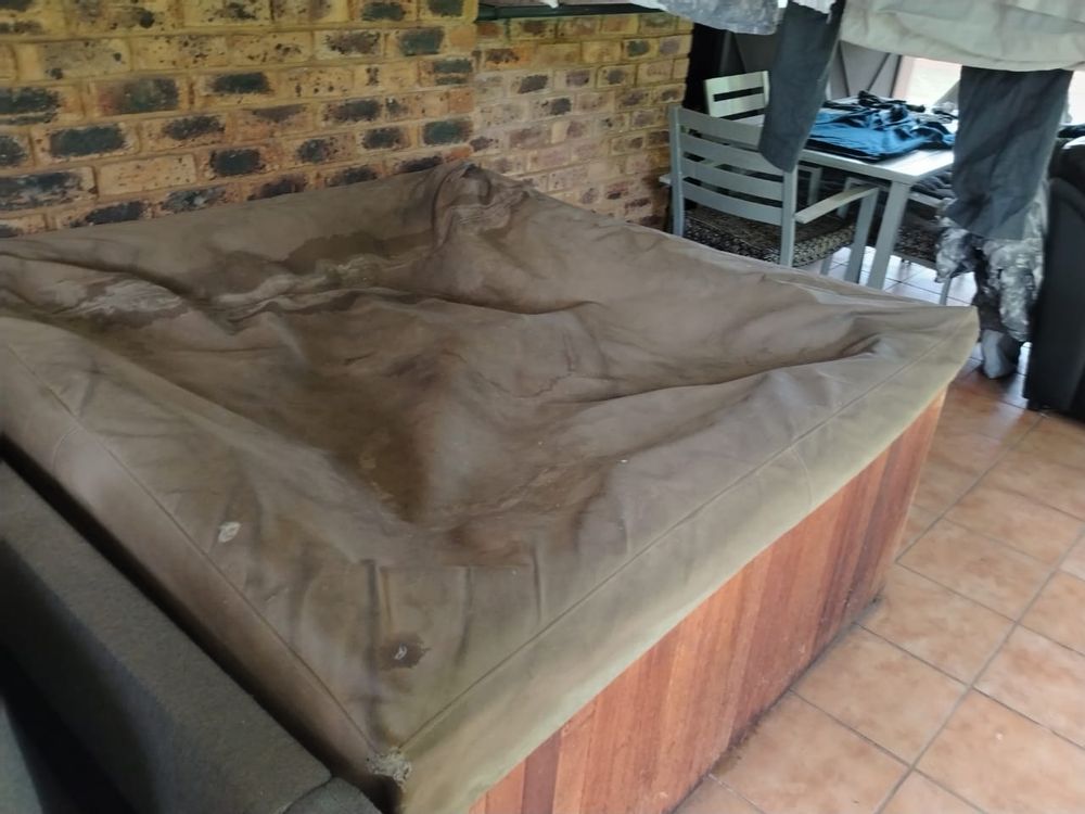 Entertainment room patio with built in bar, braai and jacuzzi. Very Spacious great entertainer with sliding doors open onto the garden and private pool.