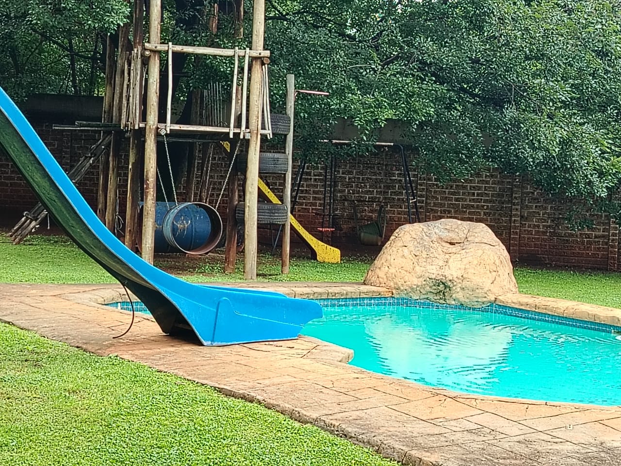 Excellent for larger families or families that enjoy spacious living. All this on a large open well set out manicured garden area of 1476m2 with a super crystal clear blue pool with slide and kiddies play ground jungle gym.