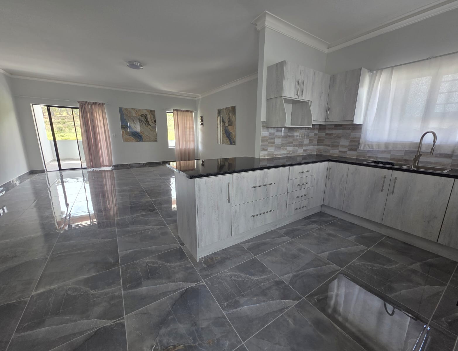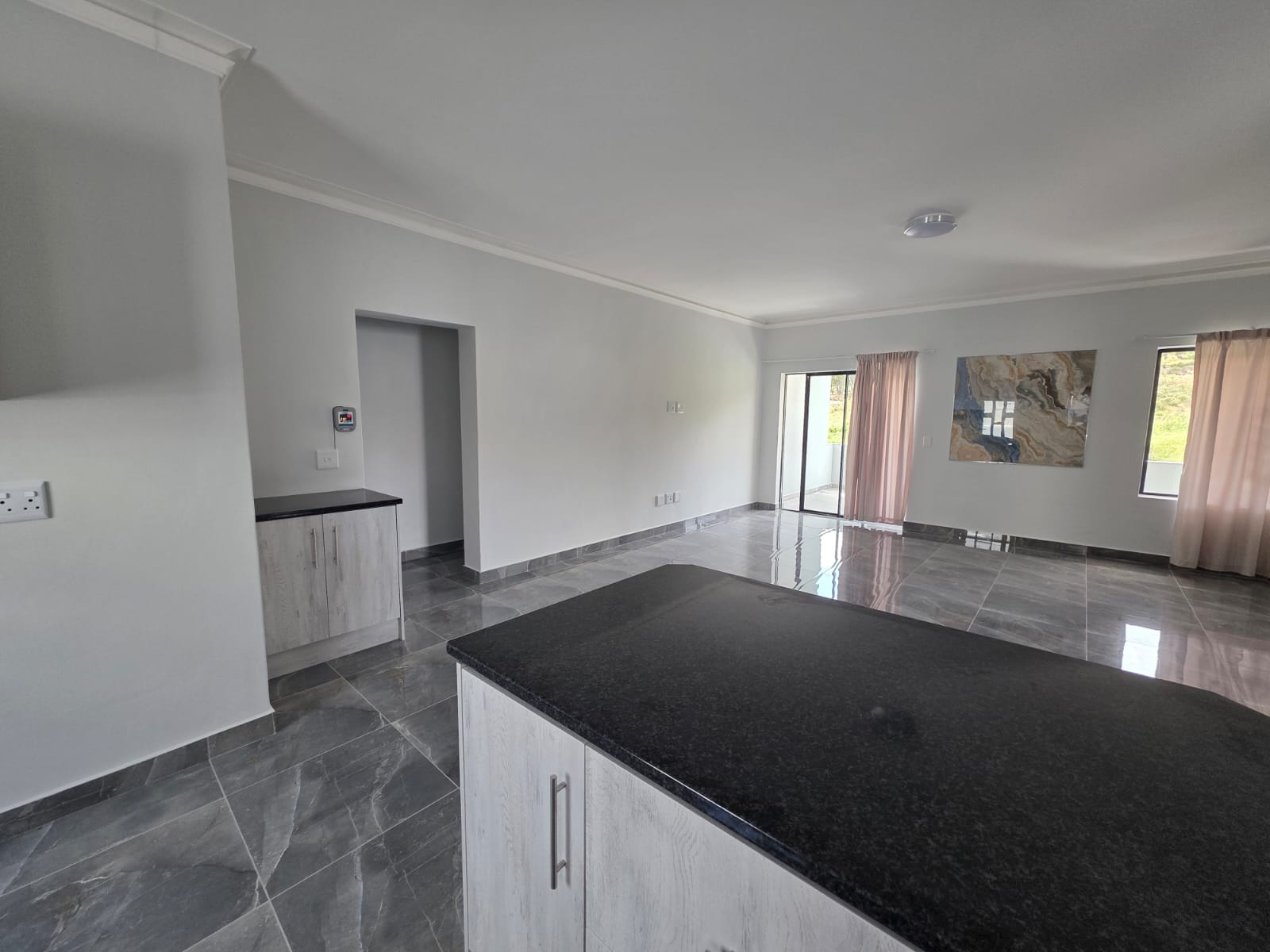 Step inside to a spacious open plan living and dining area that seamlessly flows into a beautifully designed kitchen with built-in oven, glass hob, extractor fan, plenty of cupboards and ample workspace. Sliding doors leading from the lounge open to a covered stoep with a built-in braai, ideal for unwinding, or simply enjoying the fresh country air.