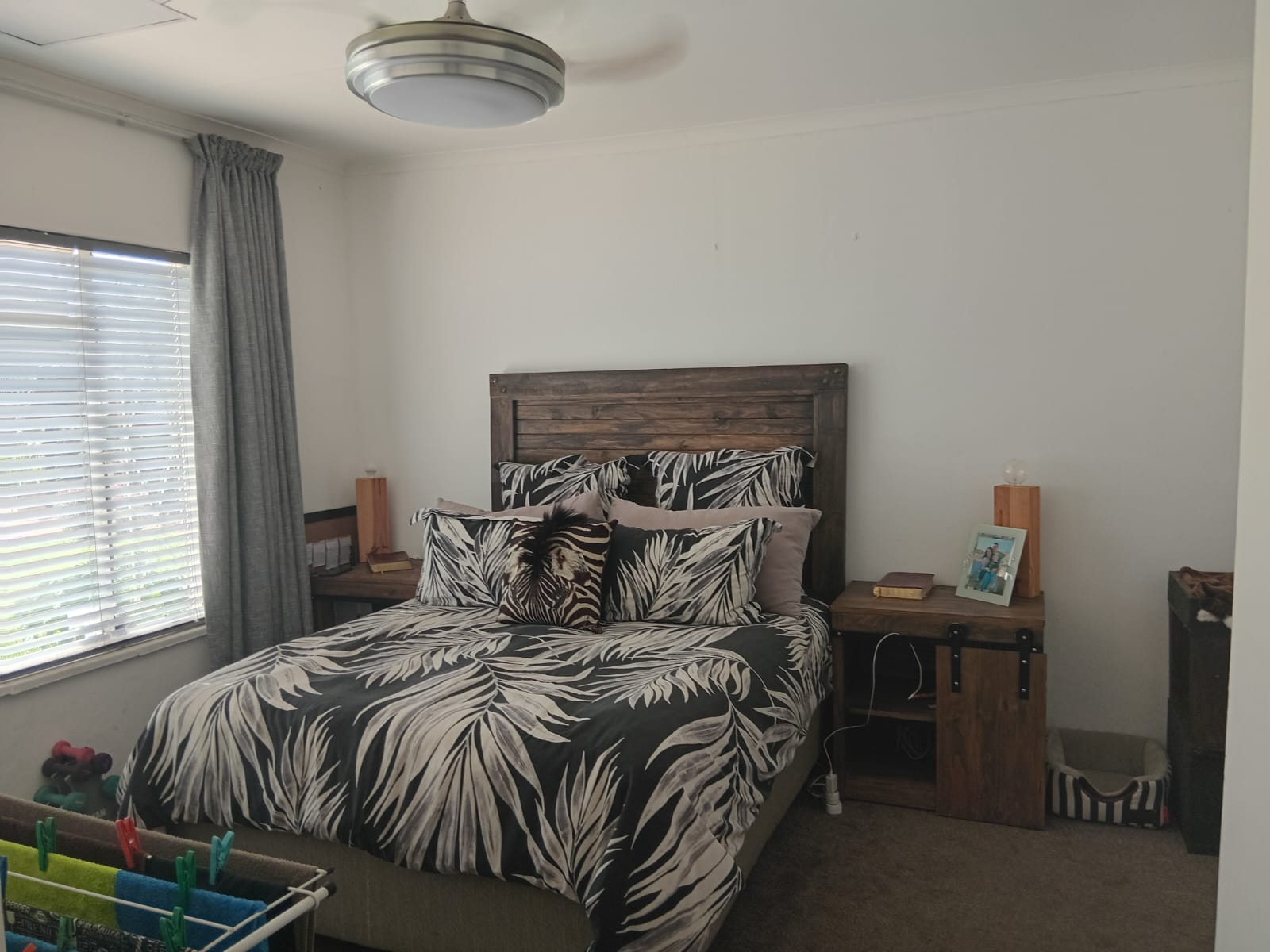 The back door opens onto a beautiful, large garden, with access to a swimming pool, lapa, and built-in braai, perfect for relaxed outdoor living and entertaining.