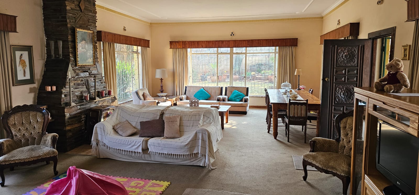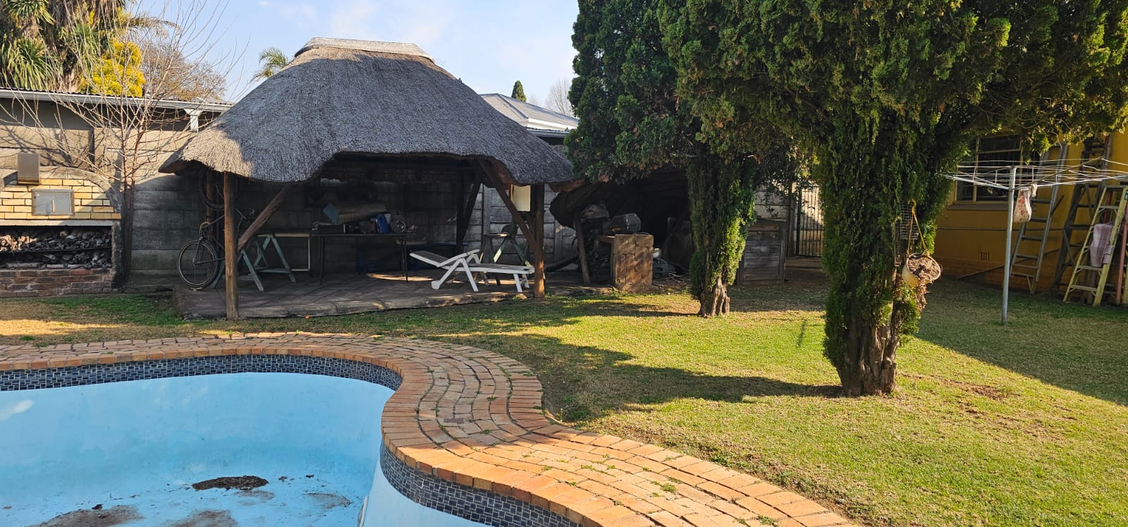 Outdoors, you’ll find a Lapa, buildin pizza stove and a pool—perfect for gatherings once restored. Parking is no issue with 3 garages and 2 carports. The property also includes flatlets, ideal for extended family, rental income, or home offices.