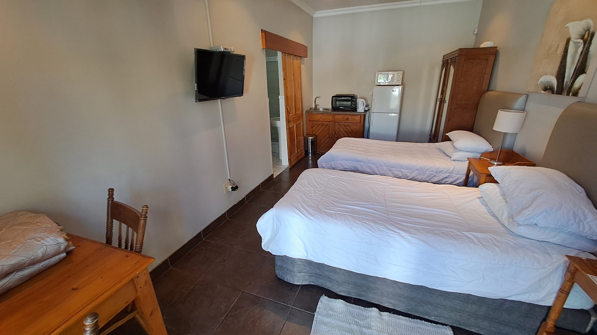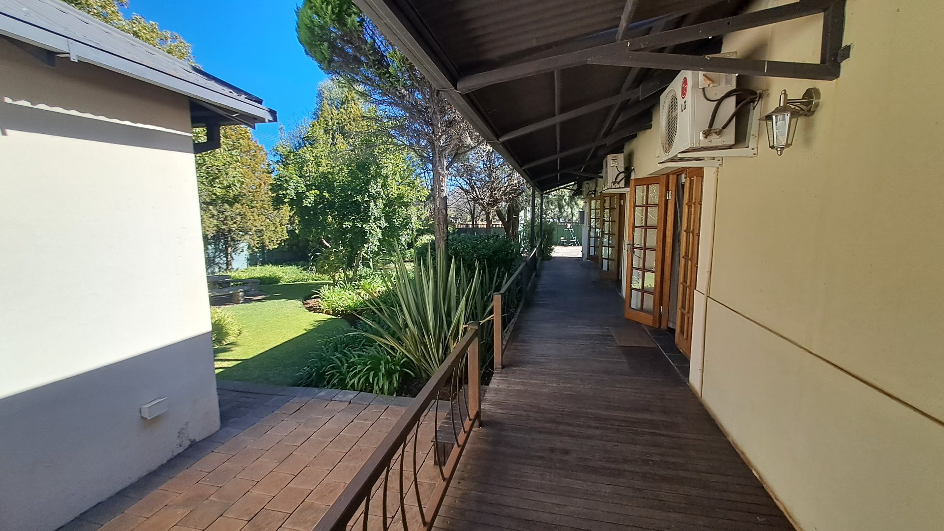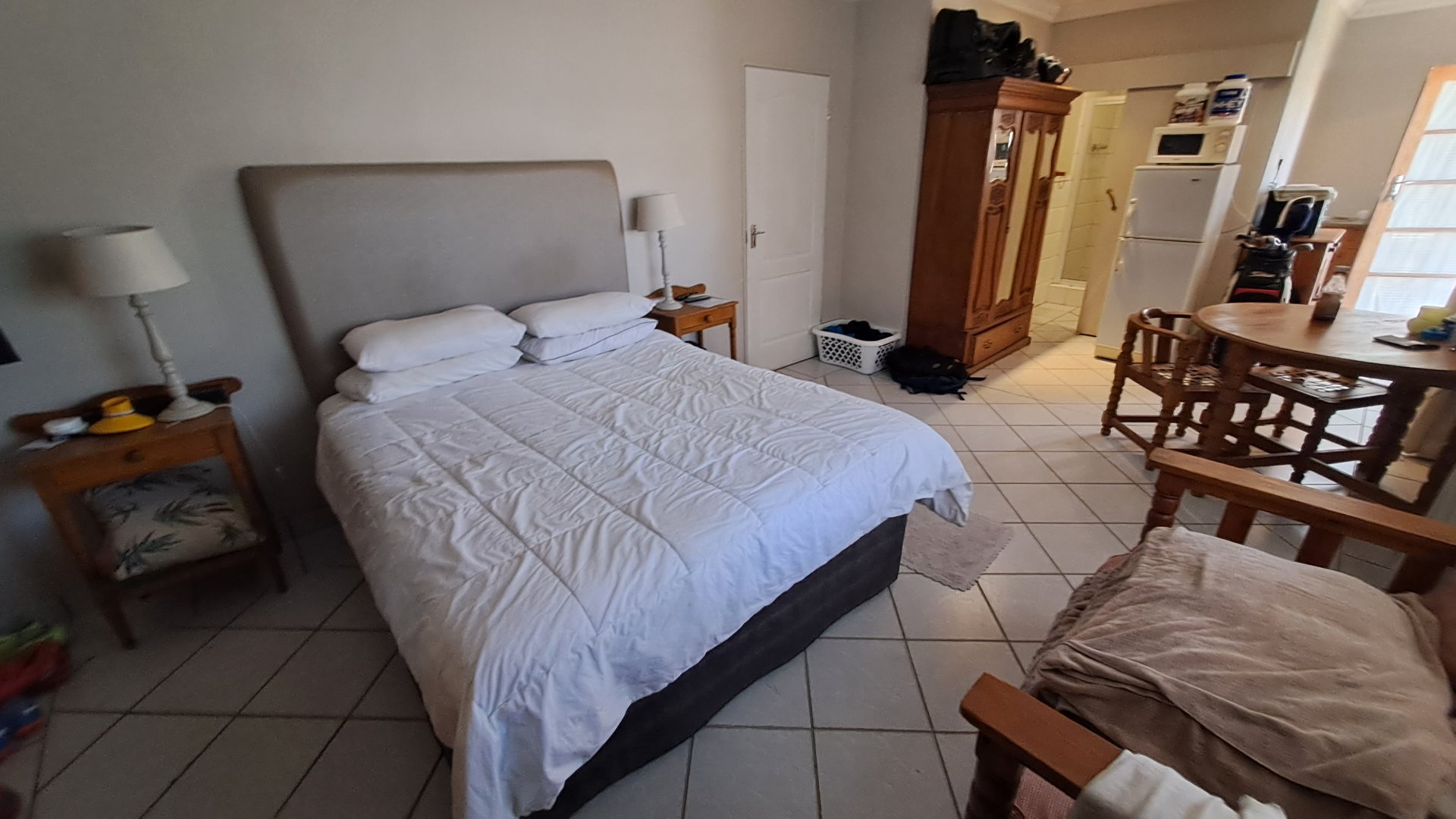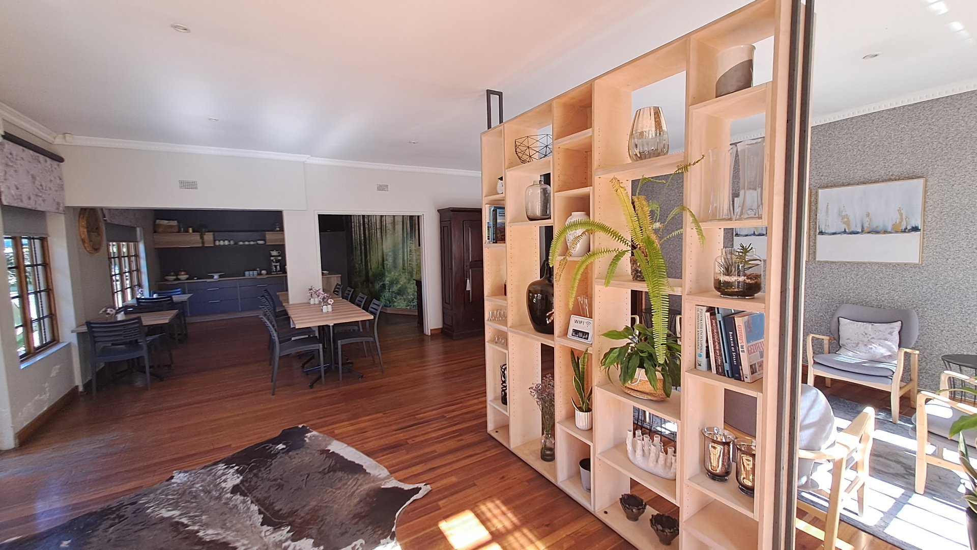 Towards the living room, you will find a passage leading to the first guest room (currently utilized for staff) and an additional five north-facing bedrooms. All rooms are thoughtfully furnished with comfort and space in mind. Each room opens onto a balcony overlooking a beautifully maintained water-wise garden, providing a tranquil space for guests to relax or enjoy a smoke break. For those who prefer a self-catering option, there is also a braai area in the garden.