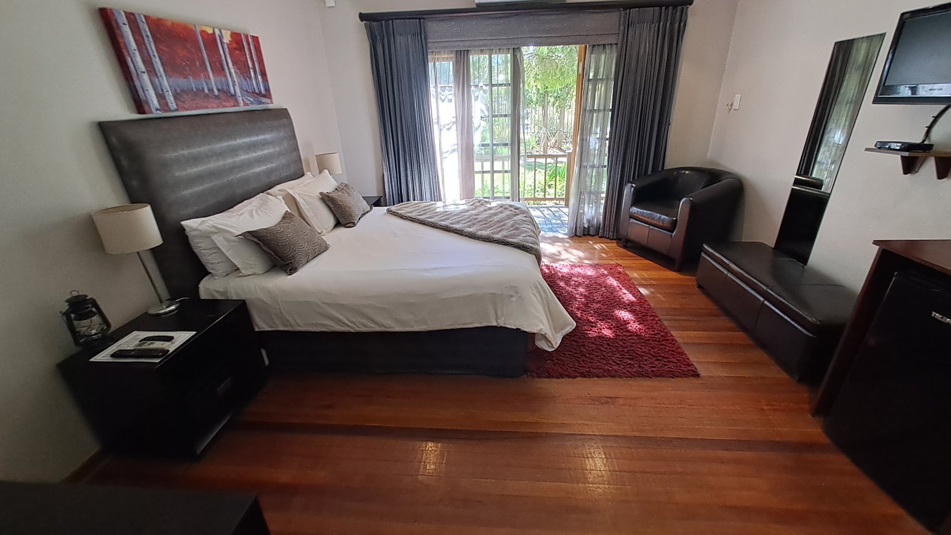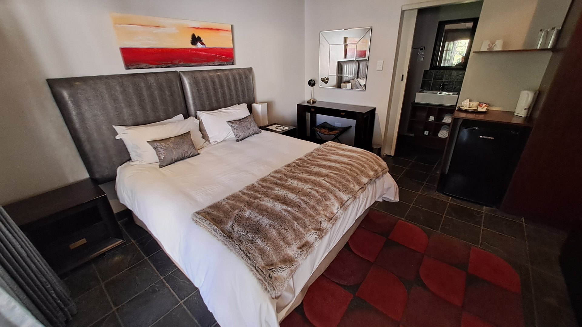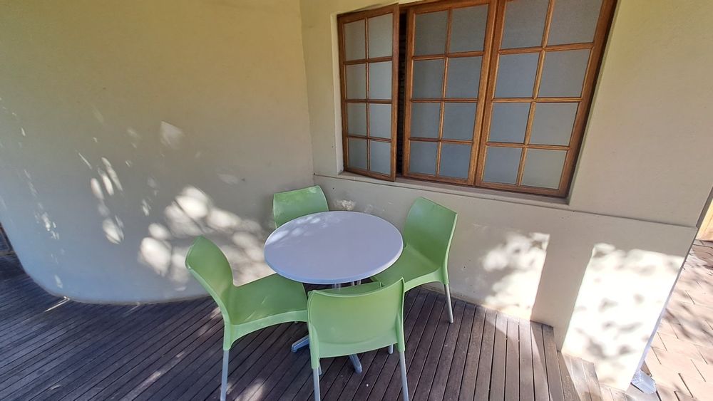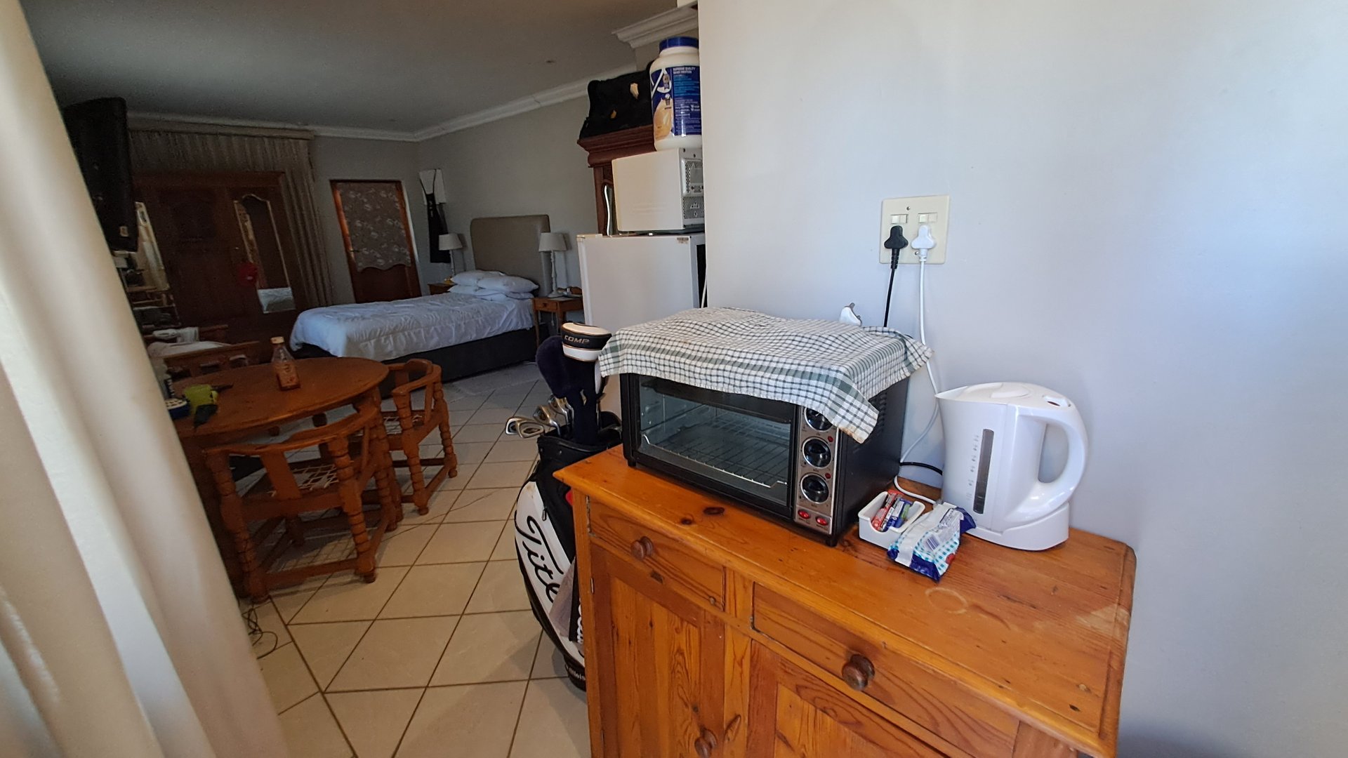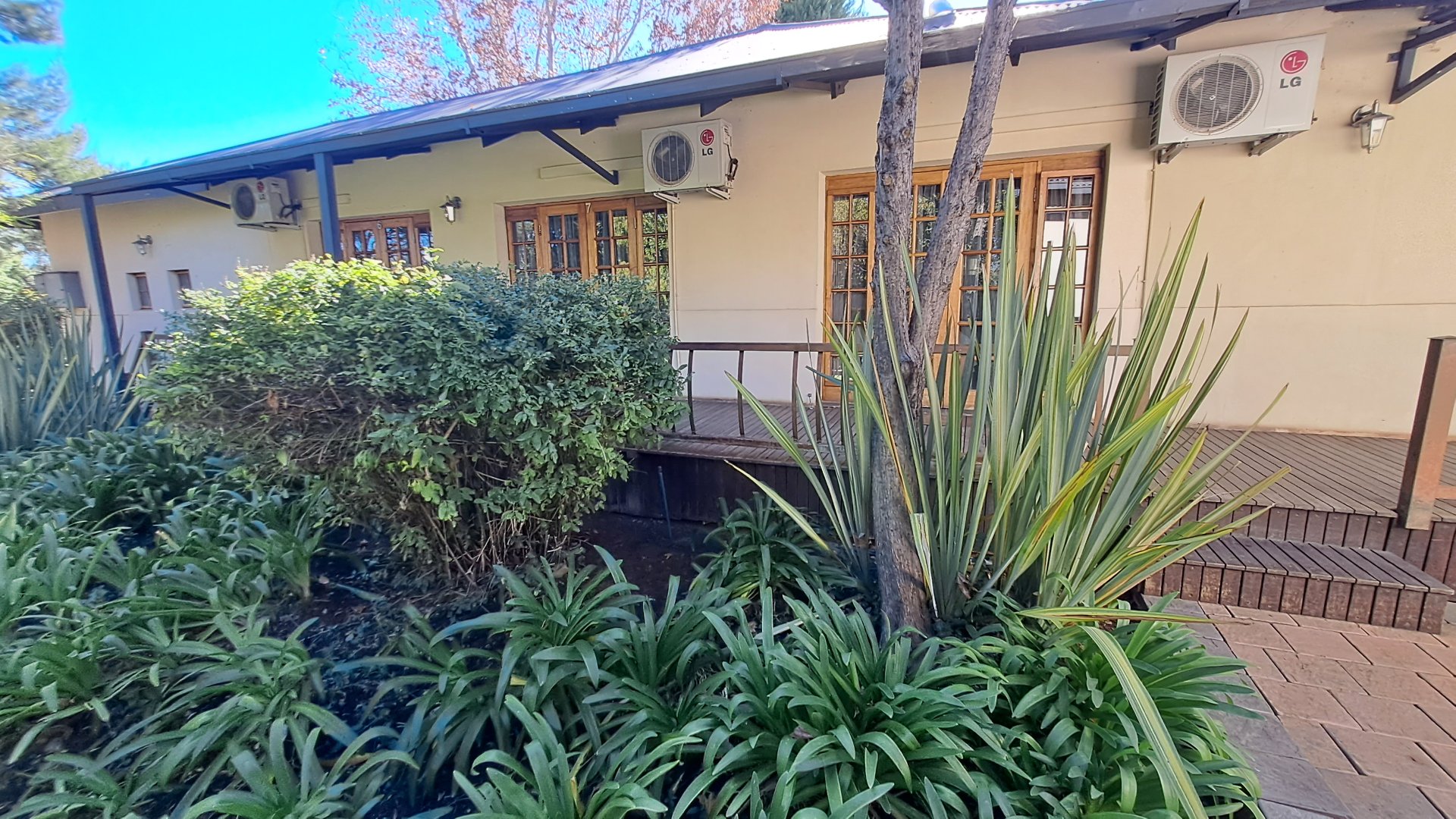 Towards the living room, you will find a passage leading to the first guest room (currently utilized for staff) and an additional five north-facing bedrooms. All rooms are thoughtfully furnished with comfort and space in mind. Each room opens onto a balcony overlooking a beautifully maintained water-wise garden, providing a tranquil space for guests to relax or enjoy a smoke break. For those who prefer a self-catering option, there is also a braai area in the garden.