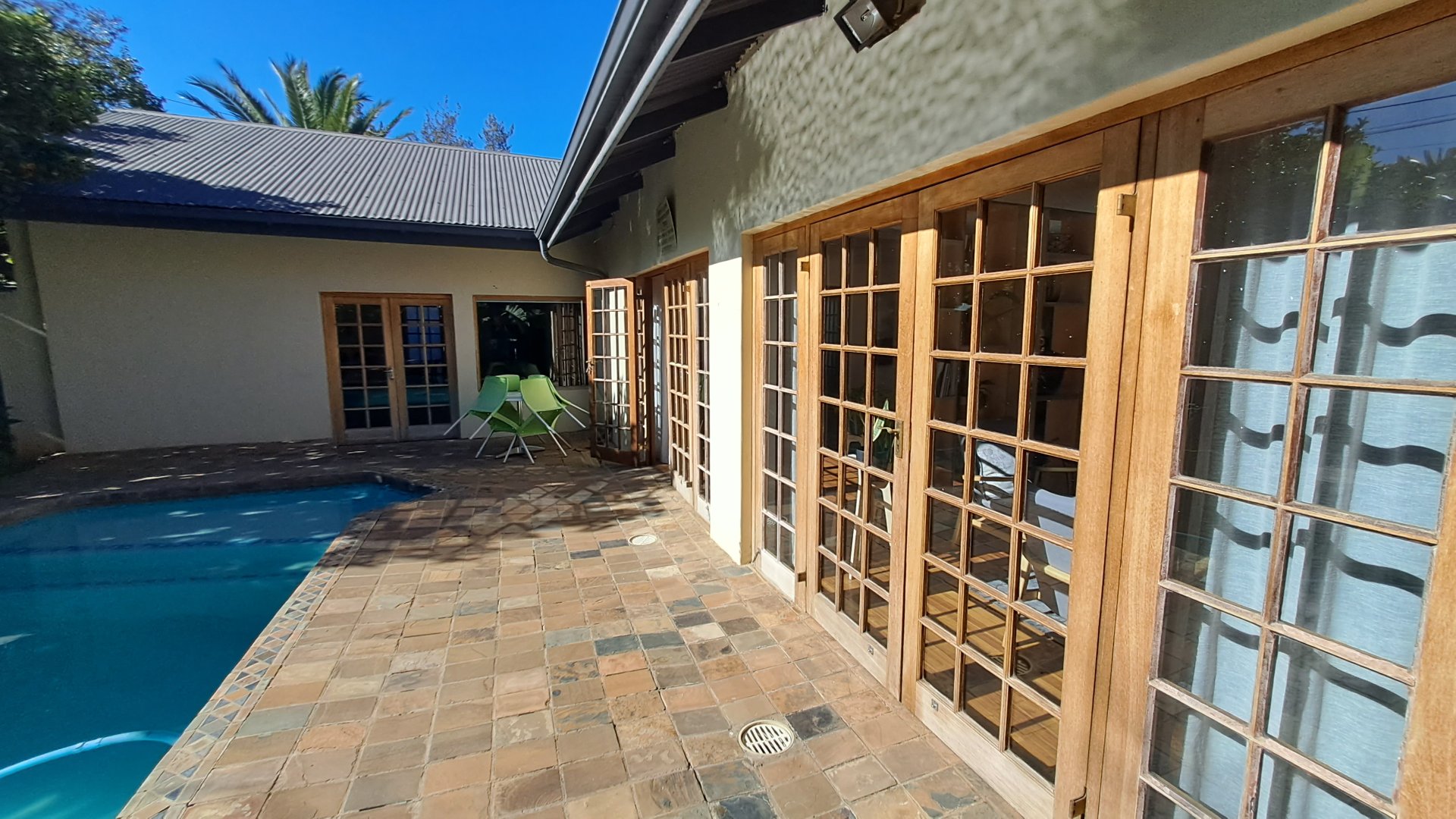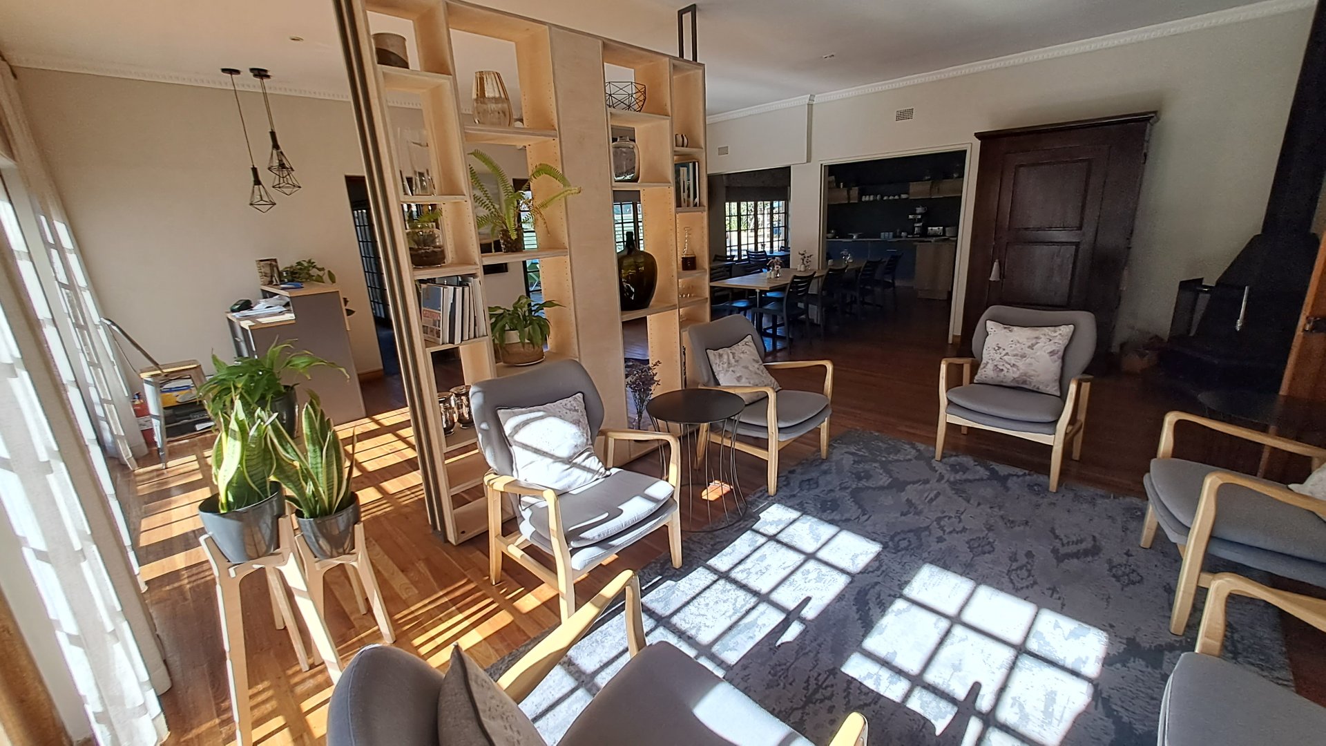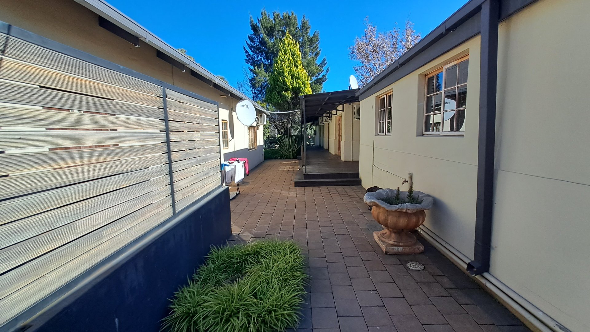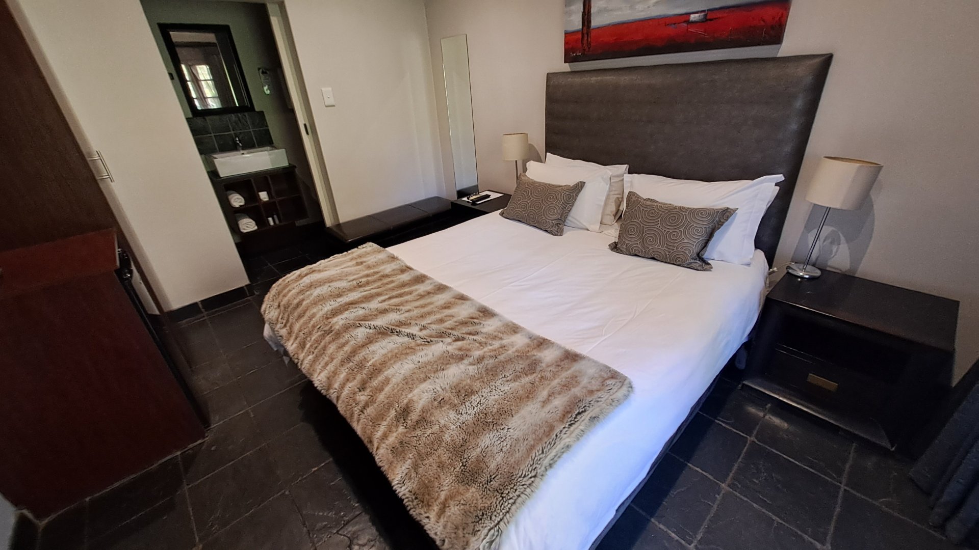 Towards the living room, you will find a passage leading to the first guest room (currently utilized for staff) and an additional five north-facing bedrooms. All rooms are thoughtfully furnished with comfort and space in mind. Each room opens onto a balcony overlooking a beautifully maintained water-wise garden, providing a tranquil space for guests to relax or enjoy a smoke break. For those who prefer a self-catering option, there is also a braai area in the garden.