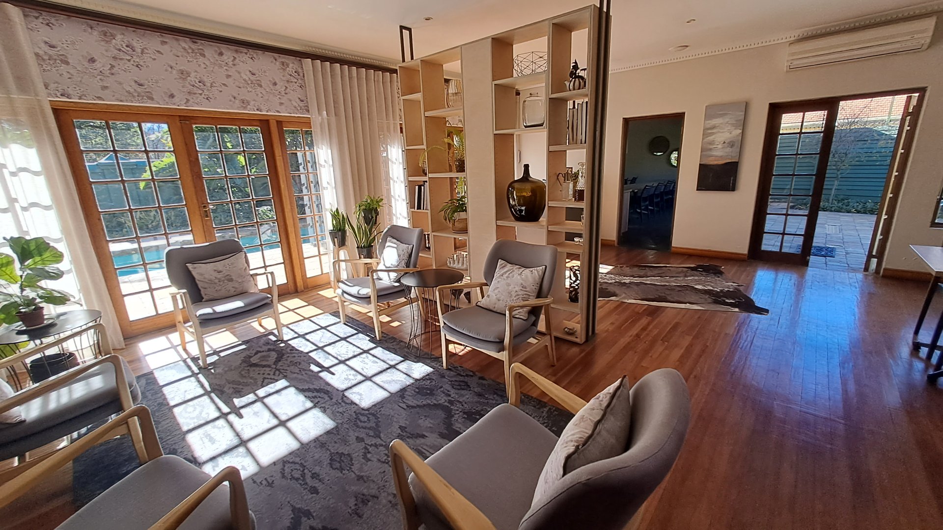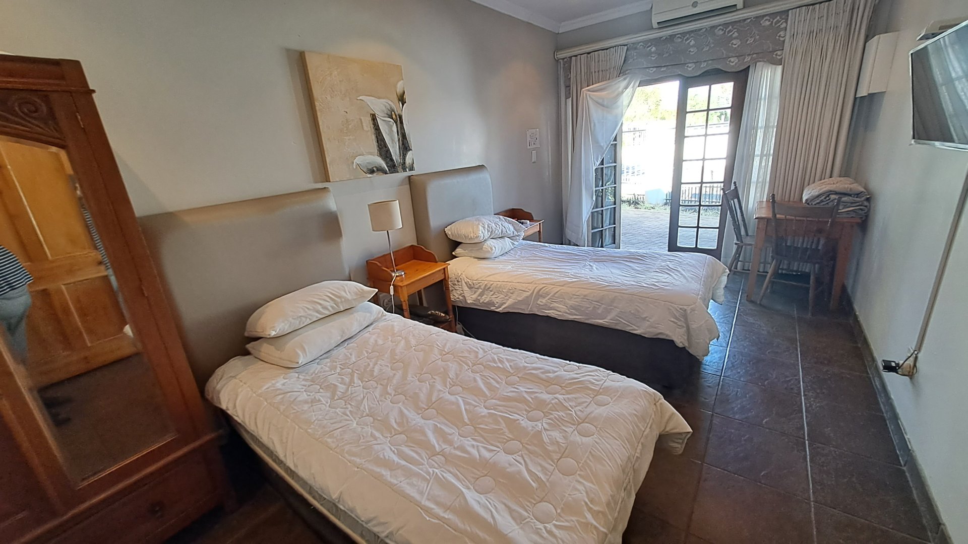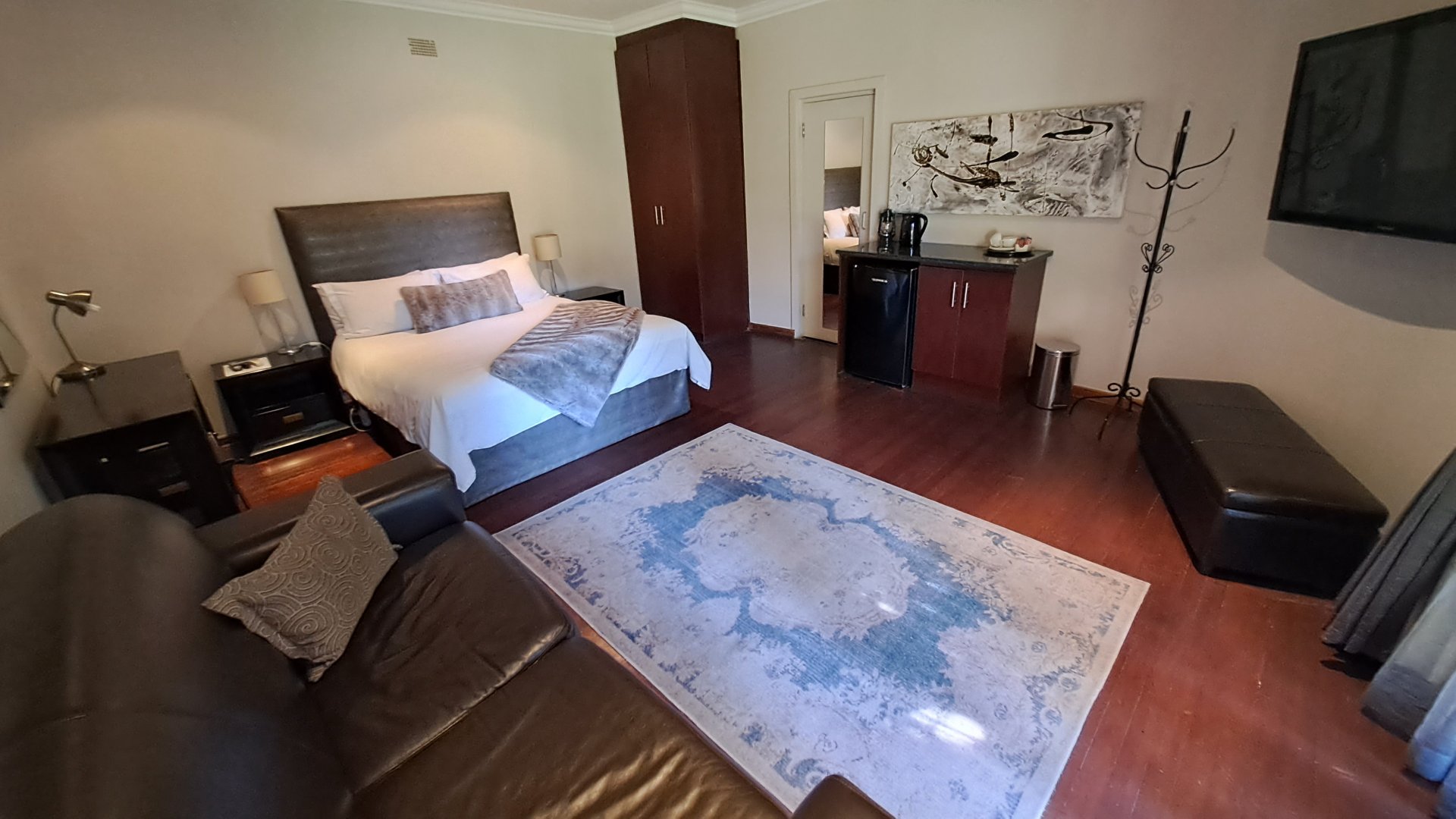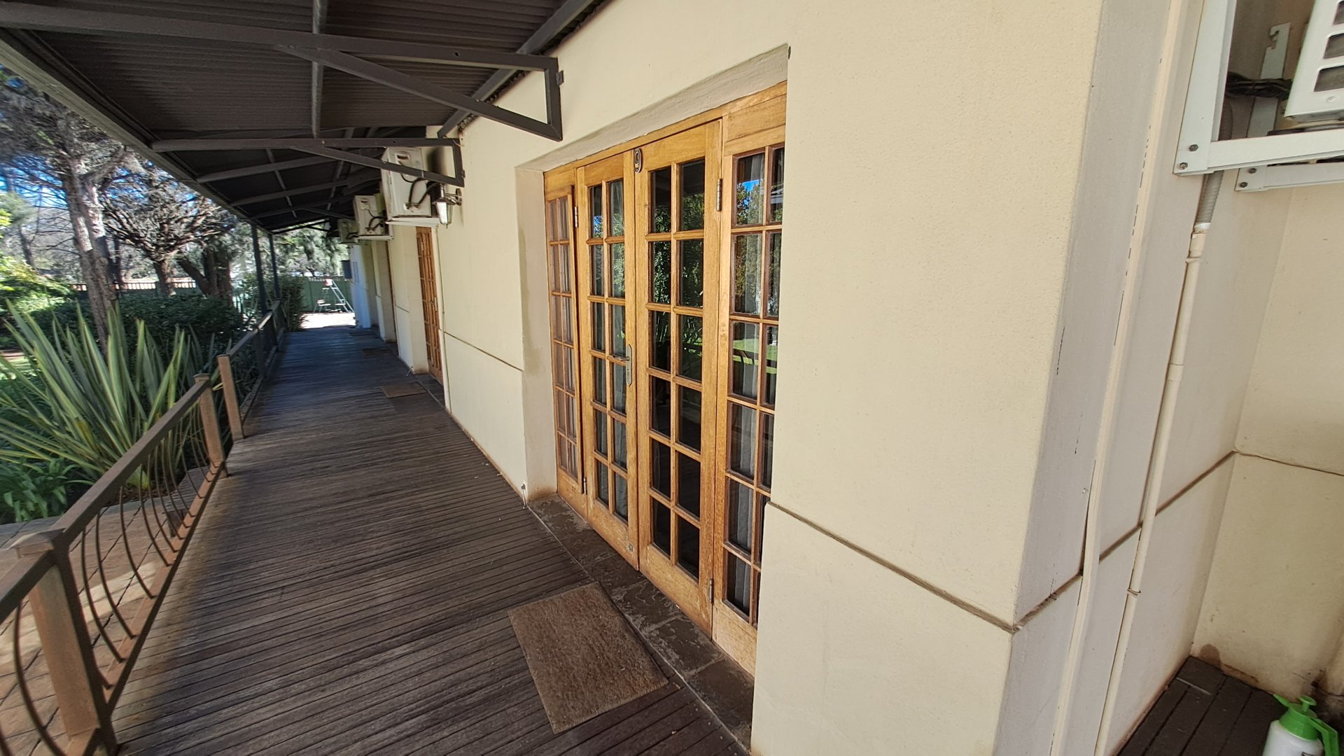 Towards the living room, you will find a passage leading to the first guest room (currently utilized for staff) and an additional five north-facing bedrooms. All rooms are thoughtfully furnished with comfort and space in mind. Each room opens onto a balcony overlooking a beautifully maintained water-wise garden, providing a tranquil space for guests to relax or enjoy a smoke break. For those who prefer a self-catering option, there is also a braai area in the garden.