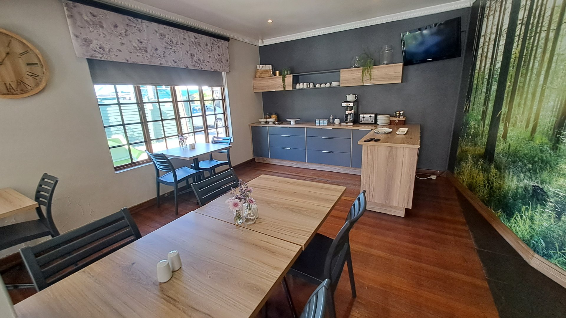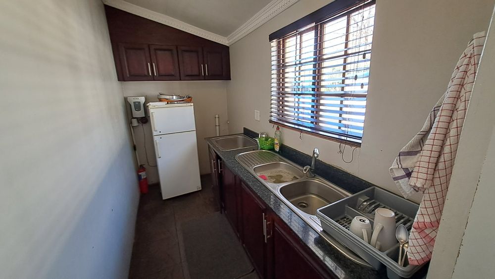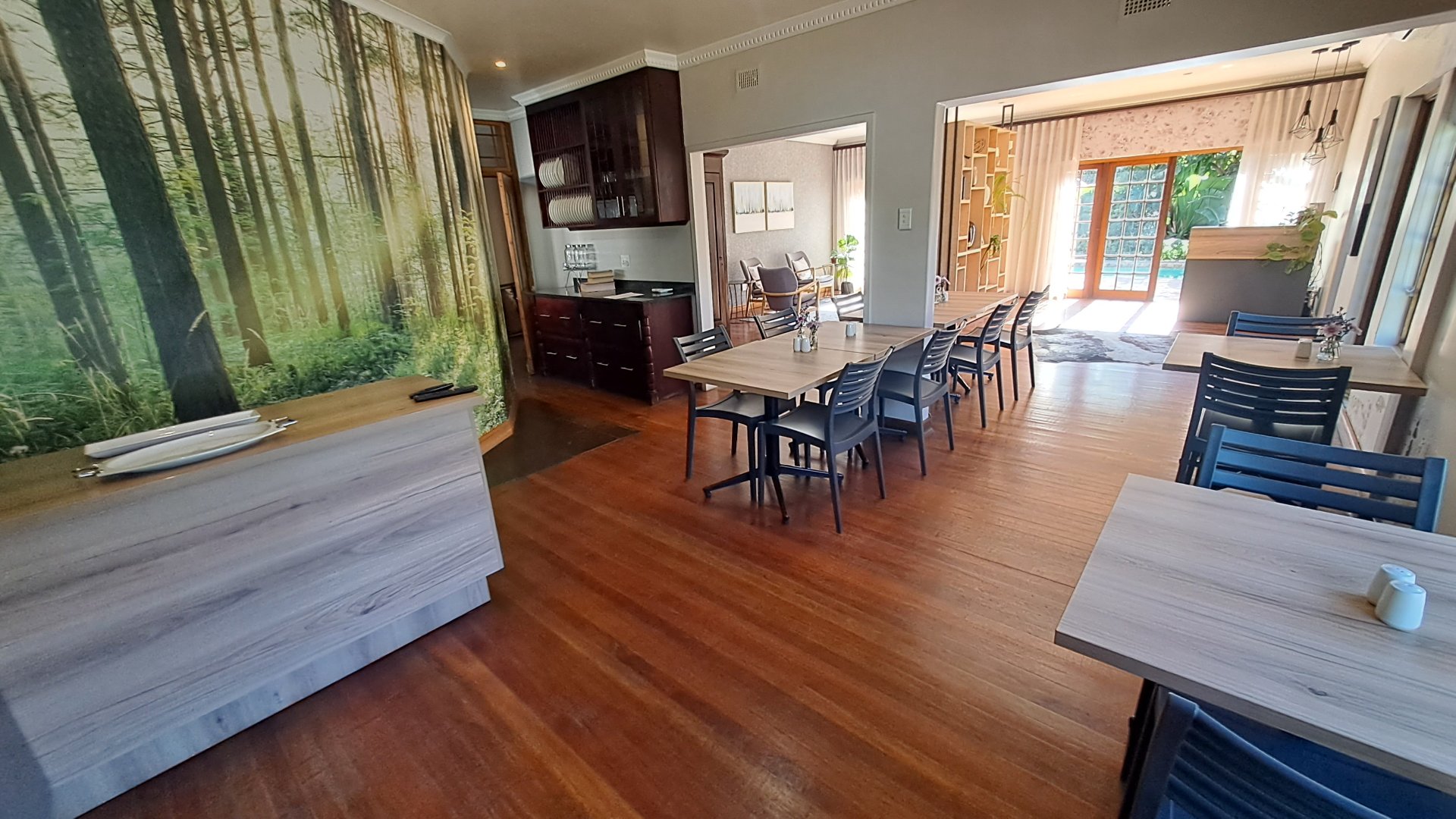 The main building offers a welcoming open-plan reception area/living room with direct access to the outdoor pool area. Connected to the living room is a spacious dining room, adjacent fully-equipped kitchen, ideal for preparing delicious meals to delight your guests. The kitchen features catering equipment, an electrical stove, and a loose-standing gas stove. It also includes a scullery with access to the adjacent guest rooms, separate guest units (four self-catering units), laundry facilities, and separate male and female guest toilets.