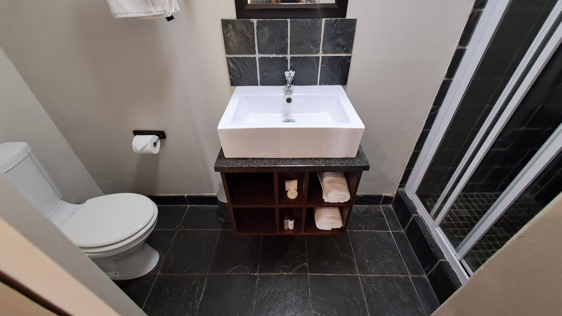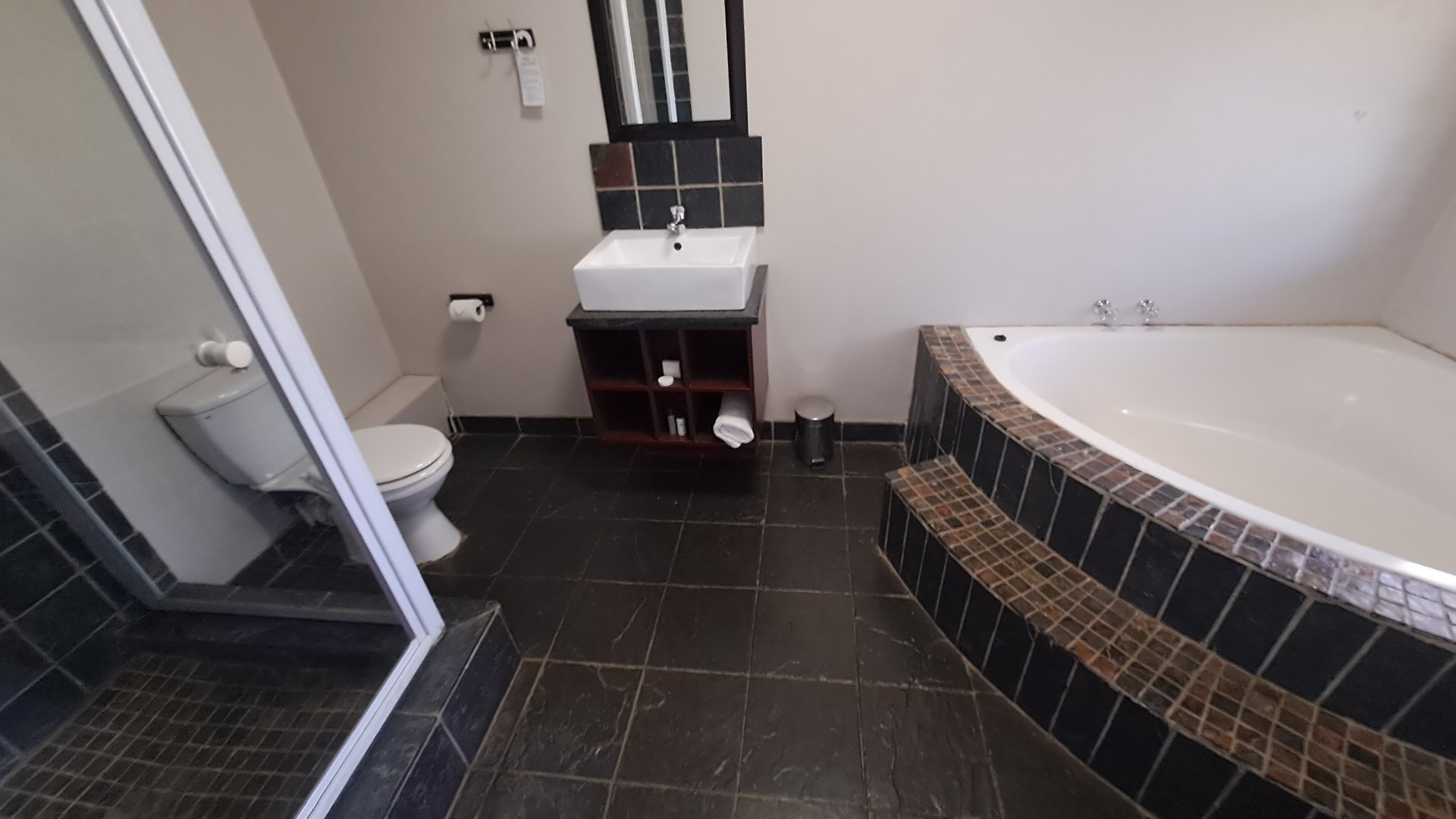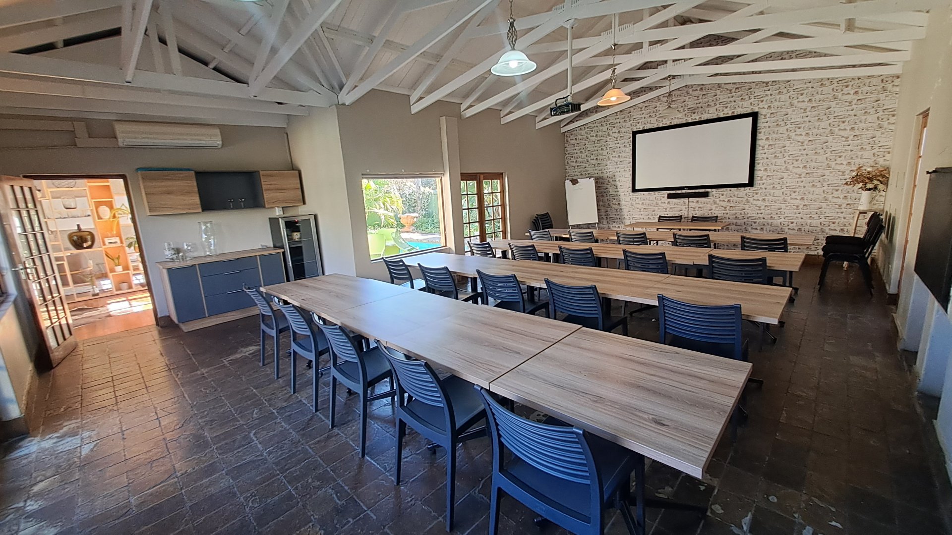 The main building offers a welcoming open-plan reception area/living room with direct access to the outdoor pool area. Connected to the living room is a spacious dining room, adjacent fully-equipped kitchen, ideal for preparing delicious meals to delight your guests. The kitchen features catering equipment, an electrical stove, and a loose-standing gas stove. It also includes a scullery with access to the adjacent guest rooms, separate guest units (four self-catering units), laundry facilities, and separate male and female guest toilets.