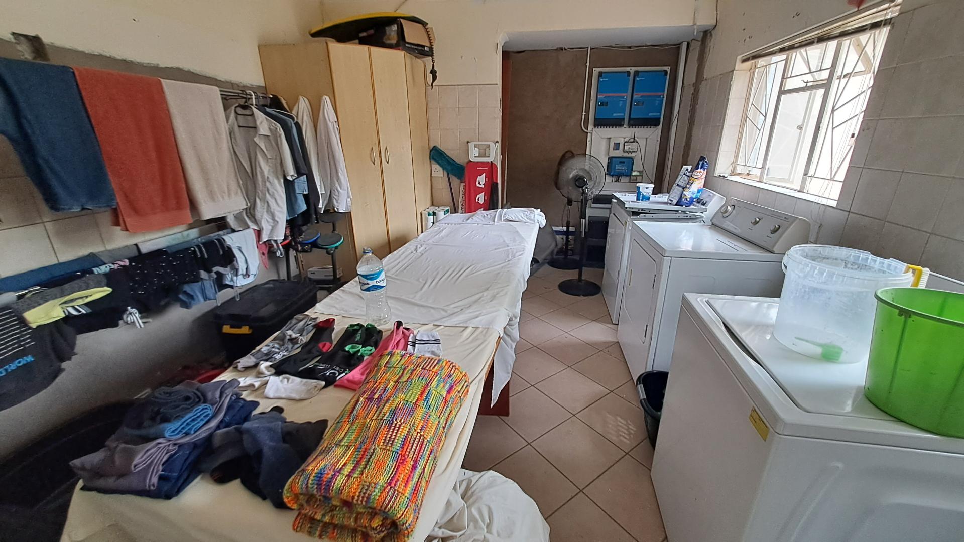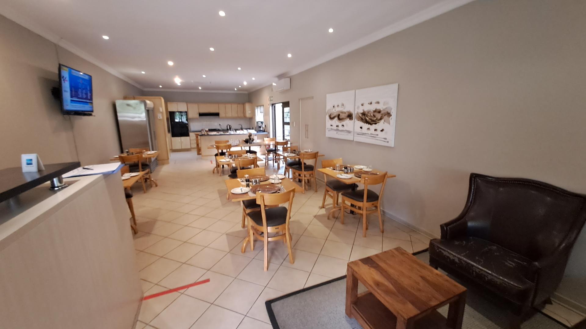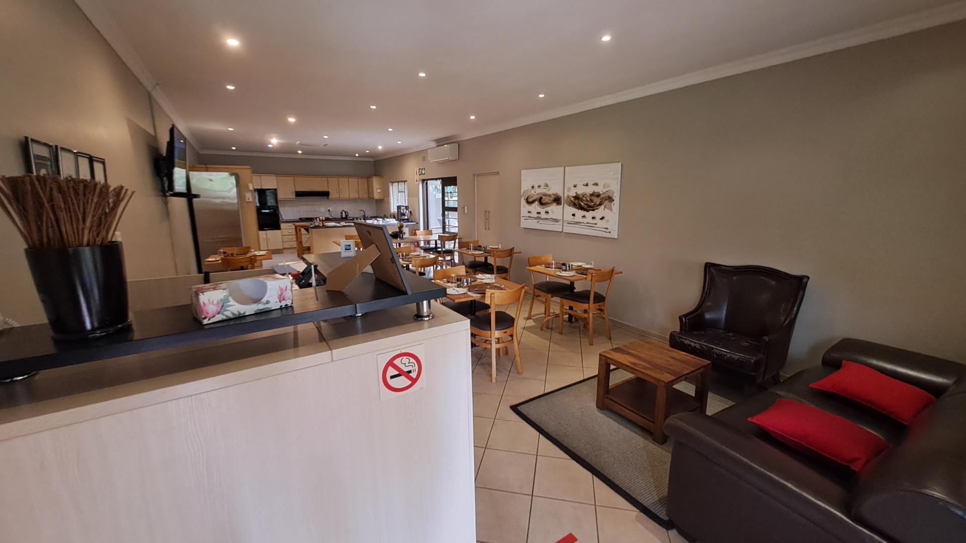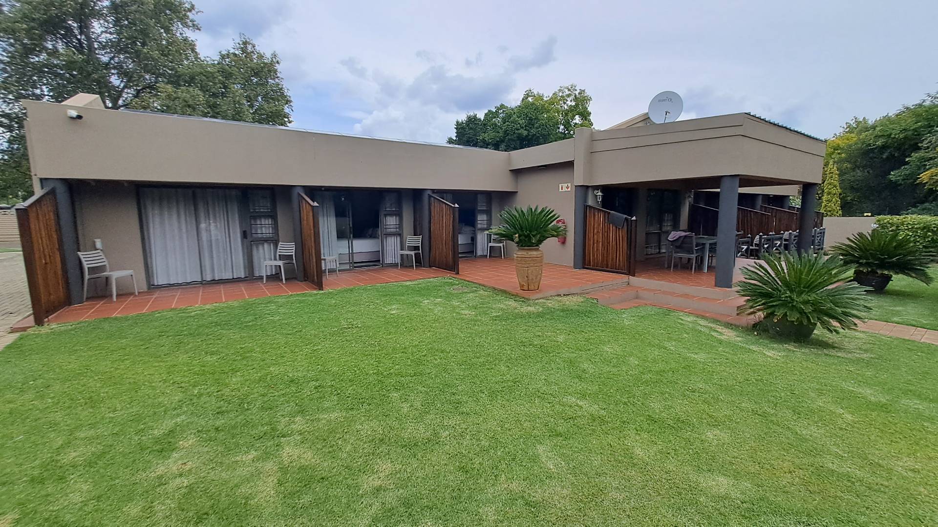 The 10 rooms come with built-in cupboards and en-suite bathrooms, and each room has a front door that opens up to a panoramic view of a lush green garden. There is also a reception counter, open plan dining room and kitchen, and a fully equipped laundry room. A solar system is included to run lights and plugs, while furniture is excluded but is negotiable. Prepaid electricity meter.