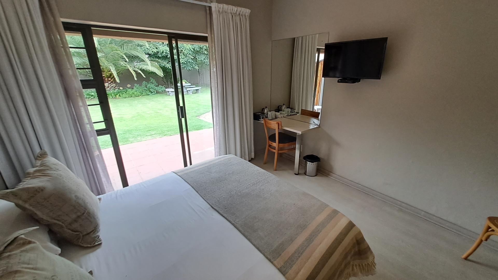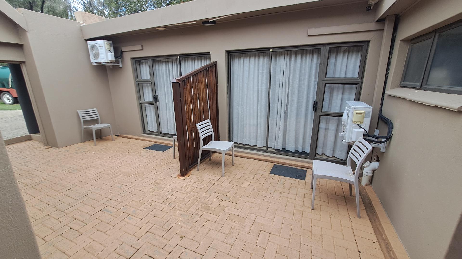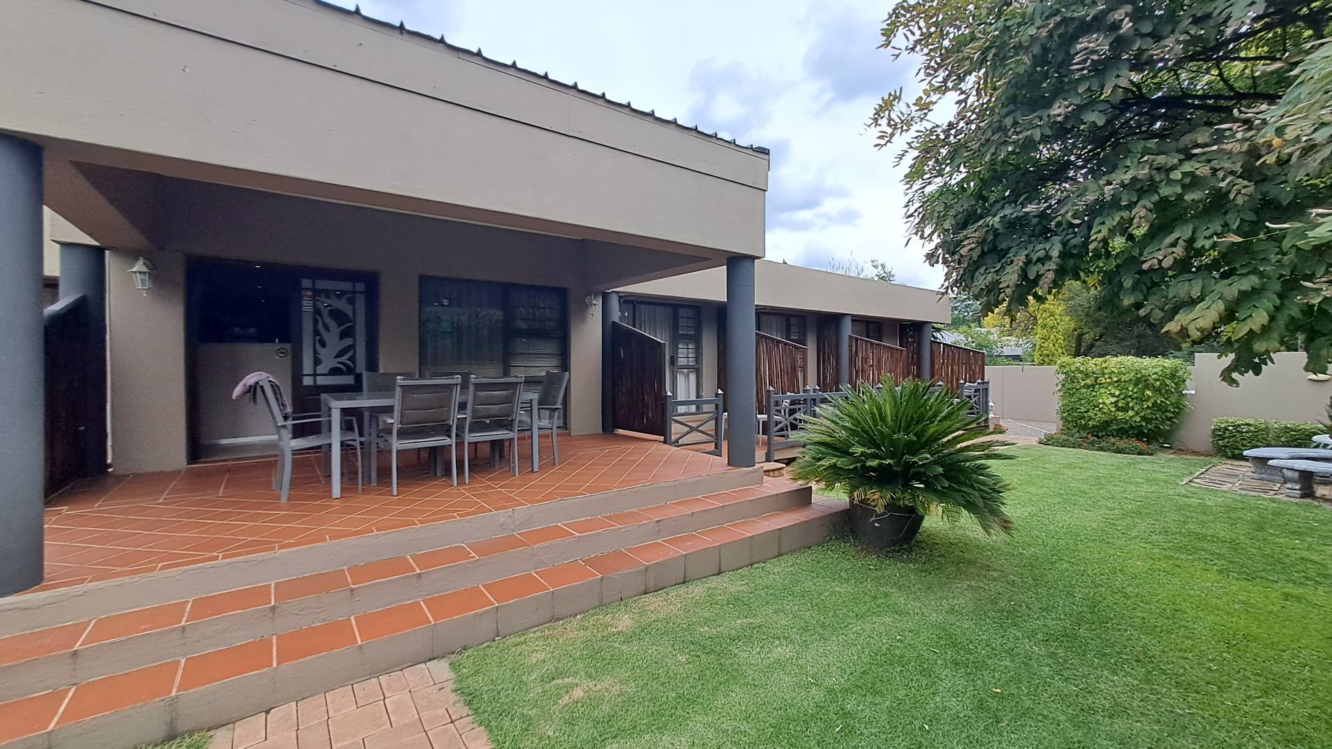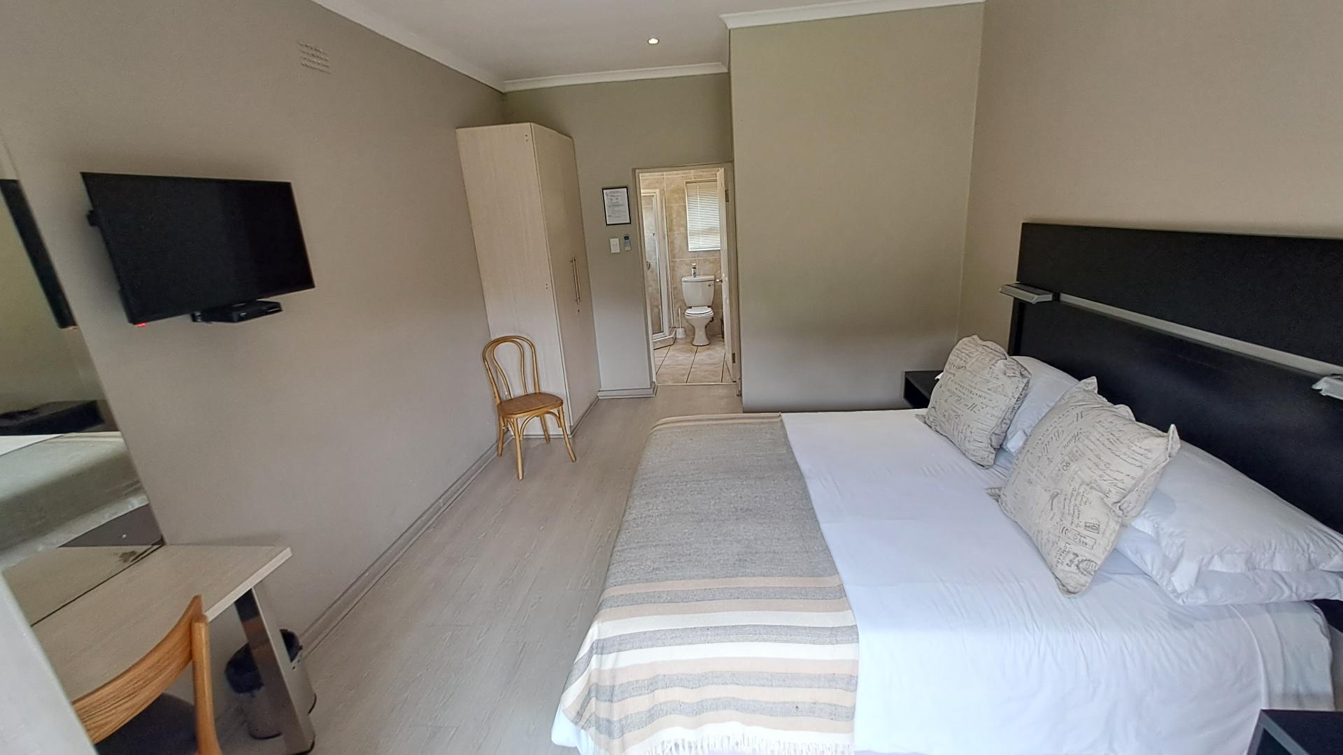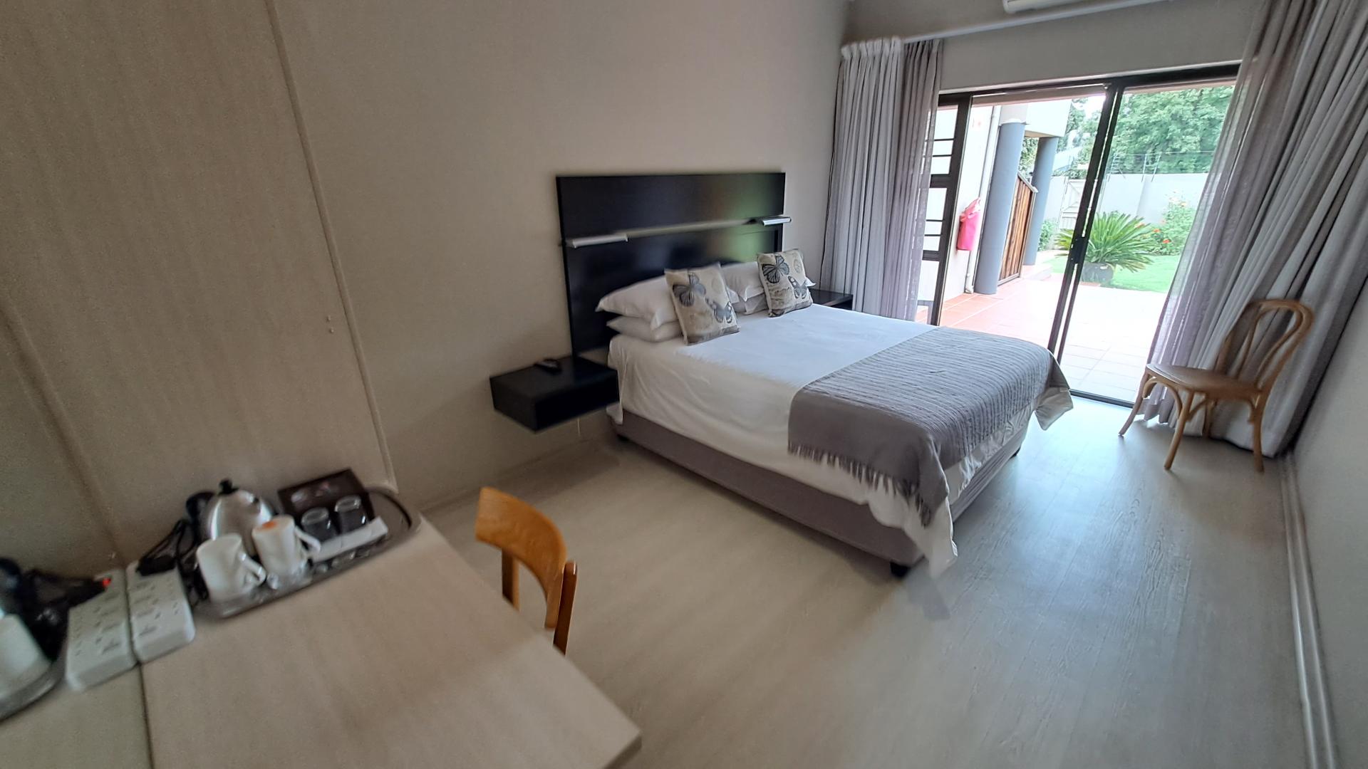 The 10 rooms come with built-in cupboards and en-suite bathrooms, and each room has a front door that opens up to a panoramic view of a lush green garden. There is also a reception counter, open plan dining room and kitchen, and a fully equipped laundry room. A solar system is included to run lights and plugs, while furniture is excluded but is negotiable. Prepaid electricity meter.