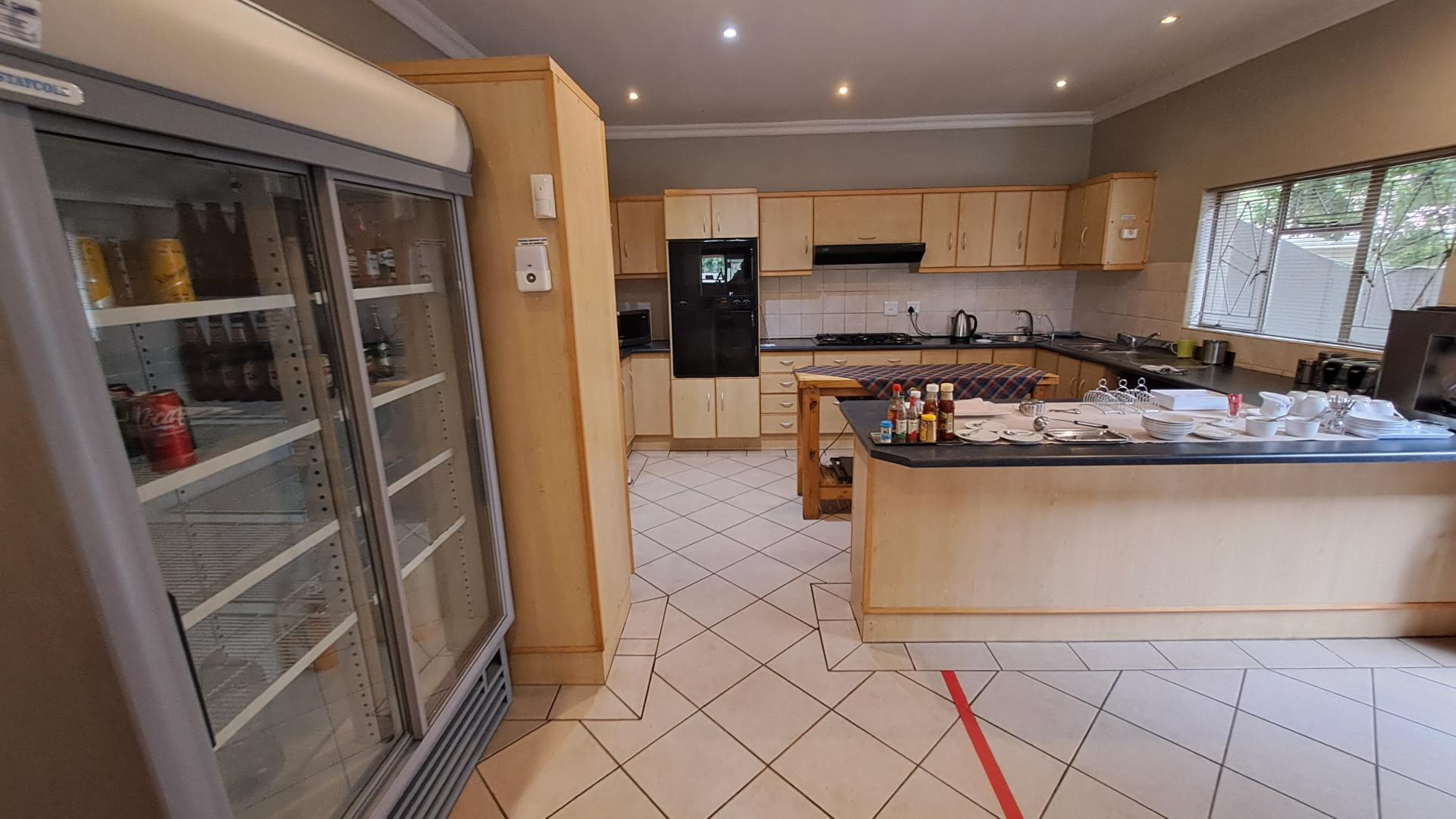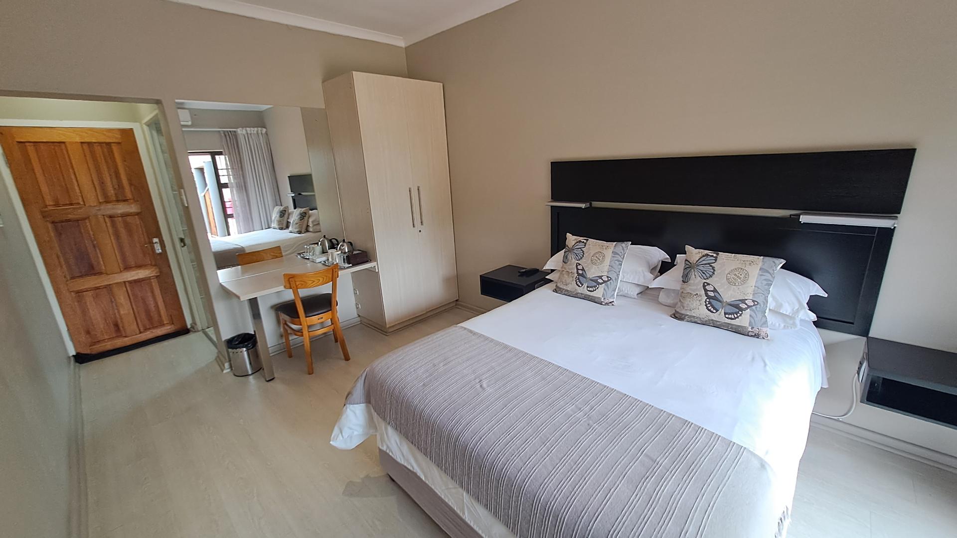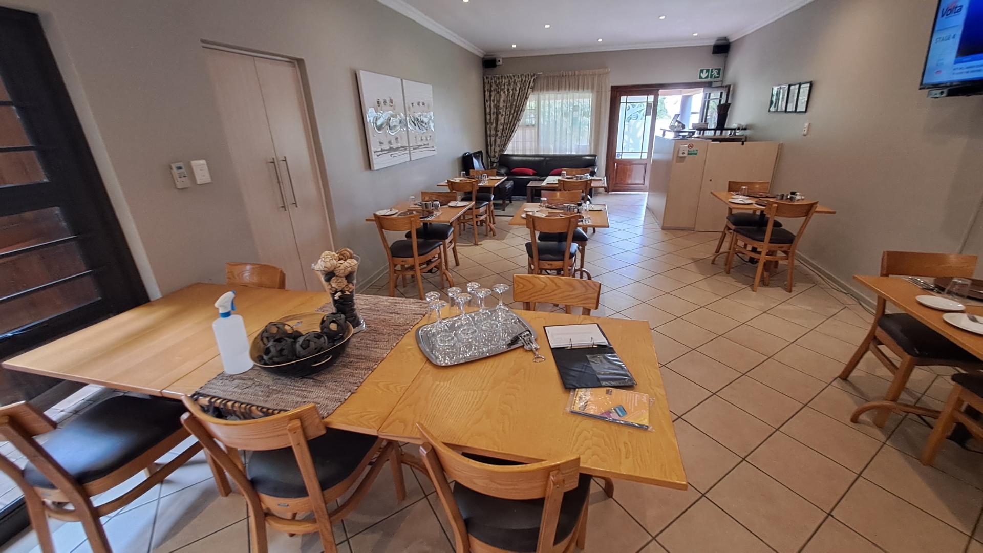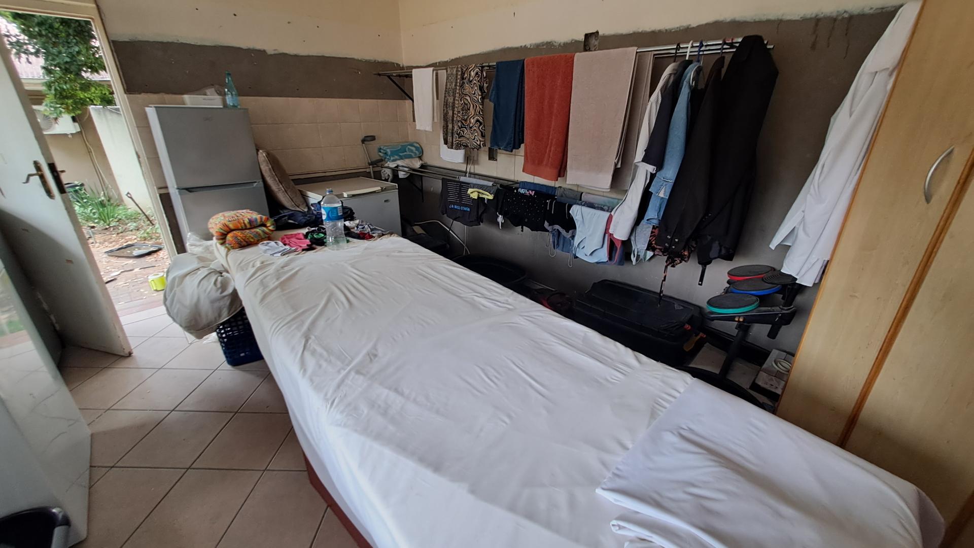 The 10 rooms come with built-in cupboards and en-suite bathrooms, and each room has a front door that opens up to a panoramic view of a lush green garden. There is also a reception counter, open plan dining room and kitchen, and a fully equipped laundry room. A solar system is included to run lights and plugs, while furniture is excluded but is negotiable. Prepaid electricity meter.