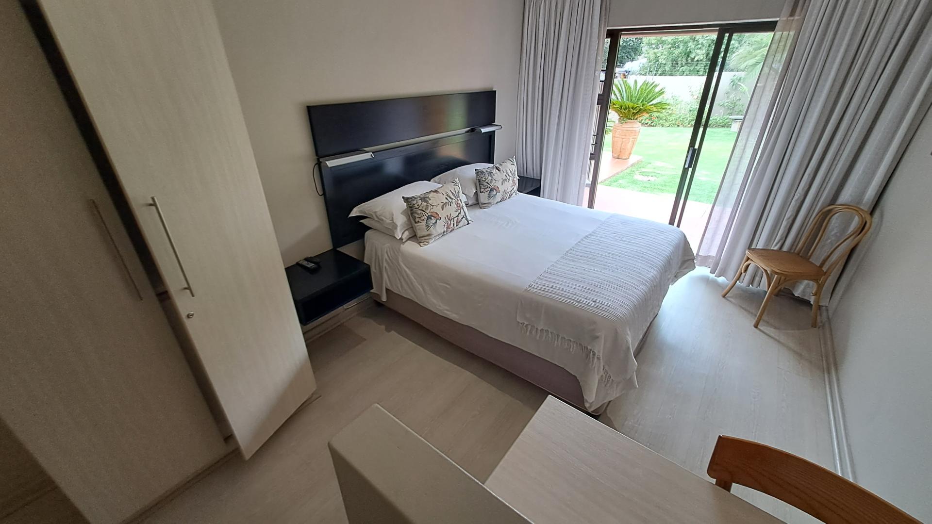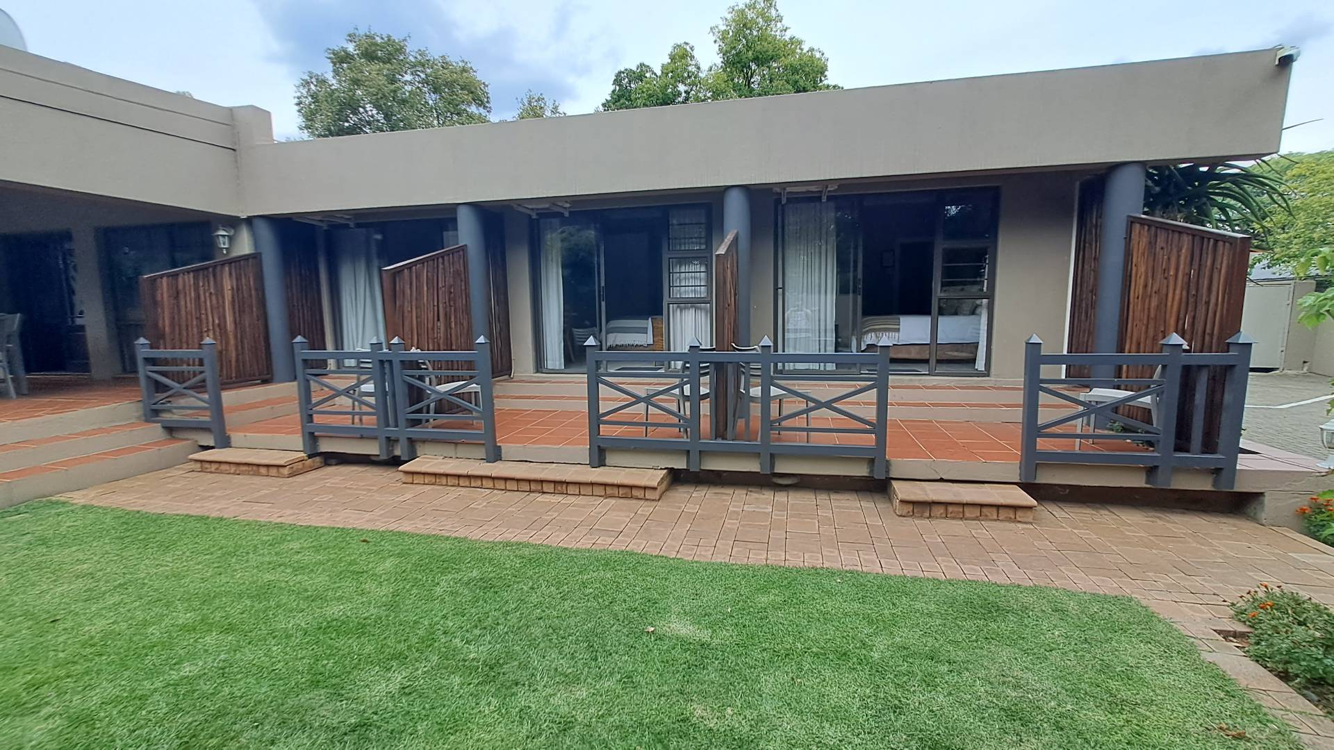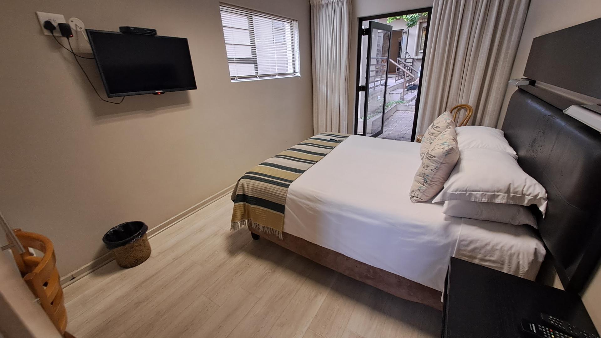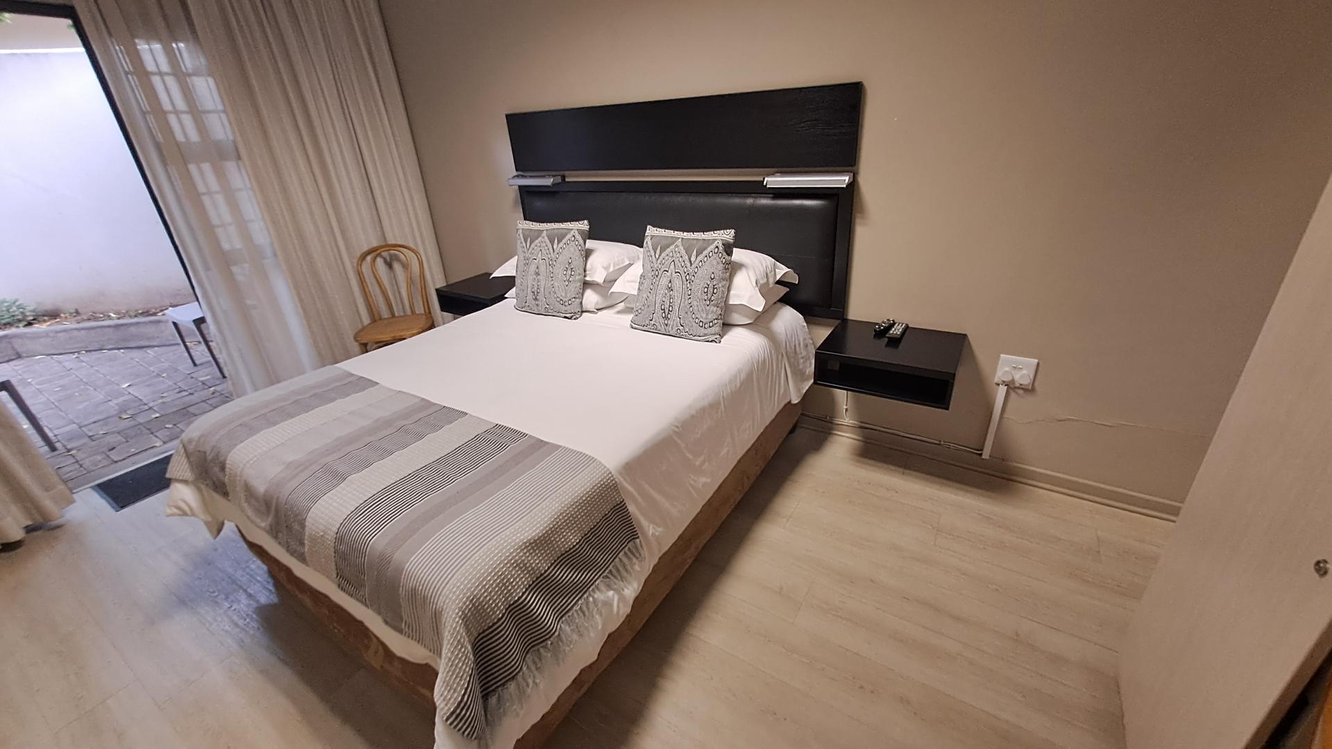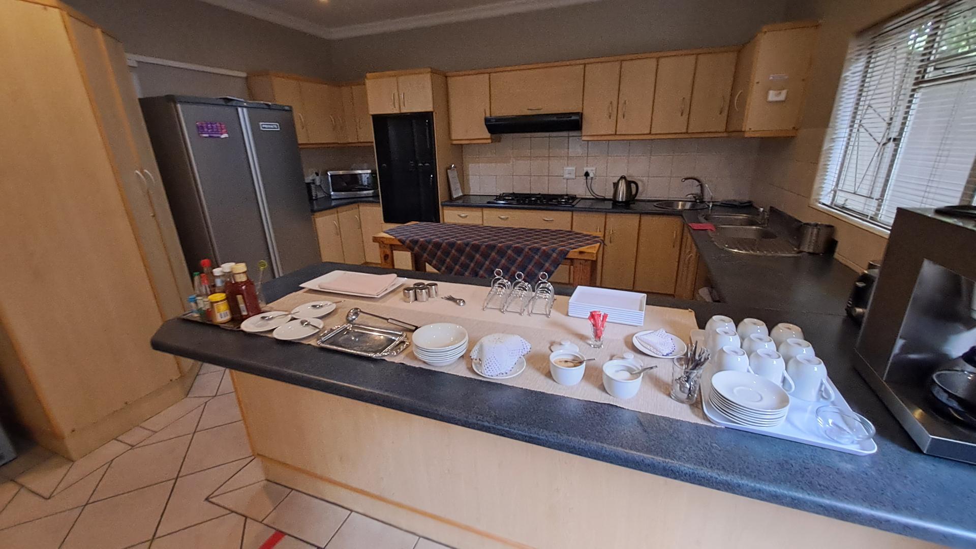 The 10 rooms come with built-in cupboards and en-suite bathrooms, and each room has a front door that opens up to a panoramic view of a lush green garden. There is also a reception counter, open plan dining room and kitchen, and a fully equipped laundry room. A solar system is included to run lights and plugs, while furniture is excluded but is negotiable. Prepaid electricity meter.