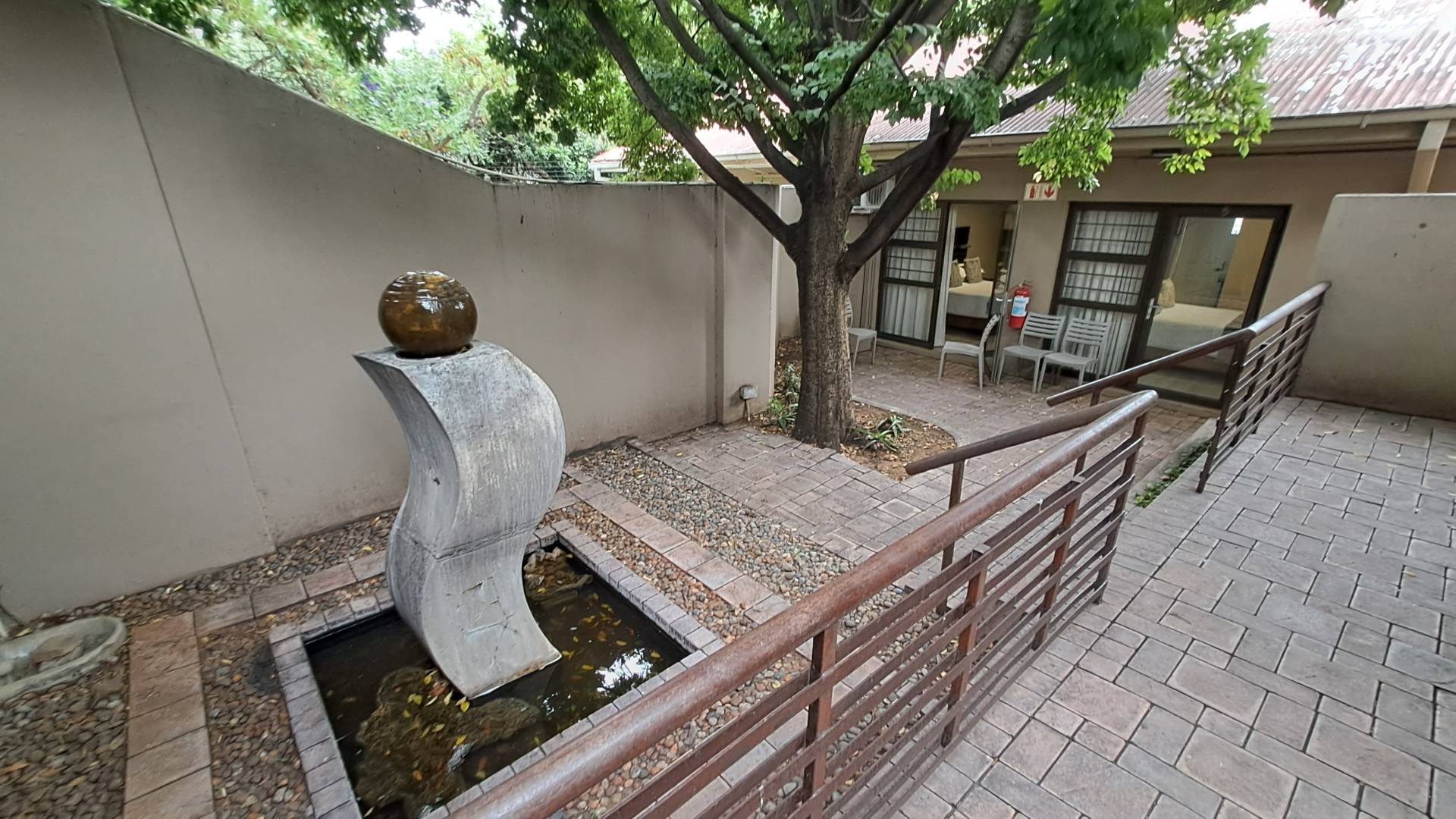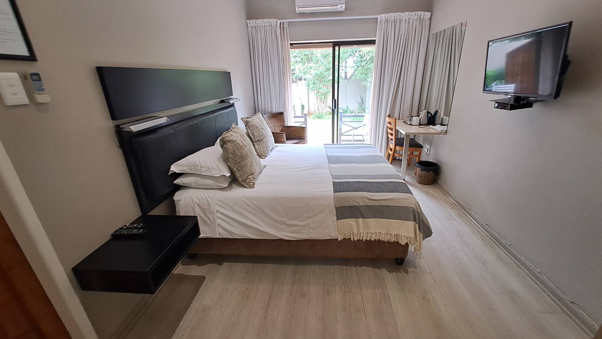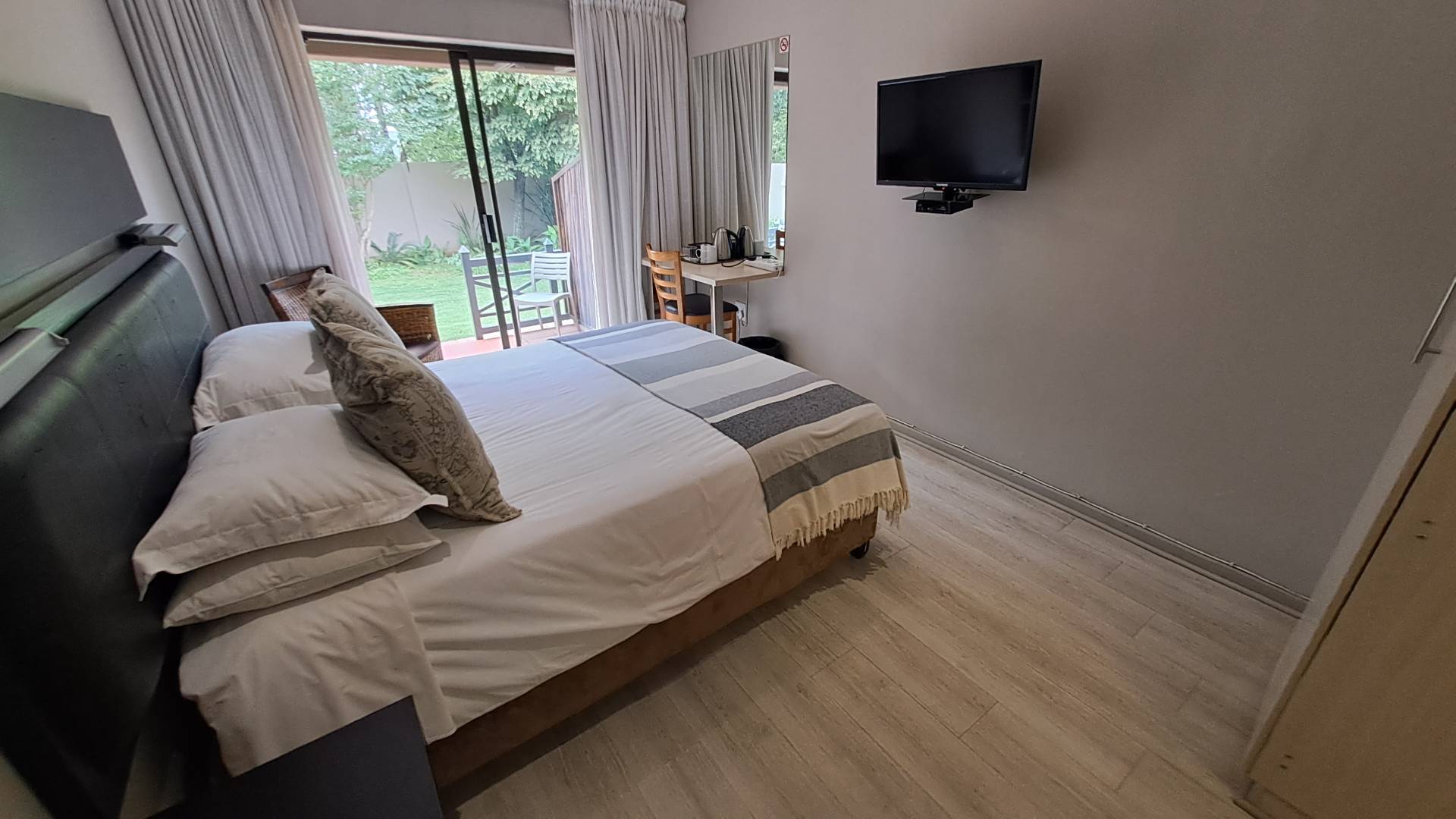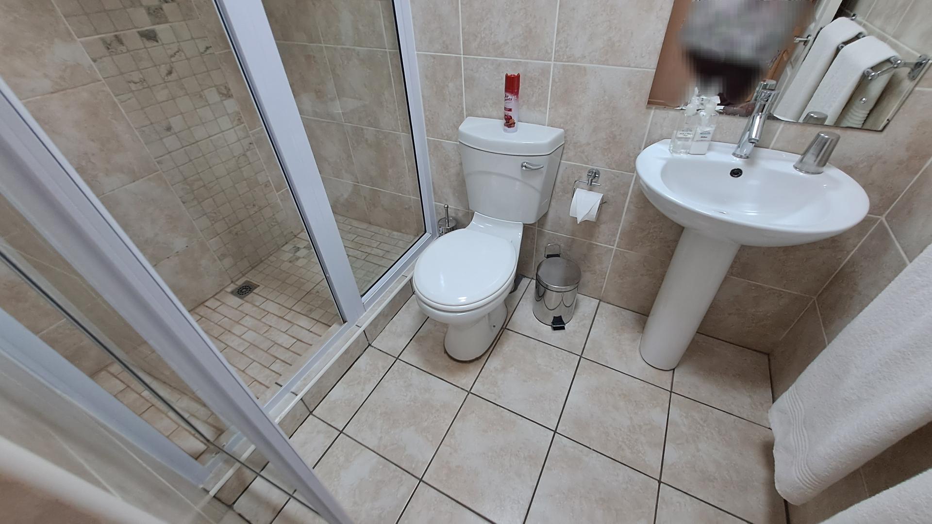 The 10 rooms come with built-in cupboards and en-suite bathrooms, and each room has a front door that opens up to a panoramic view of a lush green garden. There is also a reception counter, open plan dining room and kitchen, and a fully equipped laundry room. A solar system is included to run lights and plugs, while furniture is excluded but is negotiable. Prepaid electricity meter.