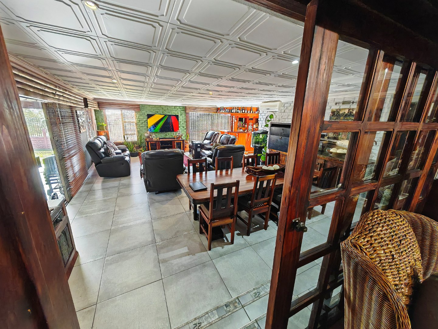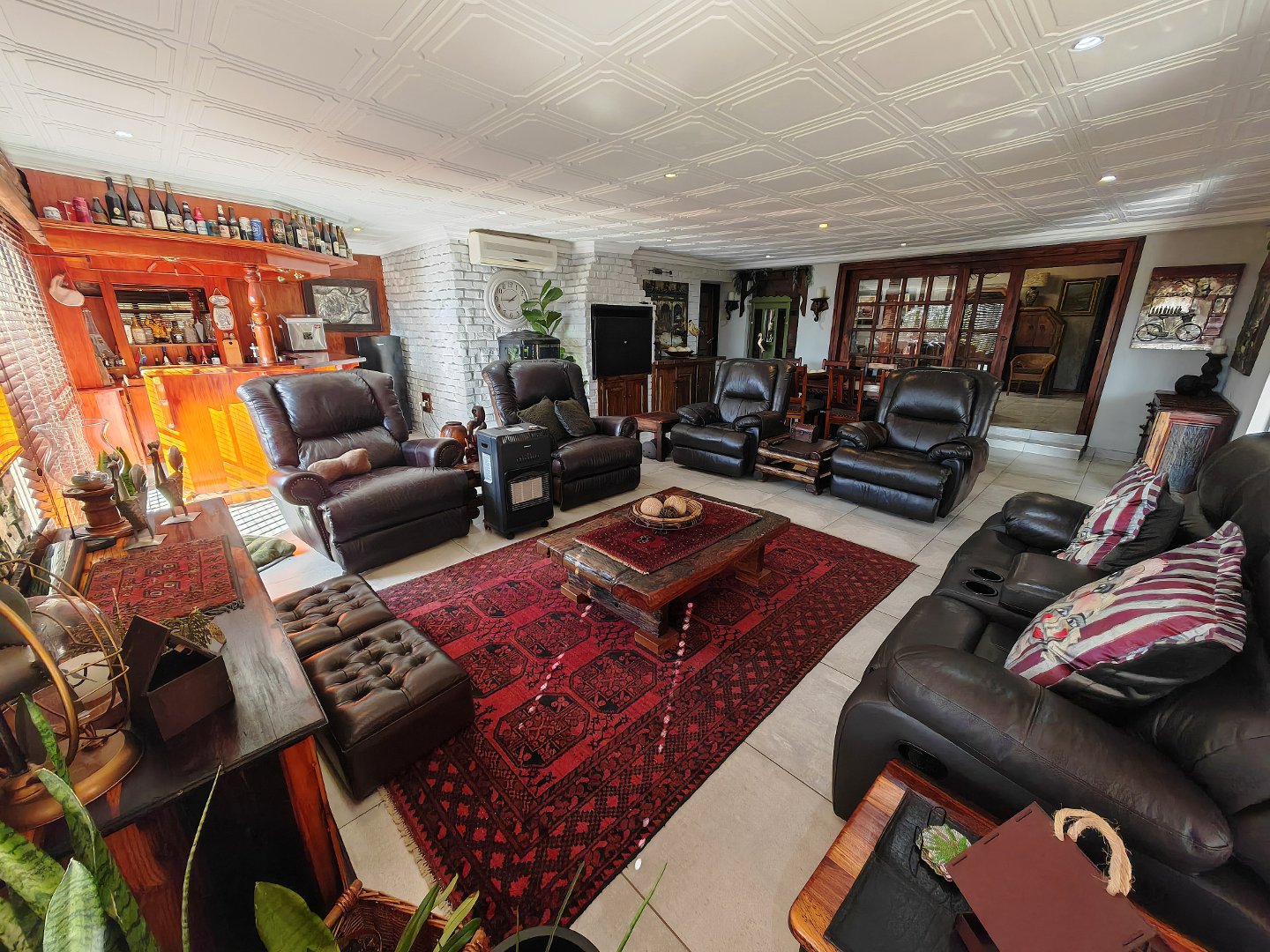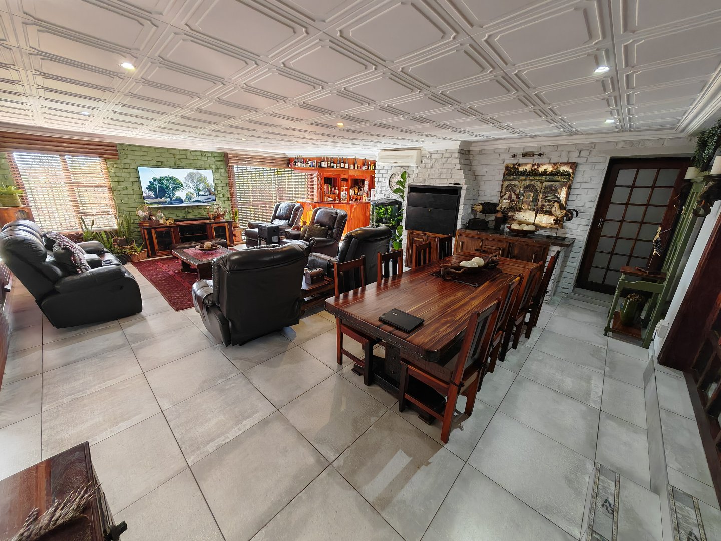 Spacious open-plan design with a huge TV room, elegant living room with underfloor heating, built-in braai and bar