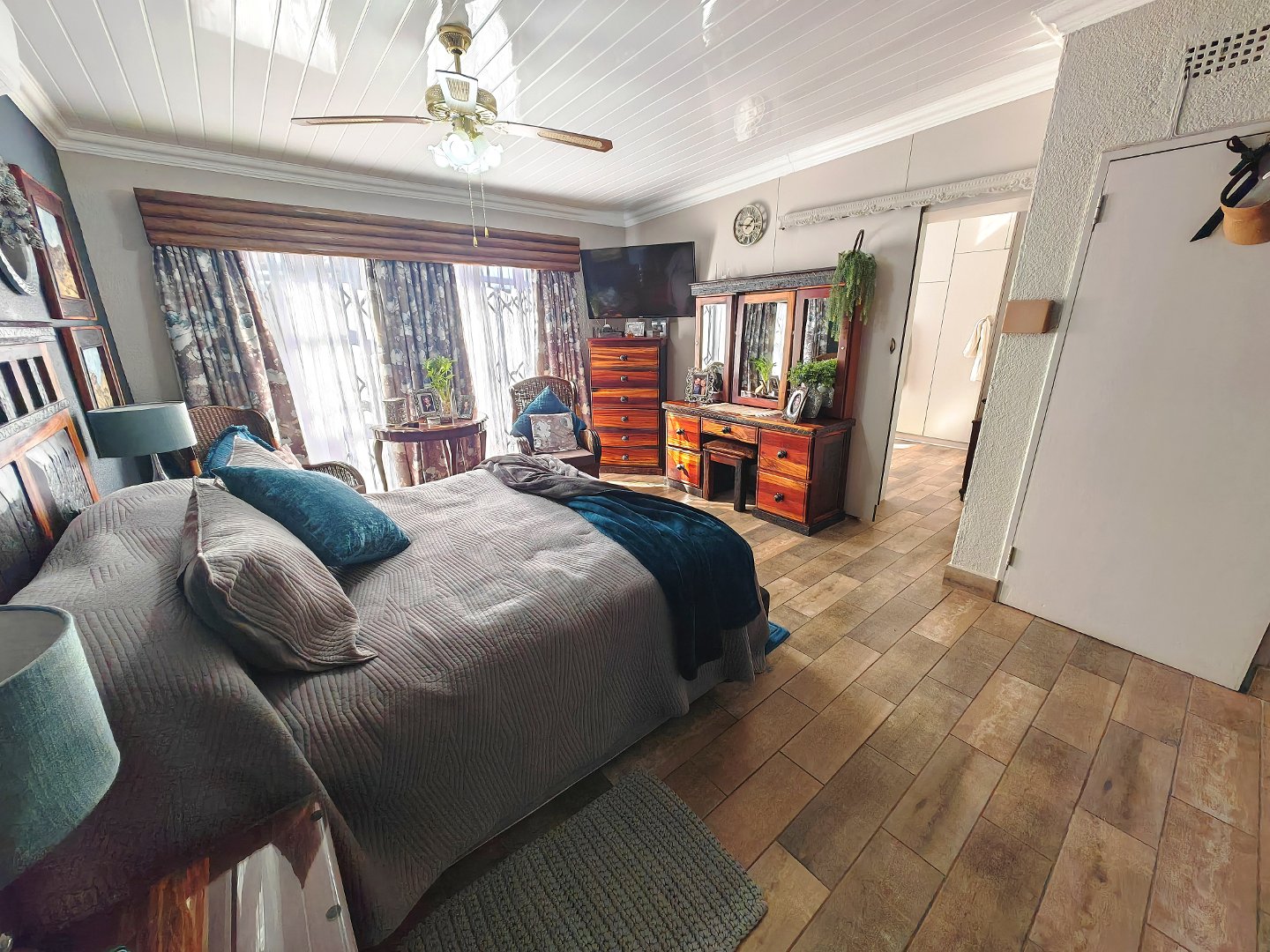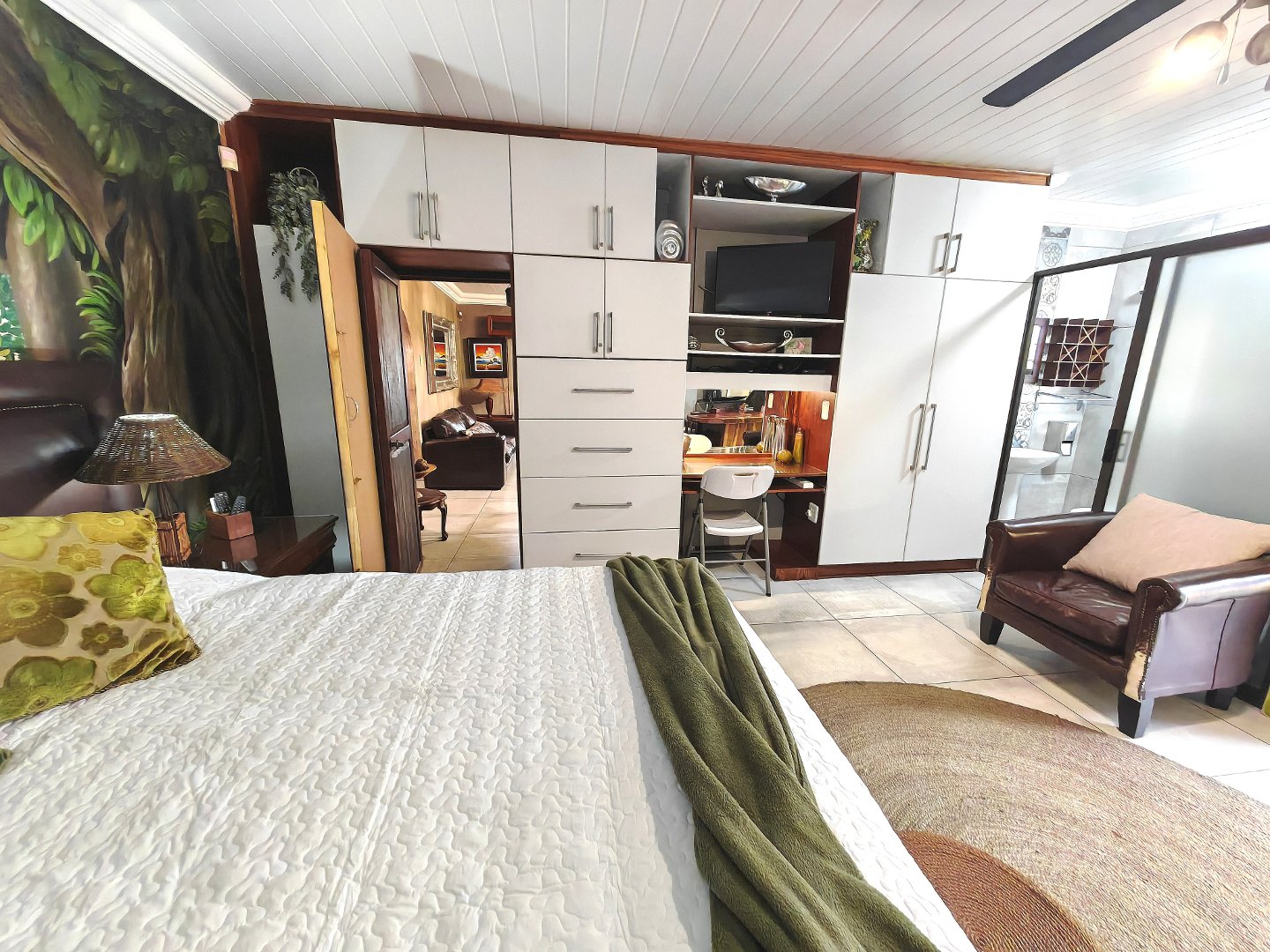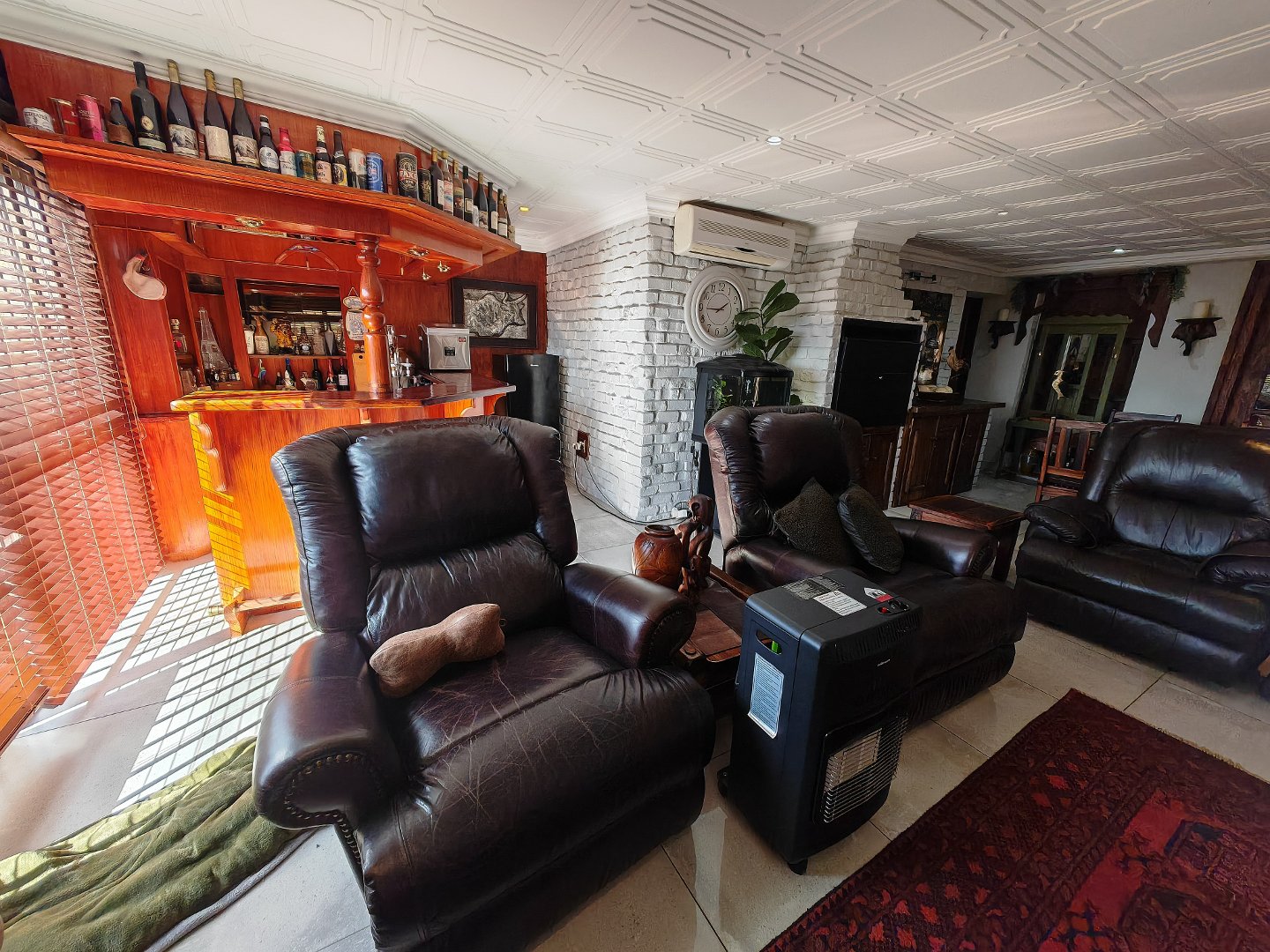 Spacious open-plan design with a huge TV room, elegant living room with underfloor heating, built-in braai and bar