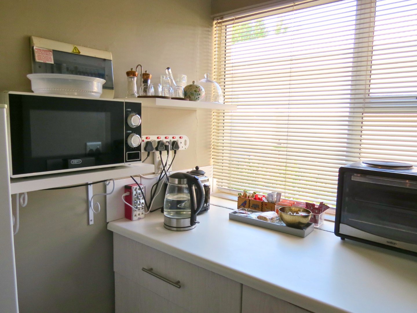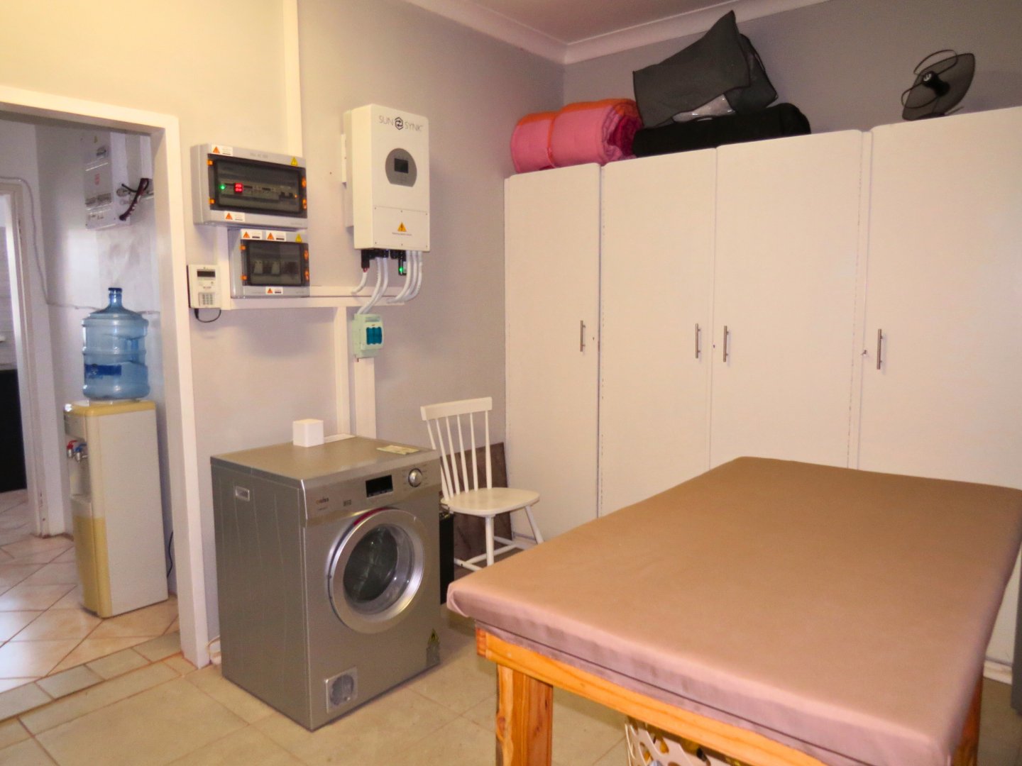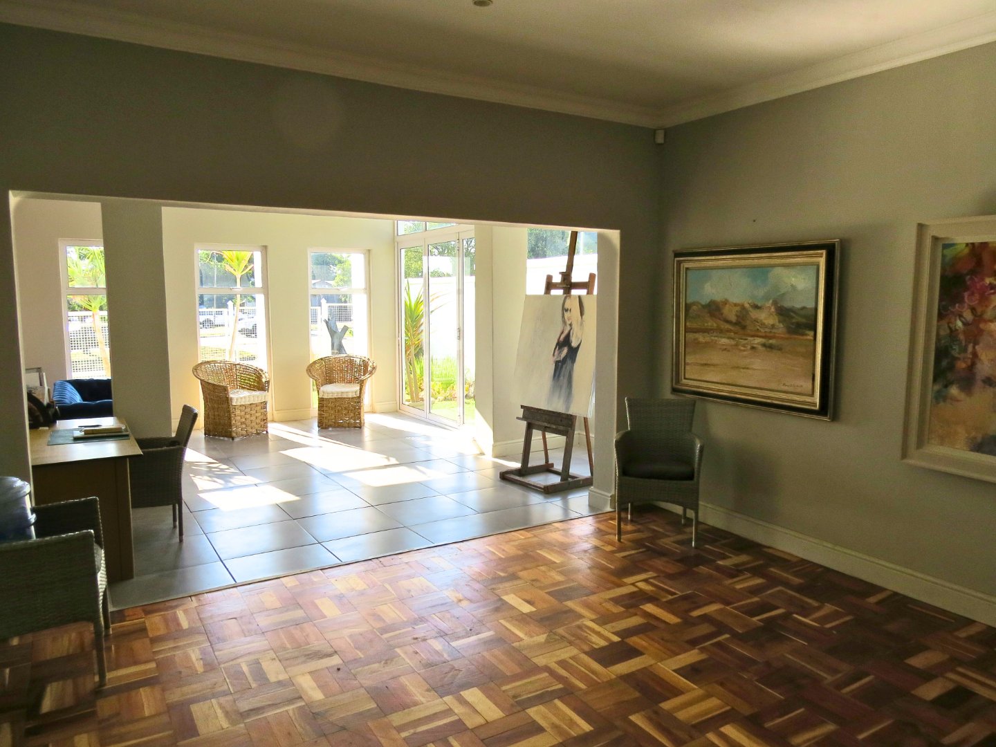 Apartment 2 can be accessed from the main house via the main passage or a private side entrance from its patio, and offers a flexible layout. It features a large bedroom with space for a lounge area, a kitchenette that is large enough to be converted into an additional bedroom or lounge, and a full modern bathroom. This apartment also includes air conditioning. The private patio and its own entrance make it suitable for guests or long-term letting.