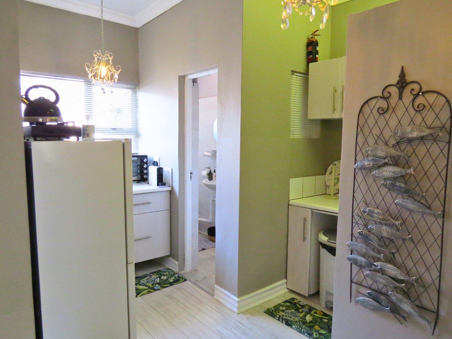 High ceilings, tiled flooring, sleek painted walls, and face-brick feature walls give the property a distinctive and artistic character, enhanced by elegant lighting throughout. The spacious modern kitchen and scullery with large open spaces create investment opportunities for a boutique coffee shop, bed and breakfast expansion, or professional offices. The impressive street-facing entrance and street parking make the property particularly well-suited for business or professional use.