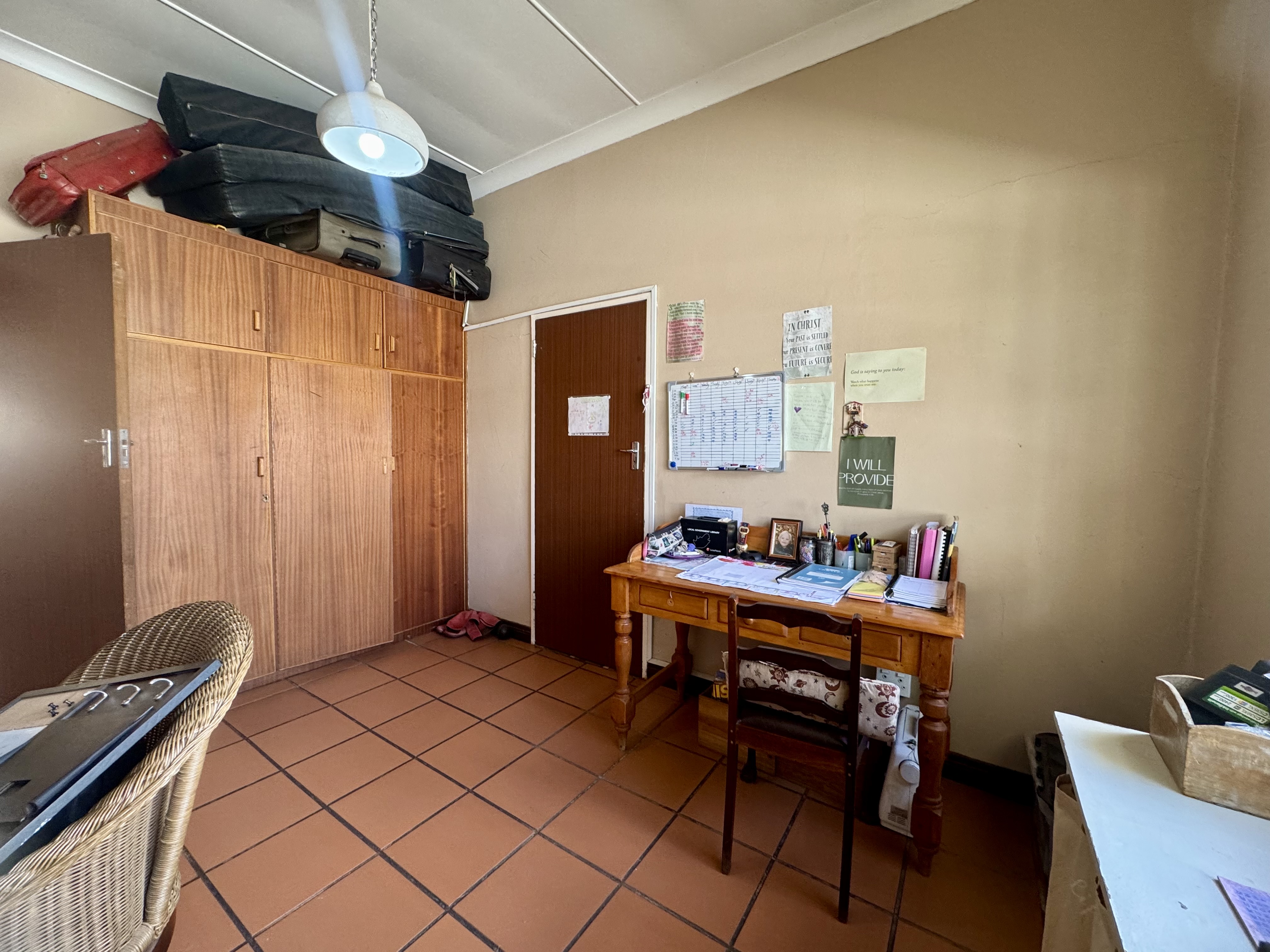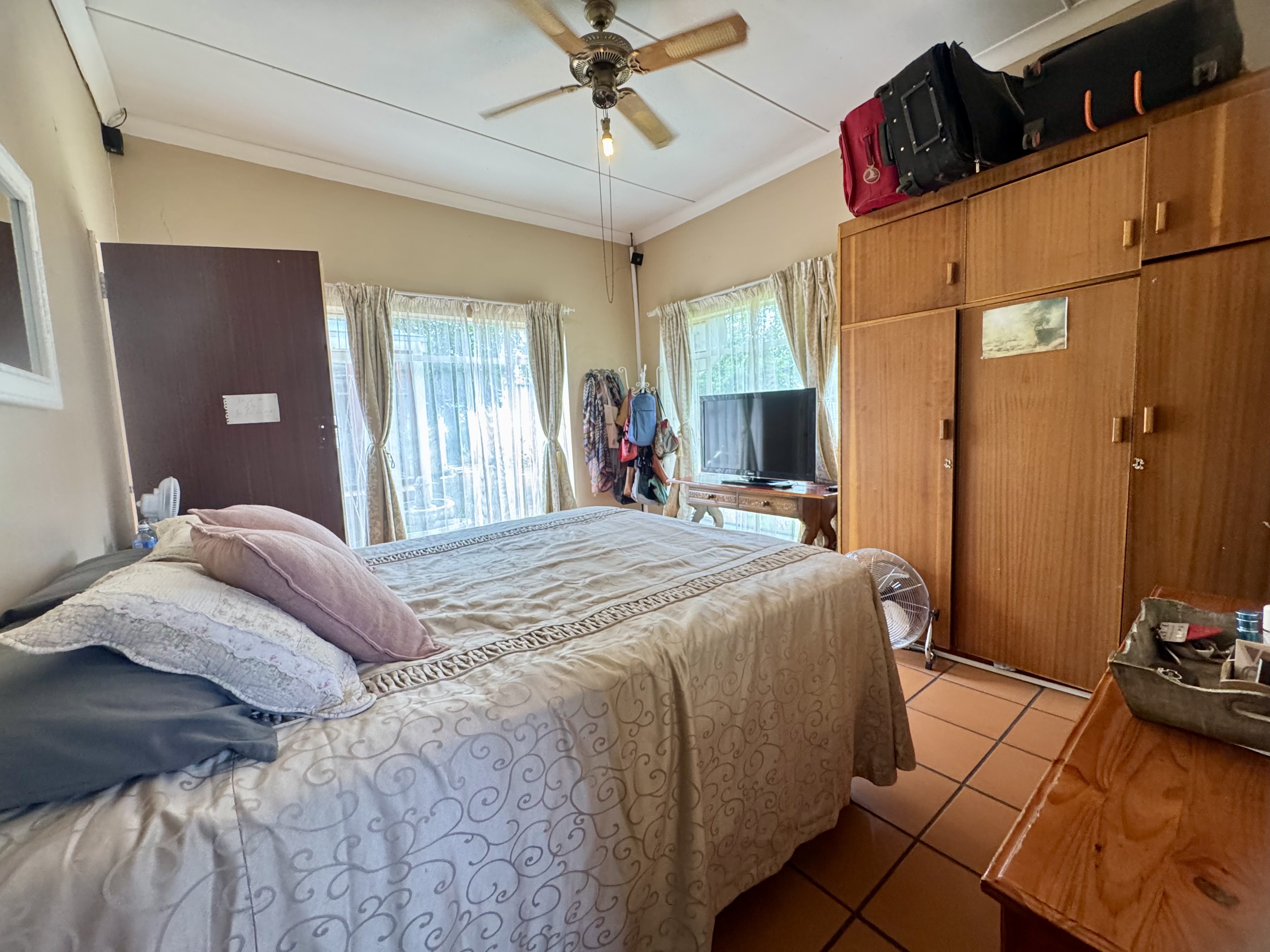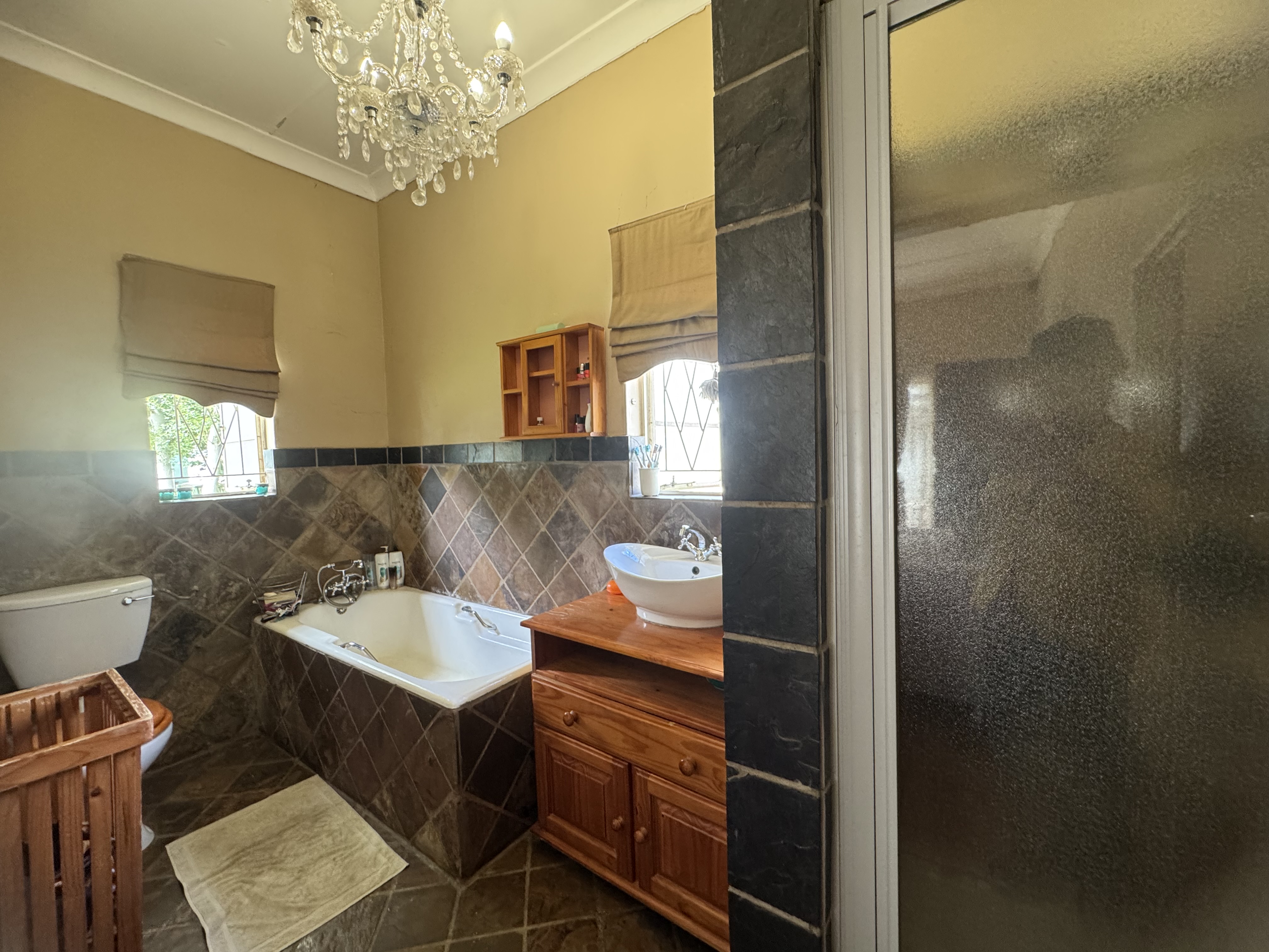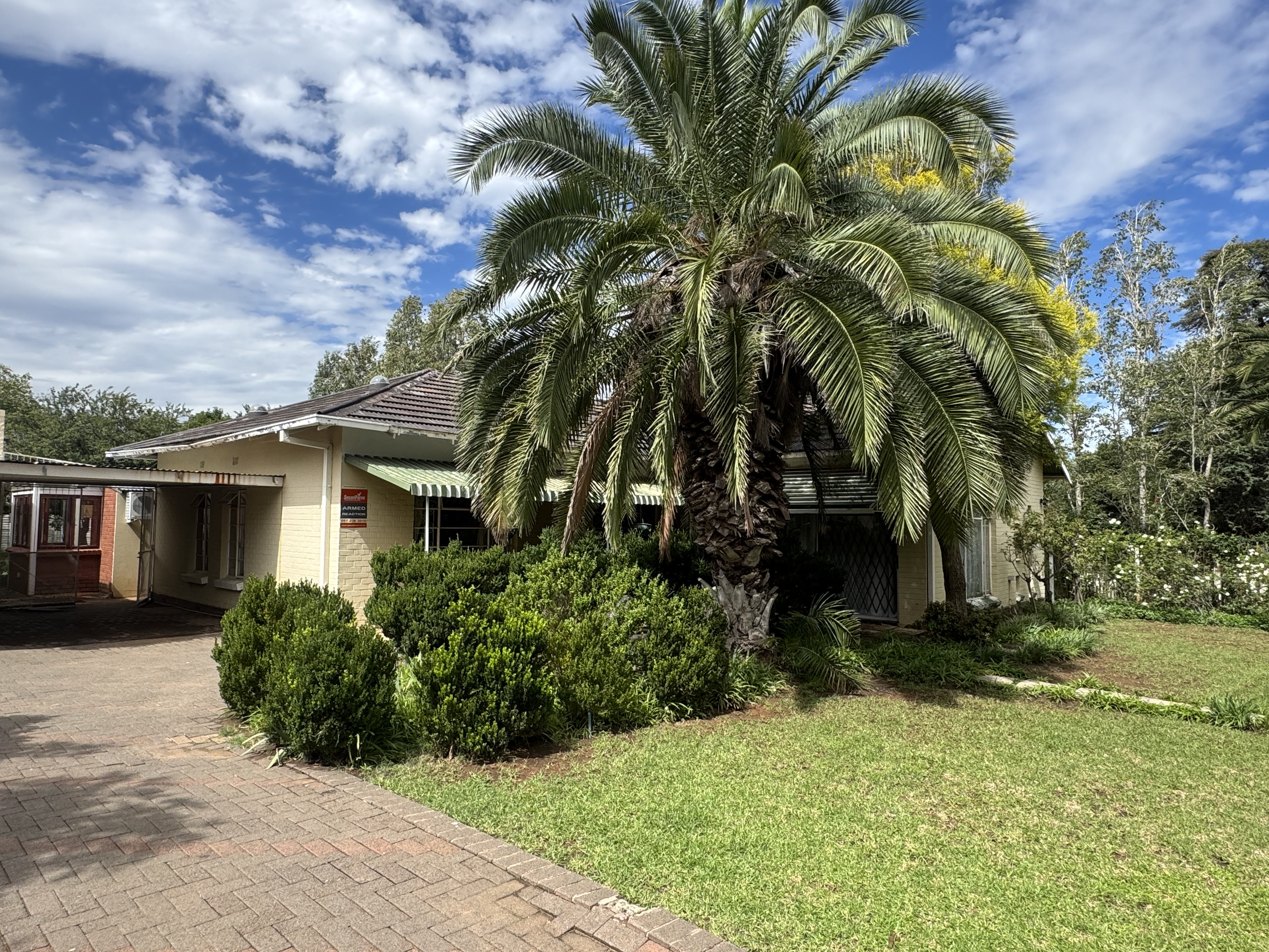 This delightful home offers a rare combination of spacious living, outdoor comfort, and practical features—making it ideal for families and entertainers alike. Set on a generously sized stand, the property boasts a beautifully maintained garden, enhanced by an irrigation system in both the front and back yards to keep it lush year-round. A sparkling swimming pool creates the perfect setting for summer relaxation and outdoor gatherings. Ample parking is available with a single garage, a double carport, and additional secure space for two more vehicles. Inside, the home welcomes you with an airy, open-plan layout that includes two spacious lounges, a dining area, and a skylit hallway that bathes the interior in natural light. The well-equipped kitchen features a built-in stove, double oven, and a separate scullery, offering both style and practicality. Underfloor heating in the second hallway adds cozy warmth during the winter months, while a solar tube geyser ensures energy-efficient water heating for the en-suite bathroom. Each of the three bedrooms is fitted with built-in cupboards and skylights, making them bright and inviting. The main bedroom includes a ceiling fan, its own luxurious en-suite bathroom with a chandelier, bath, and shower, as well as a versatile adjoining space perfect for a pajama lounge or home office. The home’s guest bathroom includes a bath and basin, with a separate toilet for added convenience. The highlight of the property is the exceptional entertainment area—complete with a built-in braai, two air conditioners, and elegant glass roof panels. Stacking wooden doors open onto the pool and garden, creating a seamless flow between indoor and outdoor living. Additional features include a garden shed for storage and a separate office space behind the garage. The home is fitted with pre-paid electricity and water, making budgeting simple and efficient. Don’t miss the chance to own this versatile and inviting home. Contact Annette Kasselman today to arrange your private viewing.