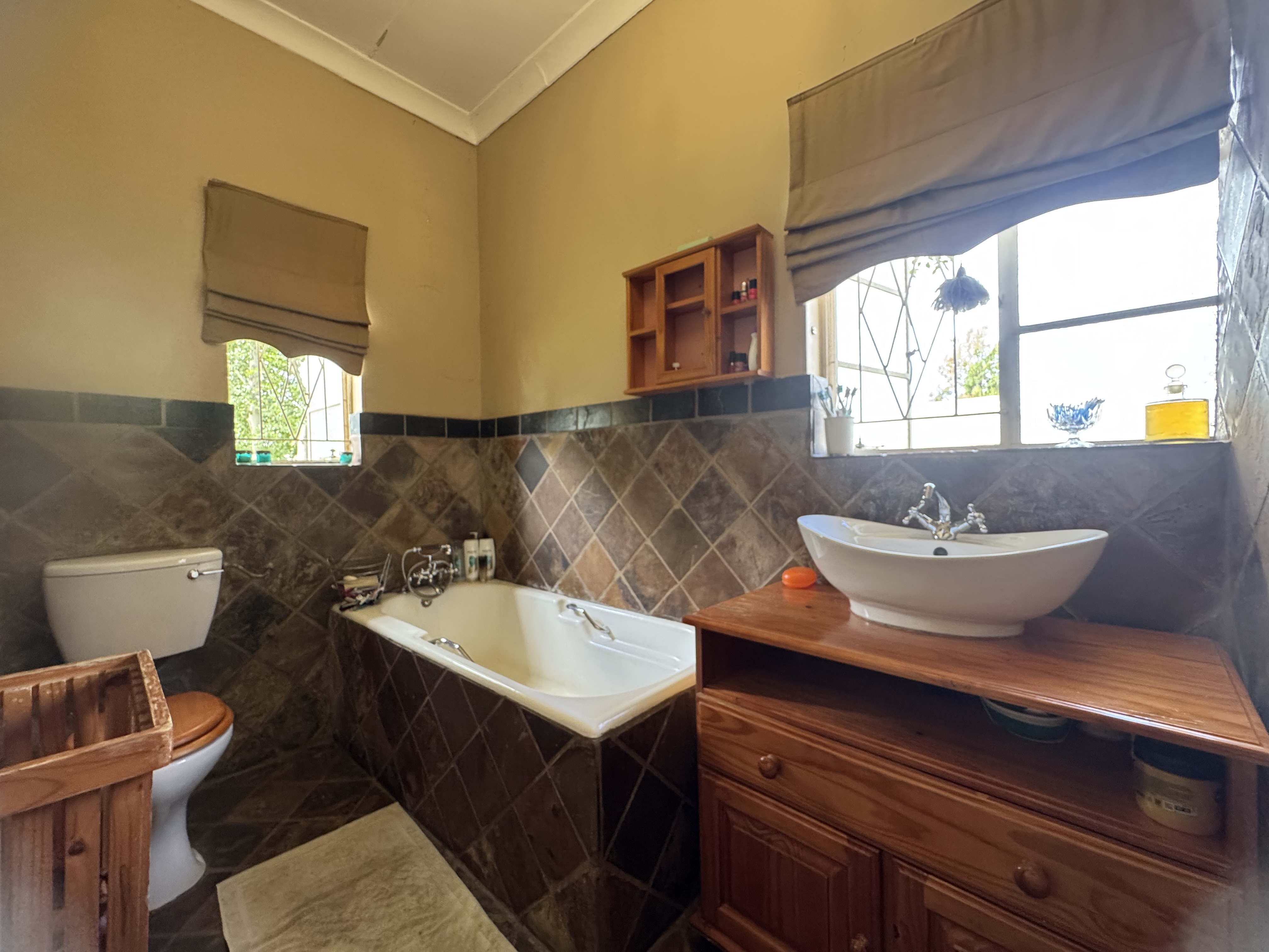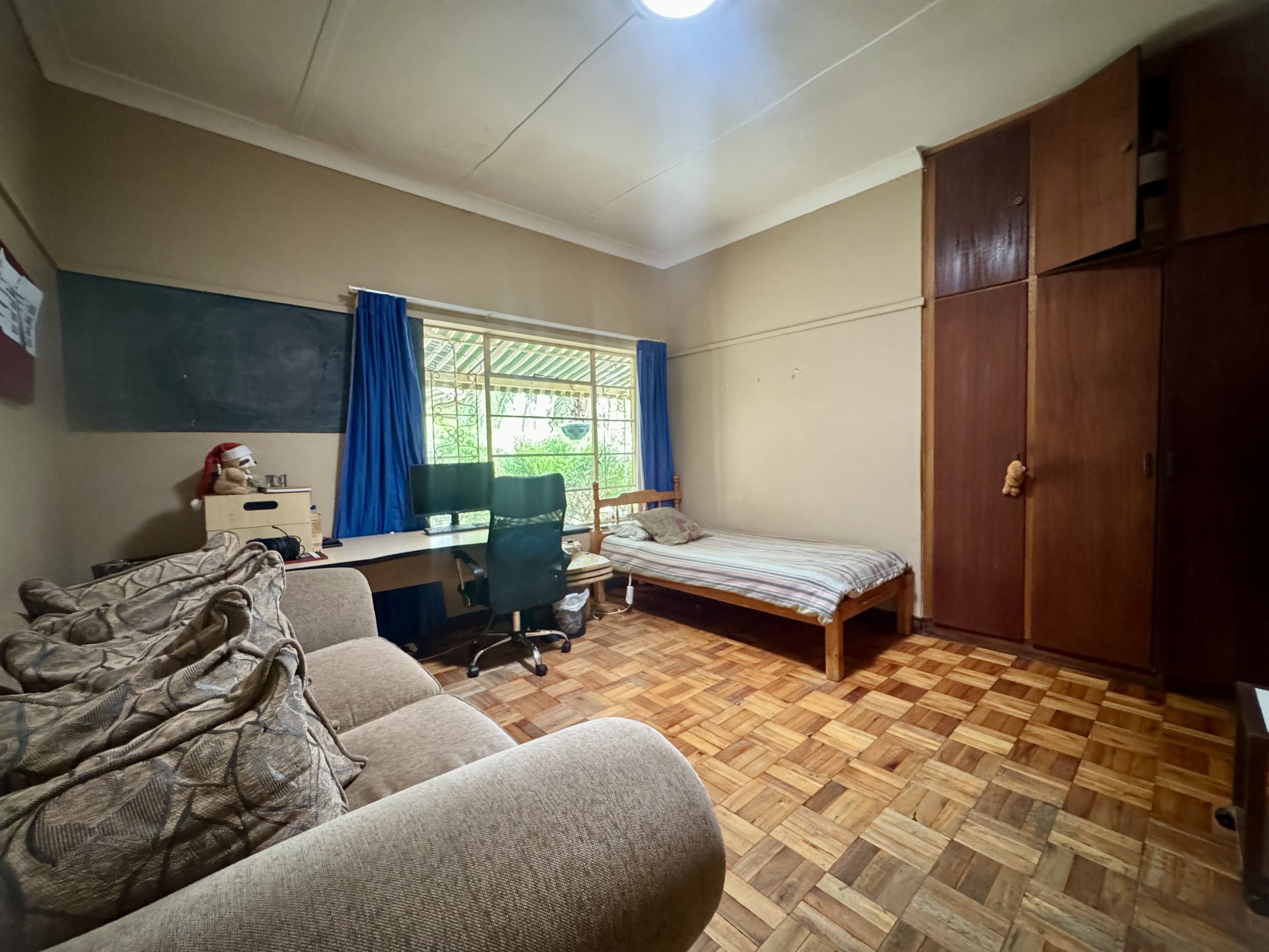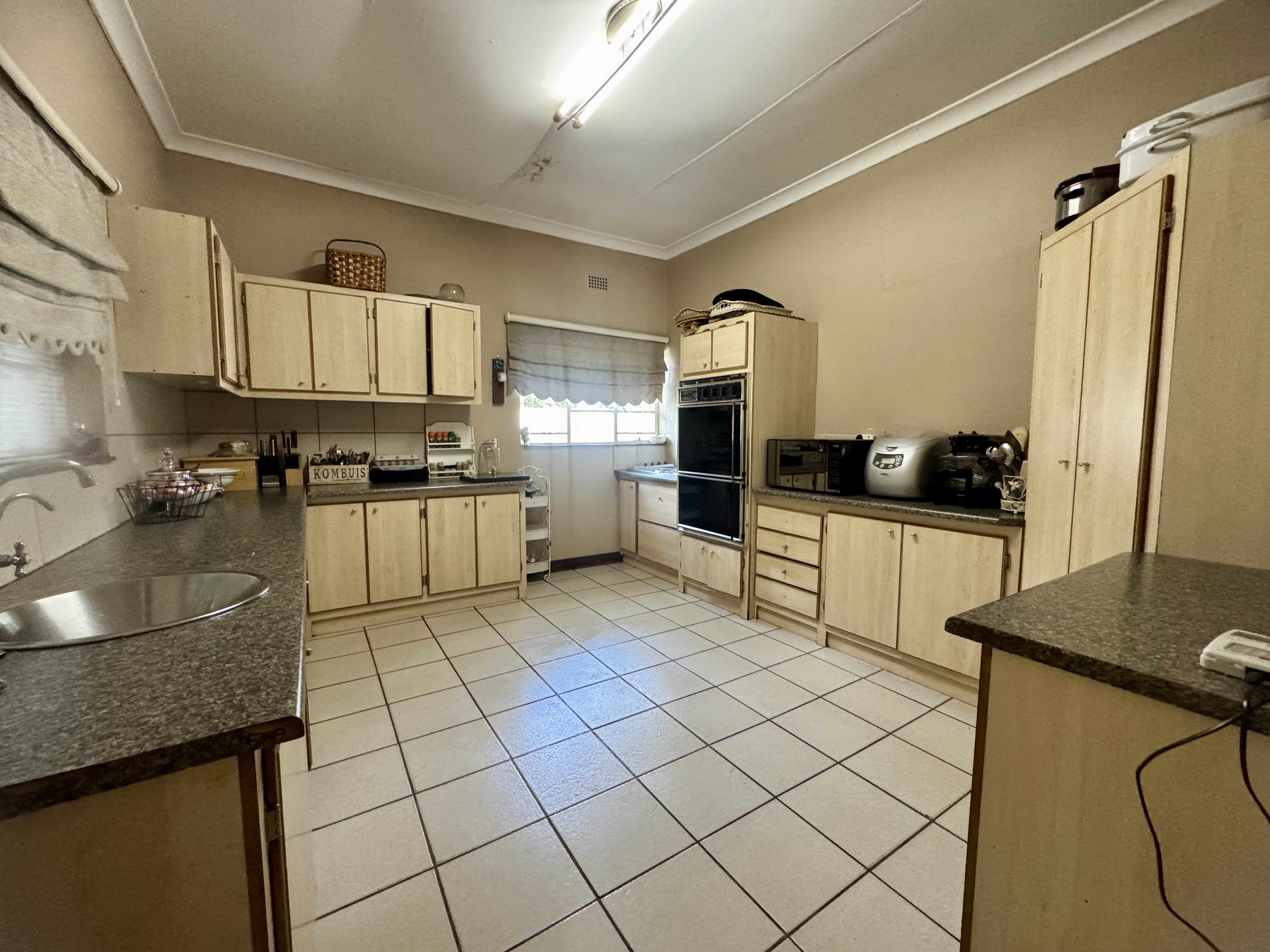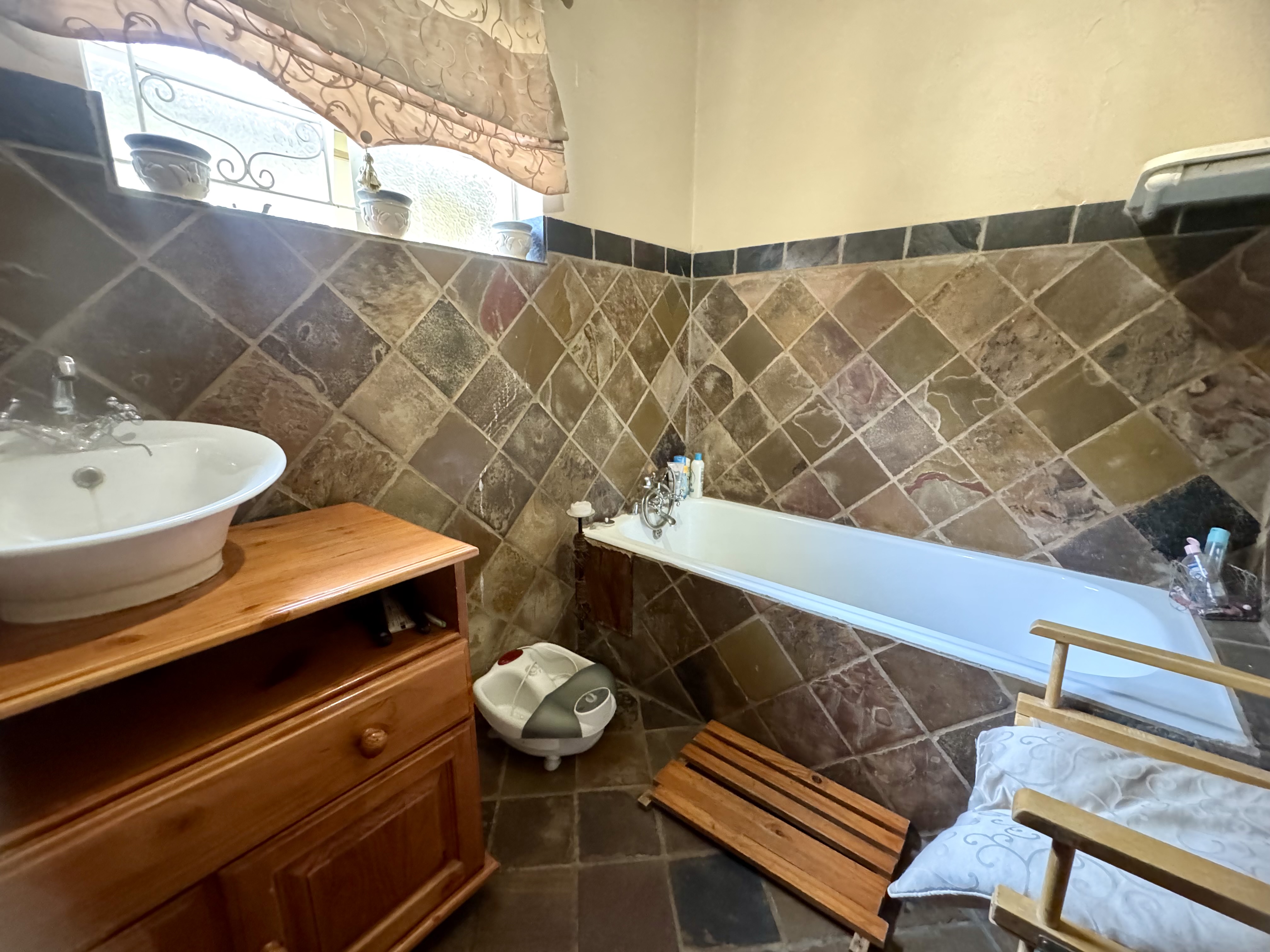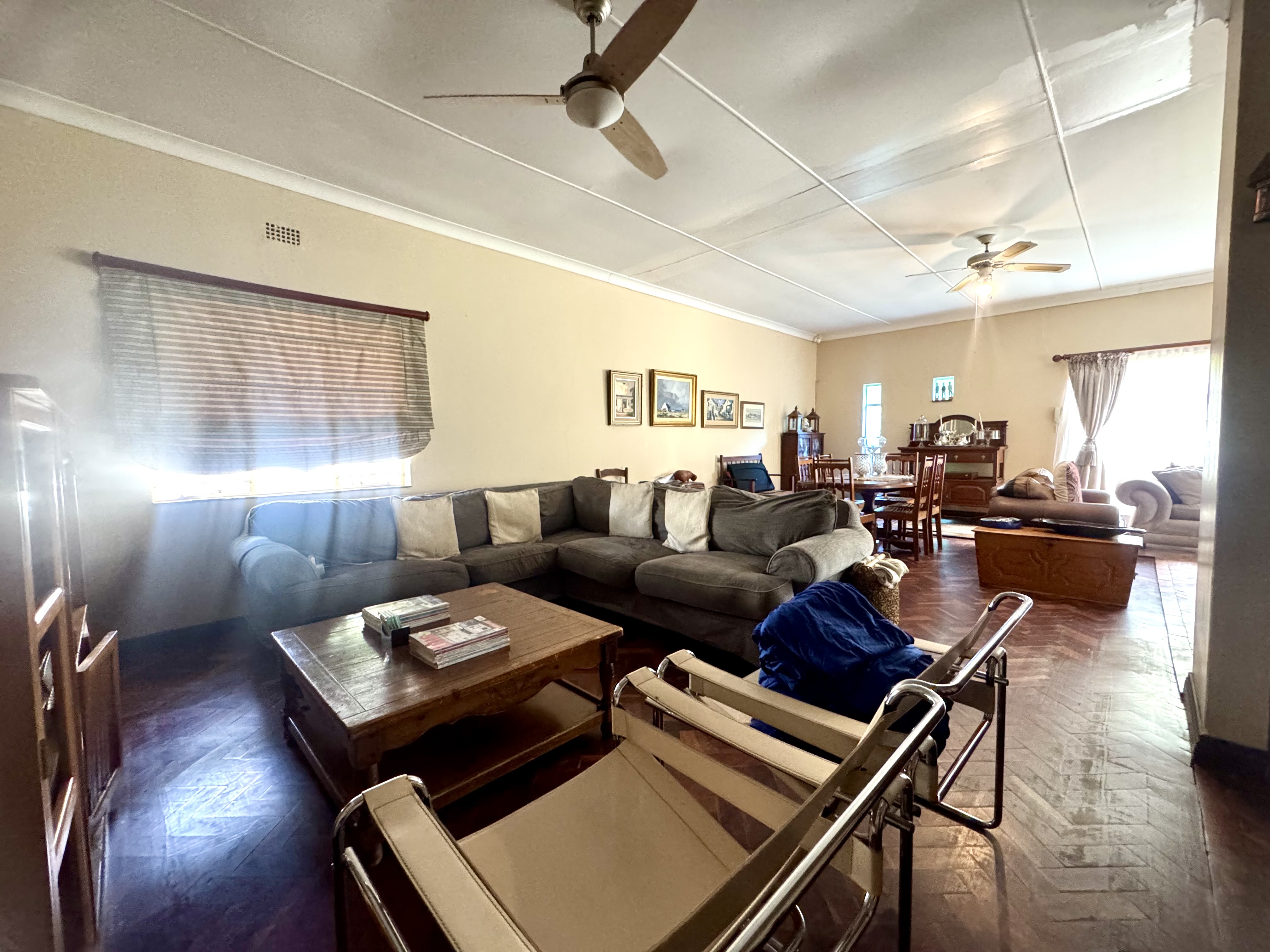 This delightful home offers a rare combination of spacious living, outdoor comfort, and practical features—making it ideal for families and entertainers alike. Set on a generously sized stand, the property boasts a beautifully maintained garden, enhanced by an irrigation system in both the front and back yards to keep it lush year-round. A sparkling swimming pool creates the perfect setting for summer relaxation and outdoor gatherings. Ample parking is available with a single garage, a double carport, and additional secure space for two more vehicles. Inside, the home welcomes you with an airy, open-plan layout that includes two spacious lounges, a dining area, and a skylit hallway that bathes the interior in natural light. The well-equipped kitchen features a built-in stove, double oven, and a separate scullery, offering both style and practicality. Underfloor heating in the second hallway adds cozy warmth during the winter months, while a solar tube geyser ensures energy-efficient water heating for the en-suite bathroom. Each of the three bedrooms is fitted with built-in cupboards and skylights, making them bright and inviting. The main bedroom includes a ceiling fan, its own luxurious en-suite bathroom with a chandelier, bath, and shower, as well as a versatile adjoining space perfect for a pajama lounge or home office. The home’s guest bathroom includes a bath and basin, with a separate toilet for added convenience. The highlight of the property is the exceptional entertainment area—complete with a built-in braai, two air conditioners, and elegant glass roof panels. Stacking wooden doors open onto the pool and garden, creating a seamless flow between indoor and outdoor living. Additional features include a garden shed for storage and a separate office space behind the garage. The home is fitted with pre-paid electricity and water, making budgeting simple and efficient. Don’t miss the chance to own this versatile and inviting home. Contact Annette Kasselman today to arrange your private viewing.
