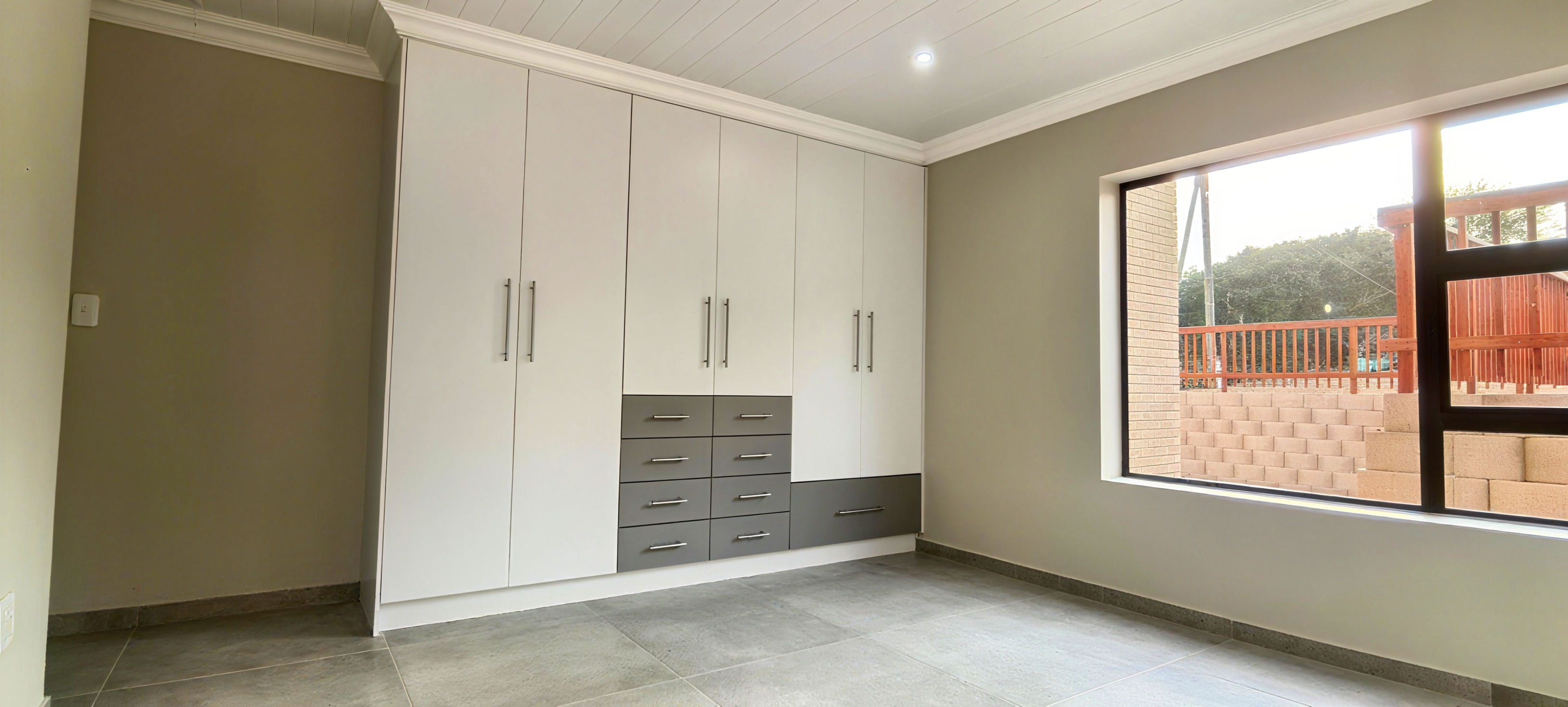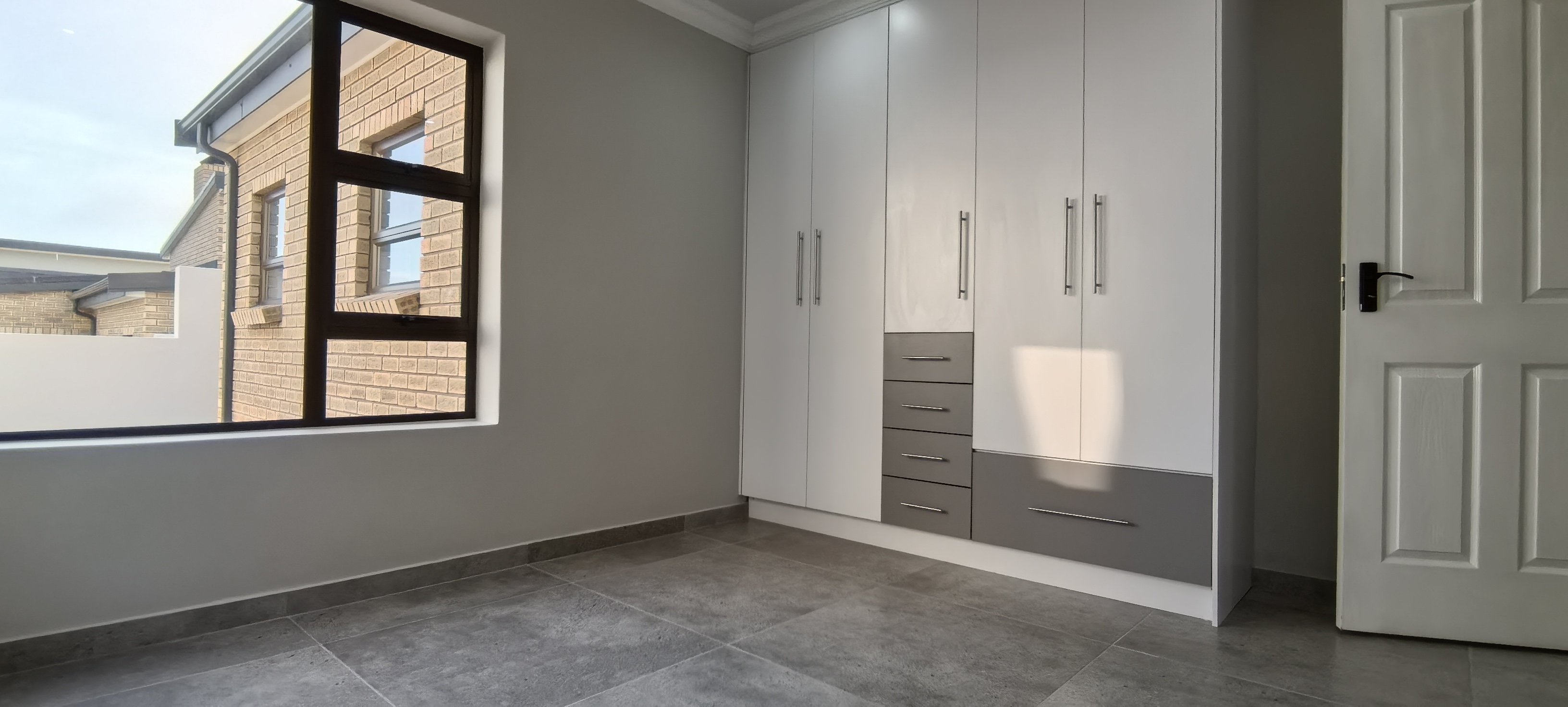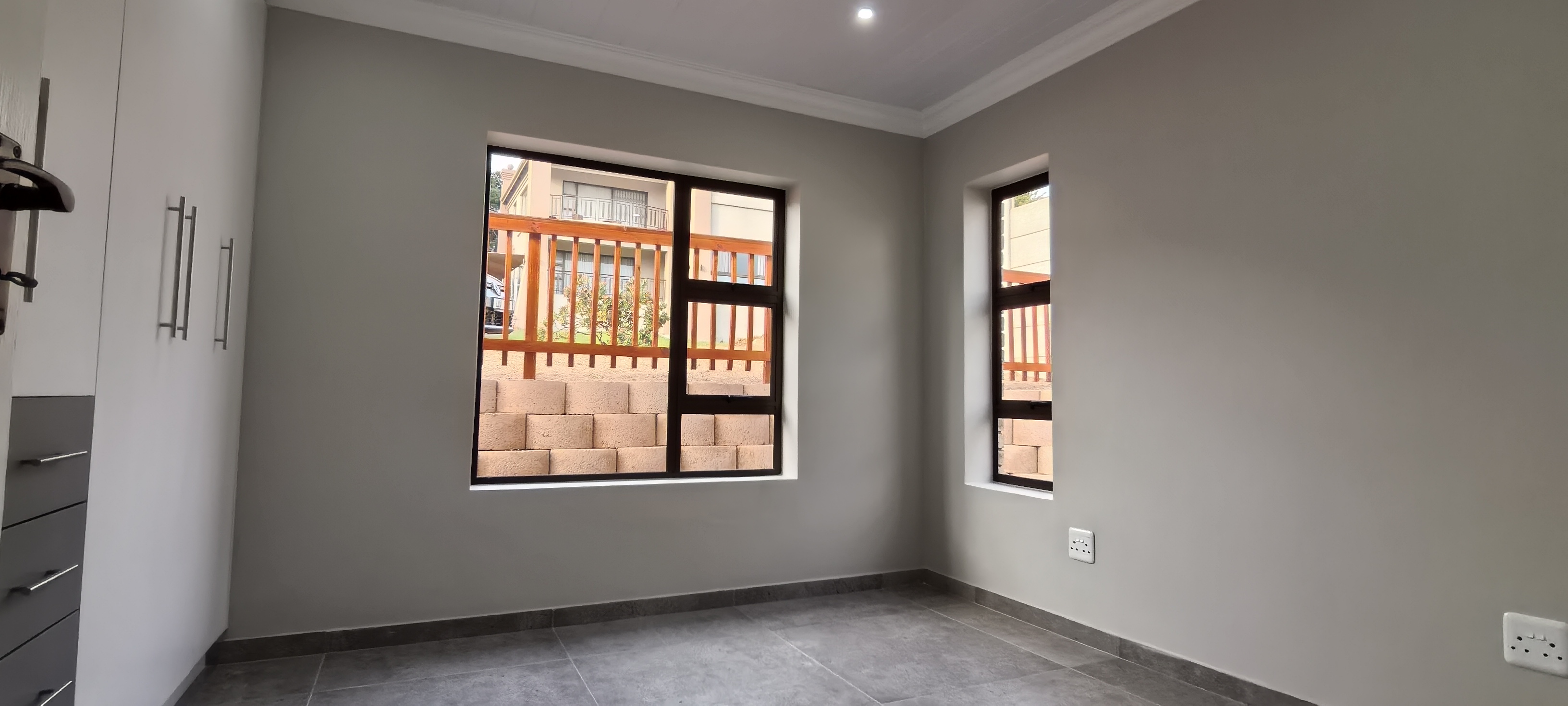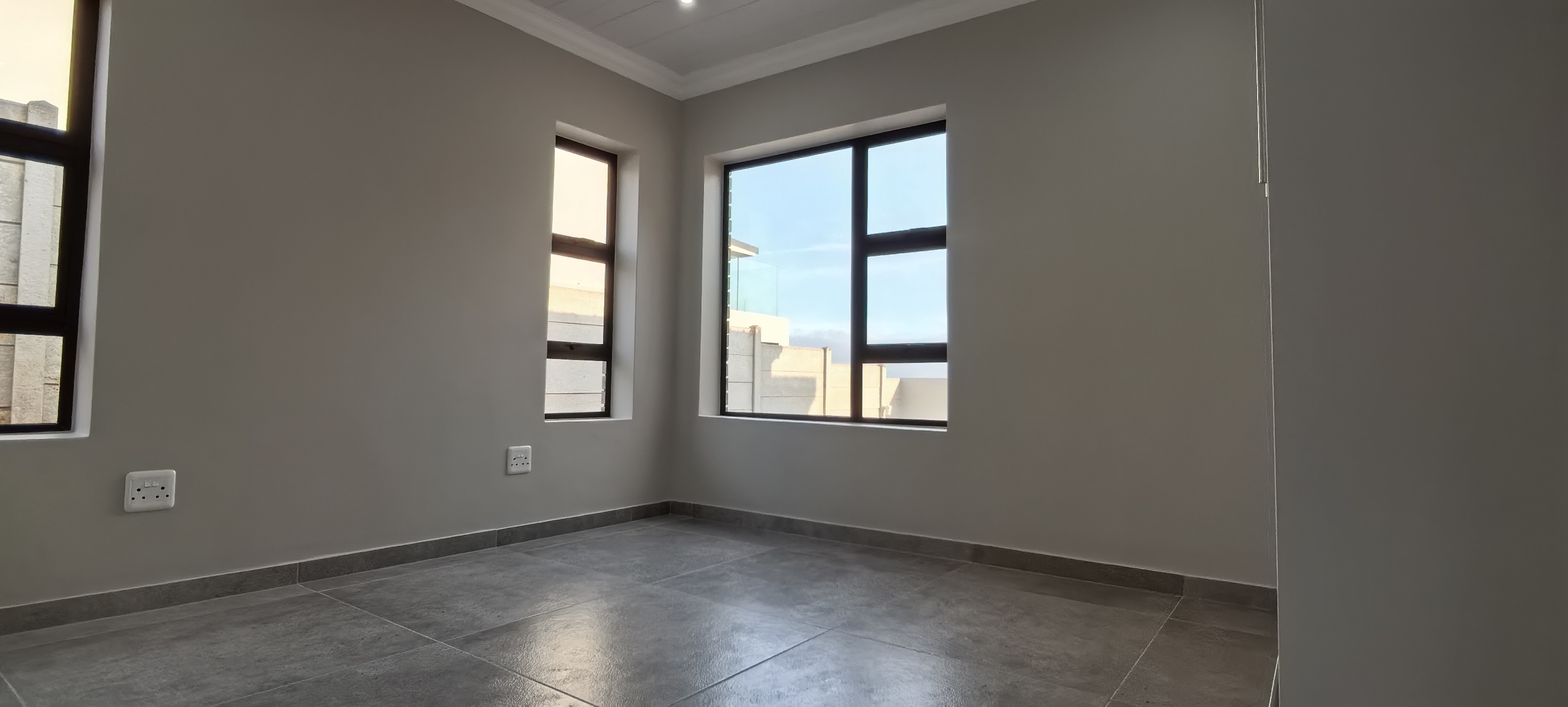 The main bedroom is a private retreat, complete with an en-suite bathroom for added convenience. Two additional bedrooms share a second contemporary bathroom, making the home well-suited for families, guests, or a home office setup.