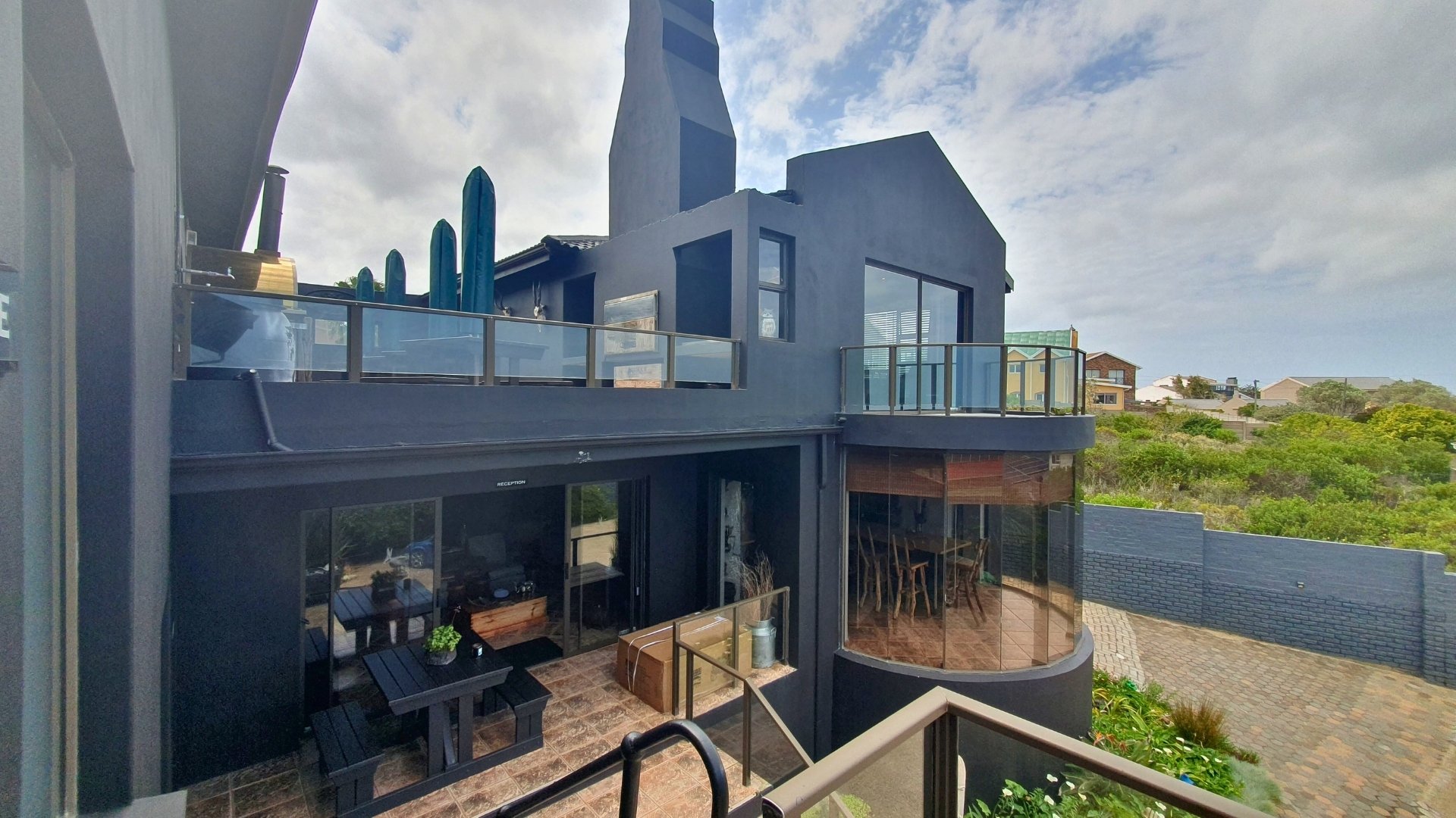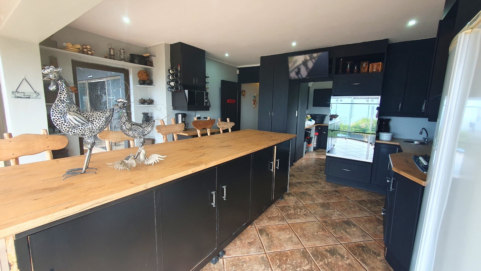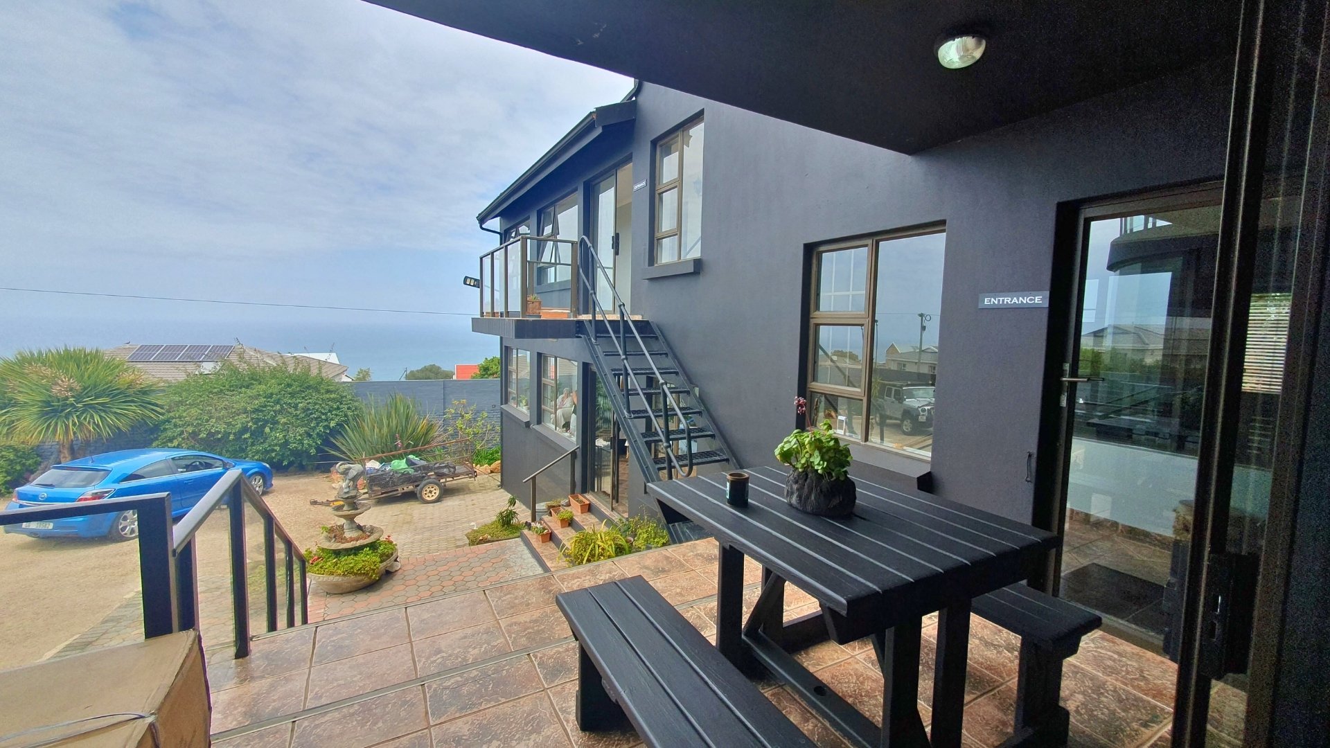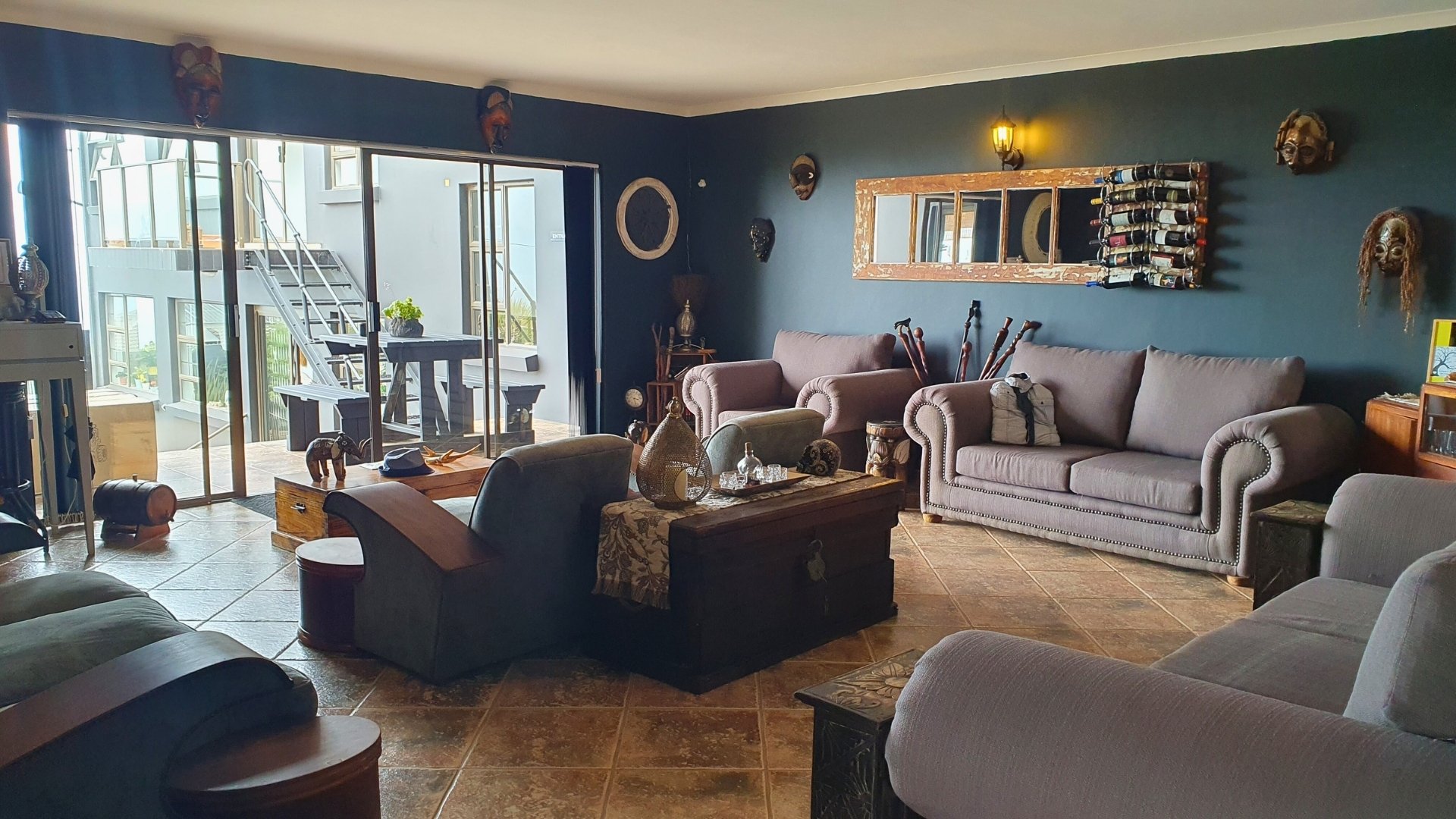 Upper Level: Features a modern kitchen and dining area, flowing out to a balcony with a built-in braai and spectacular ocean views. It also boasts four en-suite bedrooms and a romantic honeymoon suite with its own Romeo and Juliet balcony.