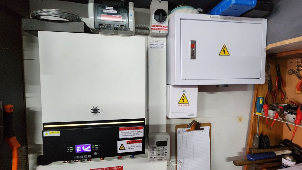 Solar system with 8.5 Kw inverter, two 5 Kw lithium batteries and 8 solar panels.
